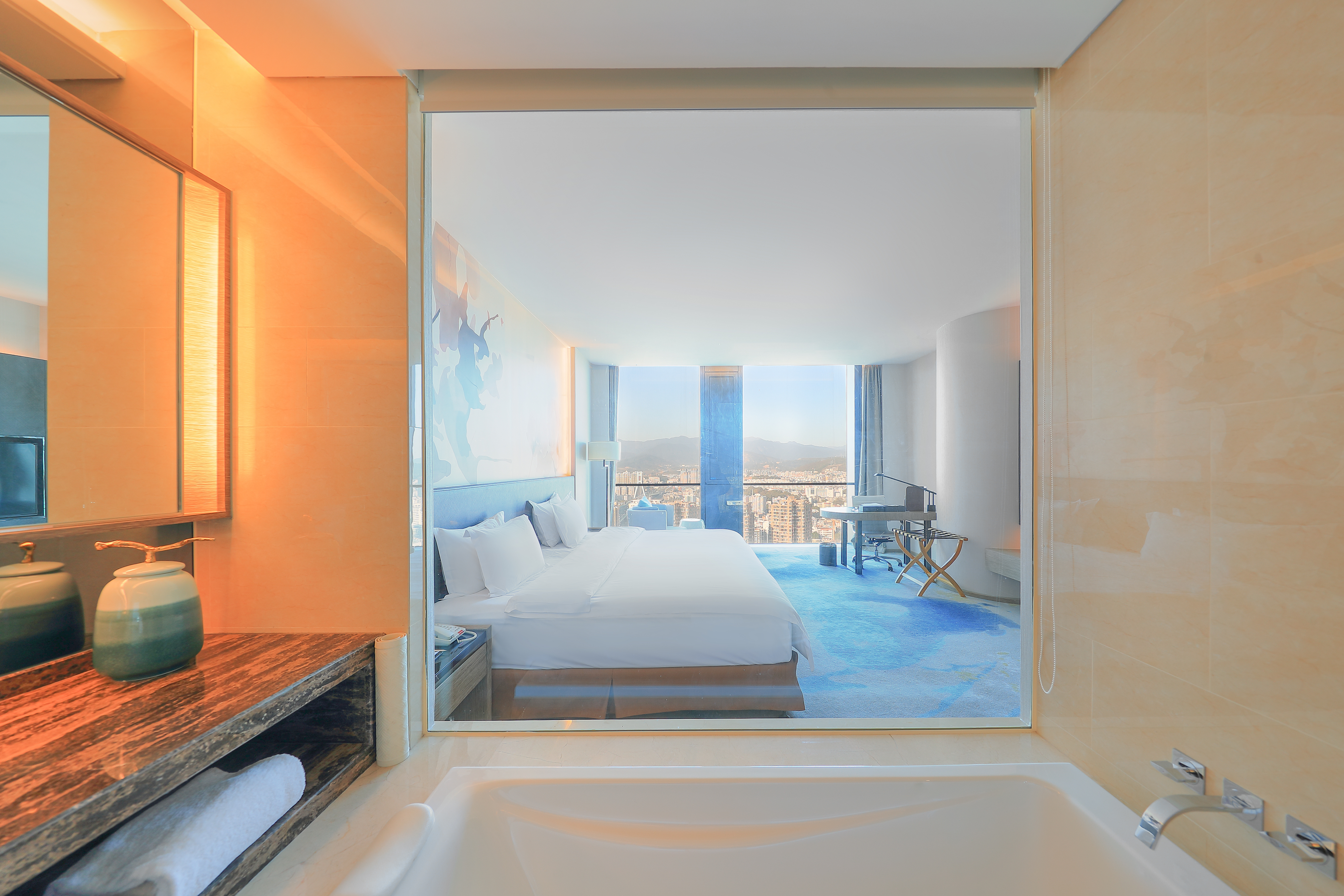 云端精选大床房(眺远山云雾如画,揽岩城灯火阑珊)
