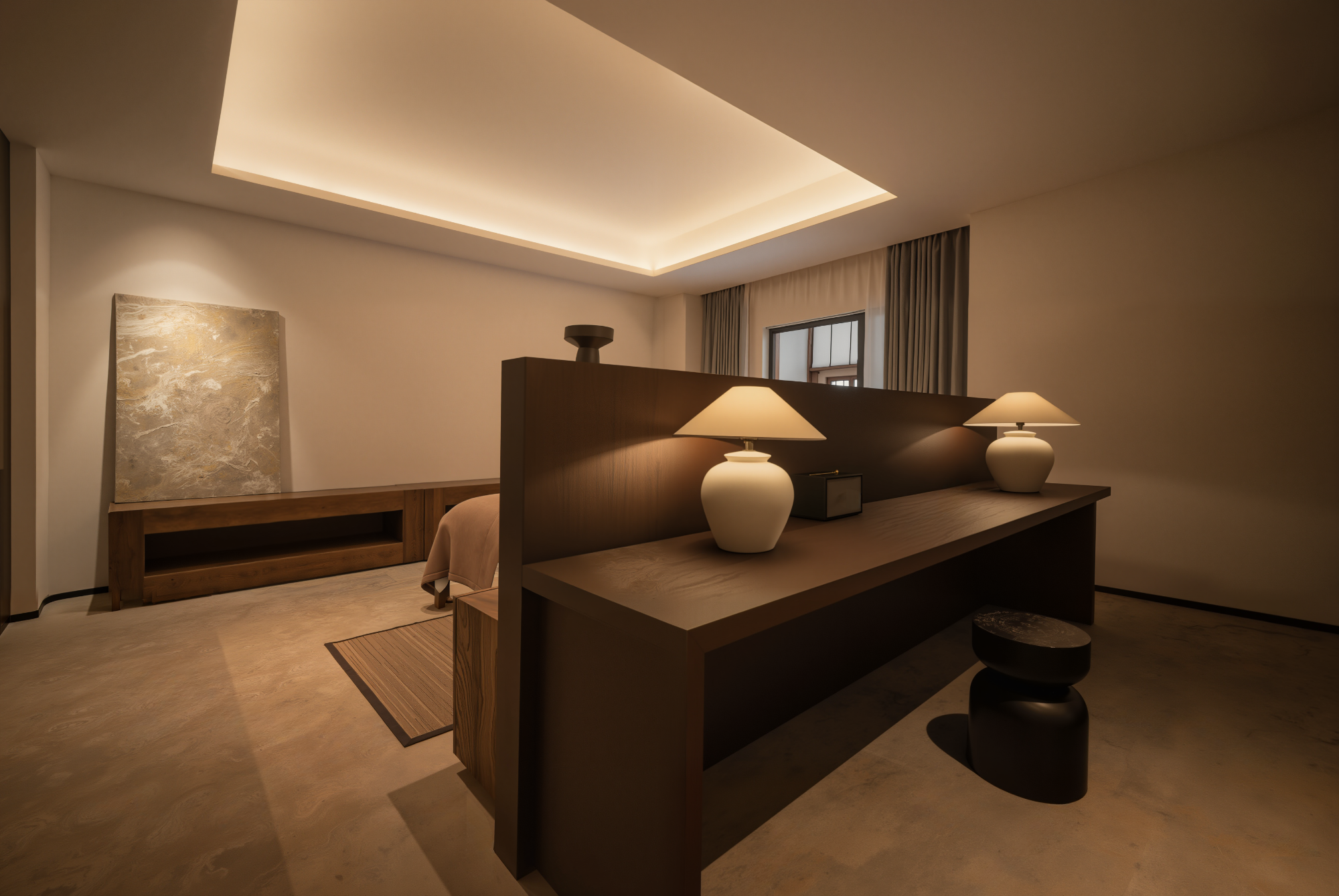 「醒春山·榻榻米私汤双床房」180°森泉花园|4K投影|音响