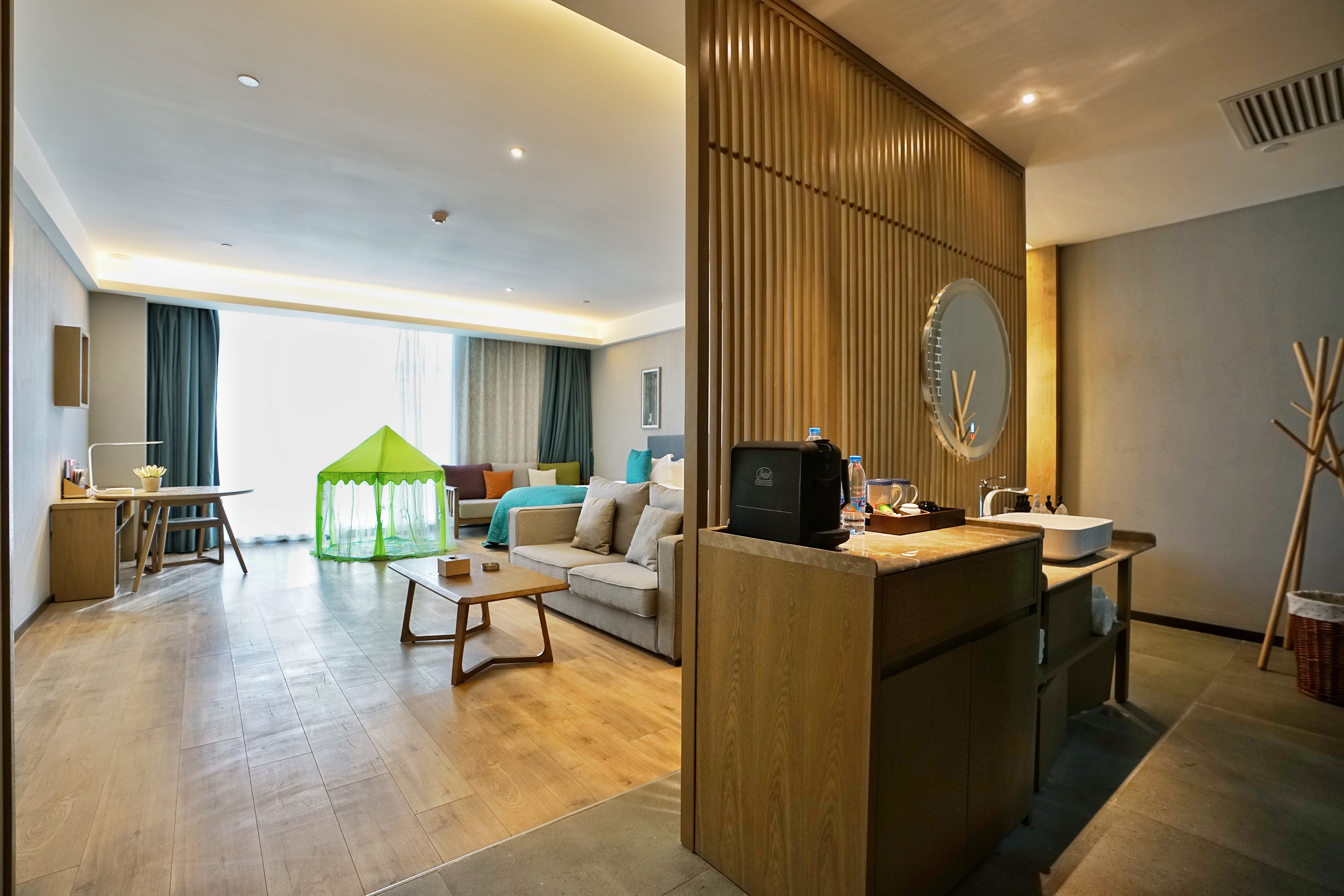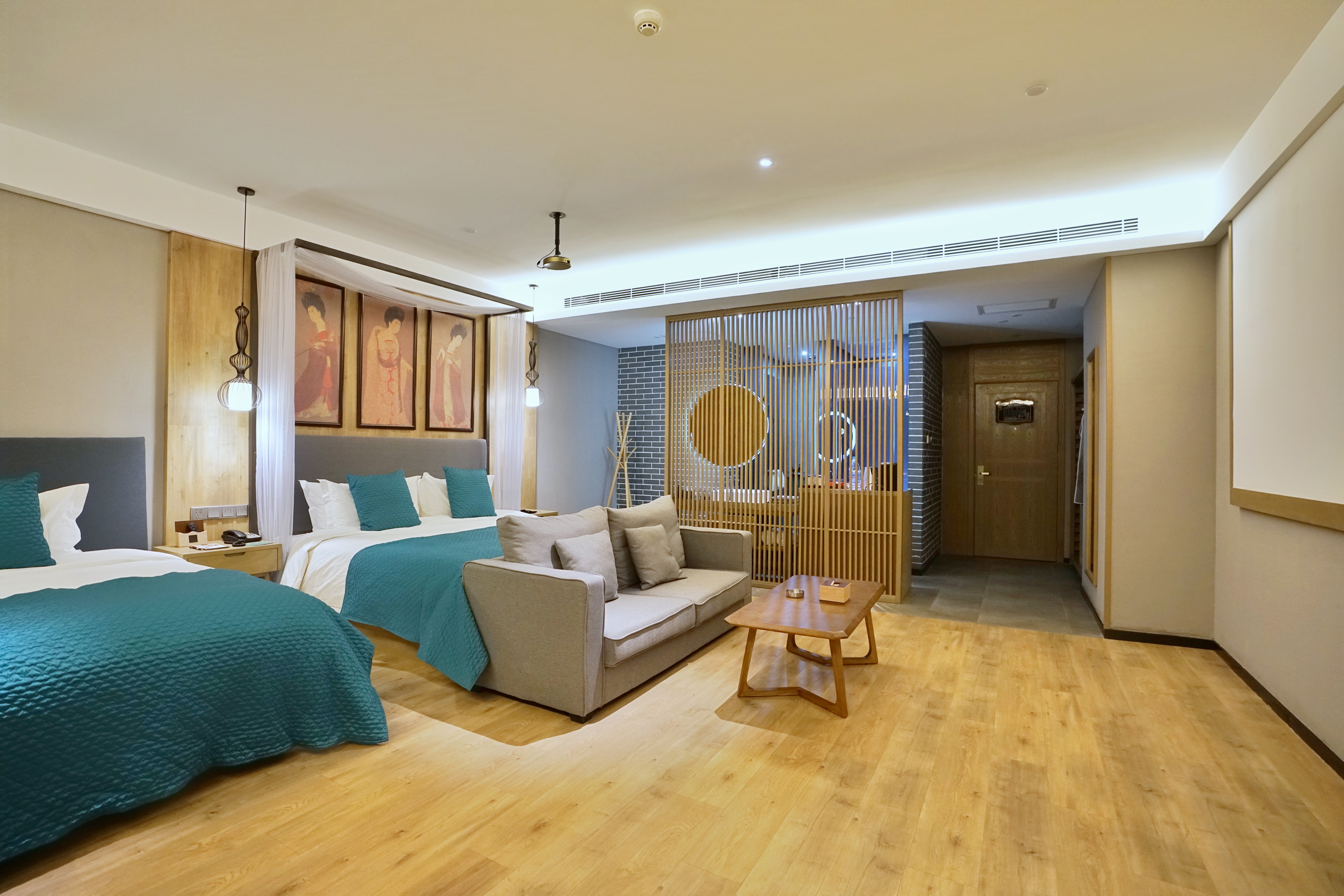 Elegant Business Double Bed Room With Large Screen Projection (Chinese-Style Tea Table + Air Purifier)