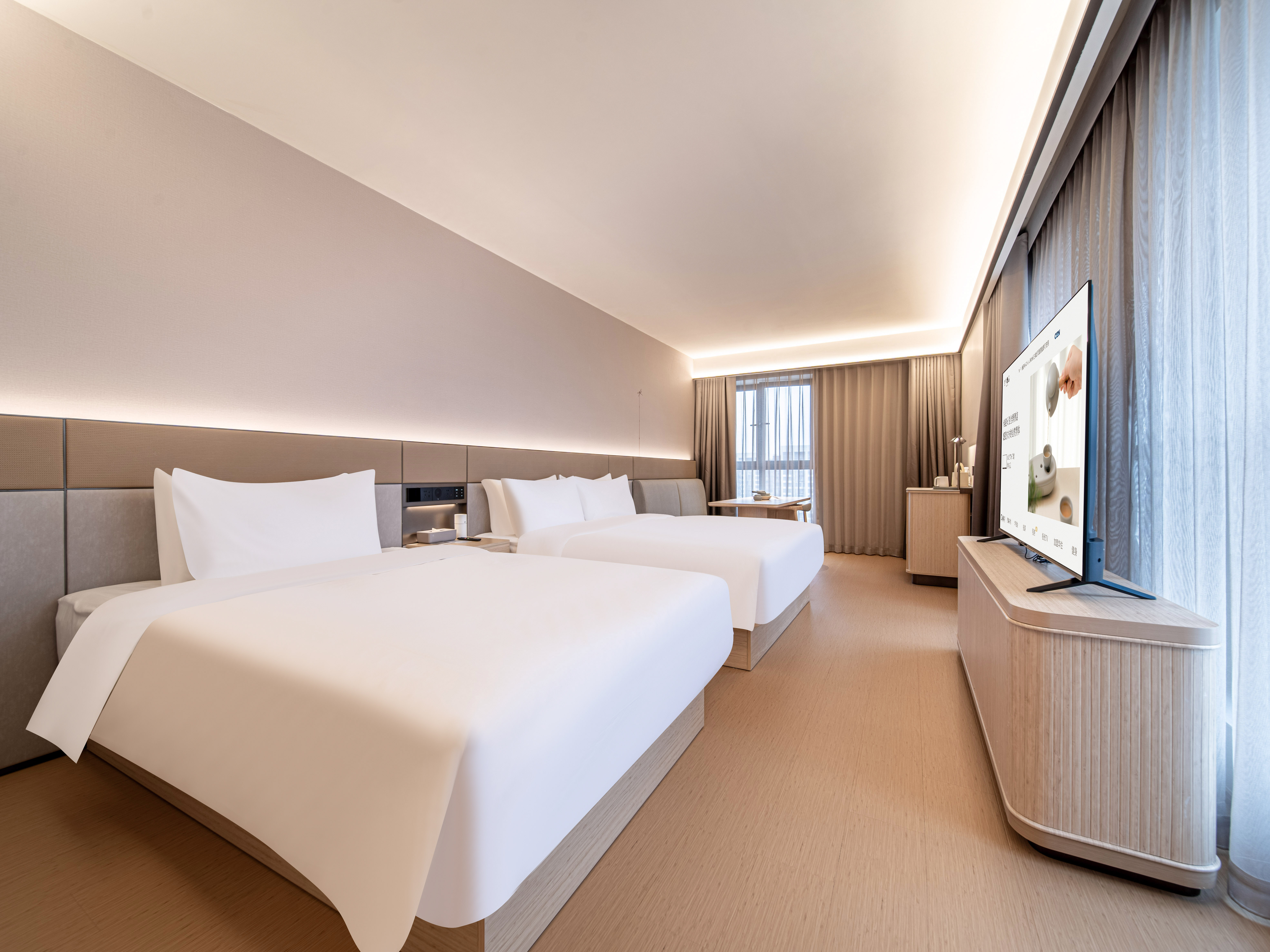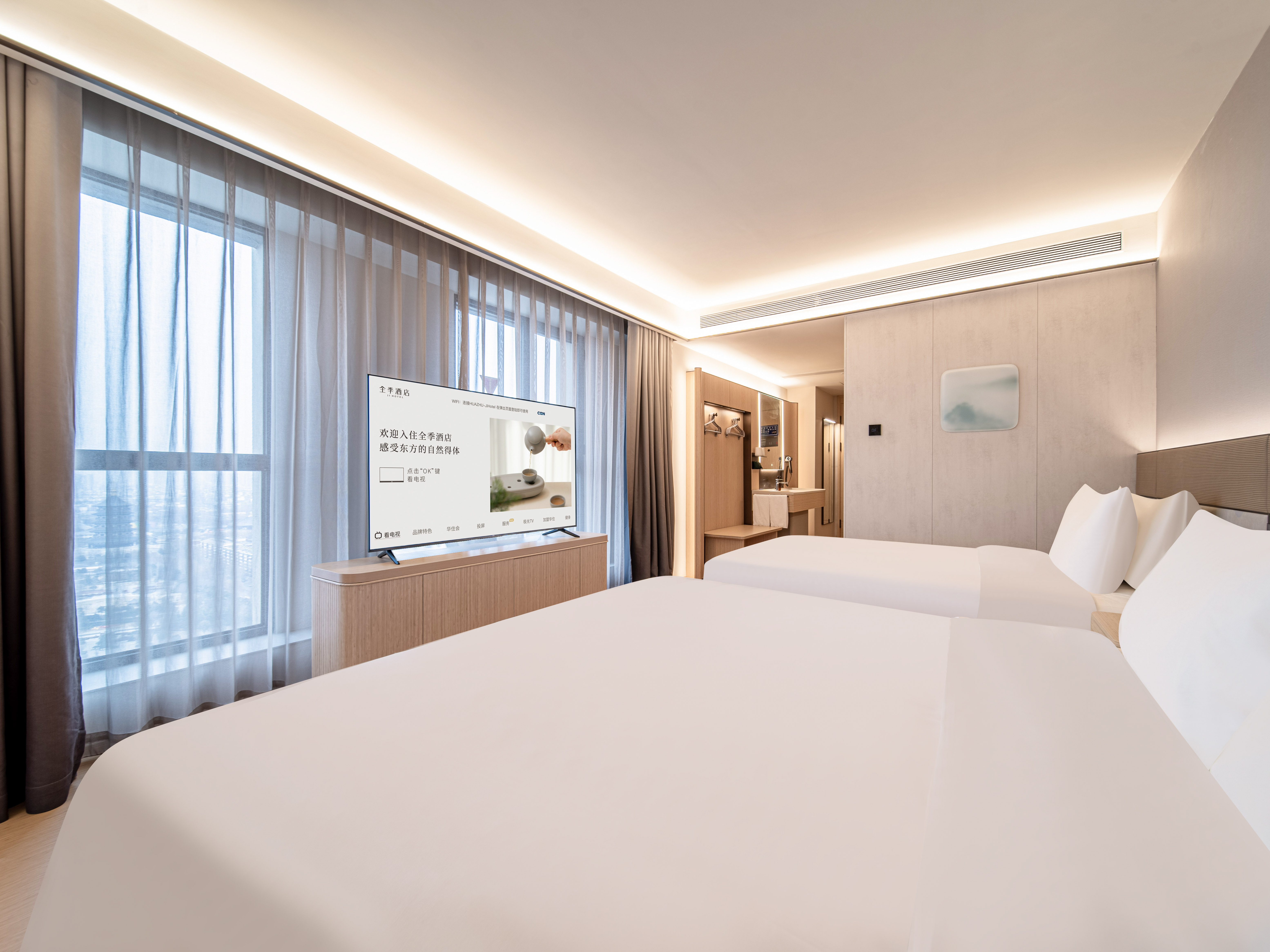 商务双床房(高空城景+落地大窗+拾光茶具)