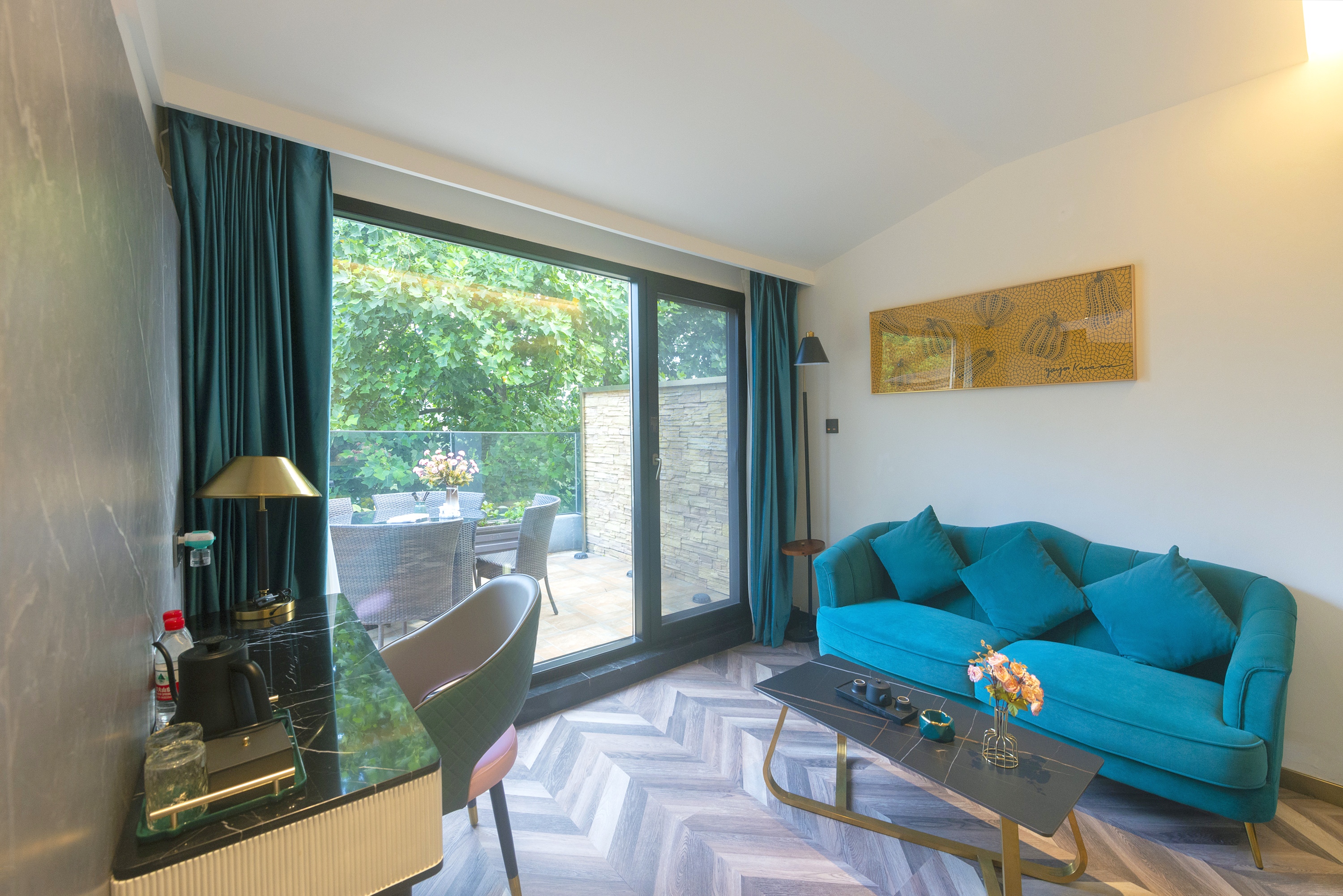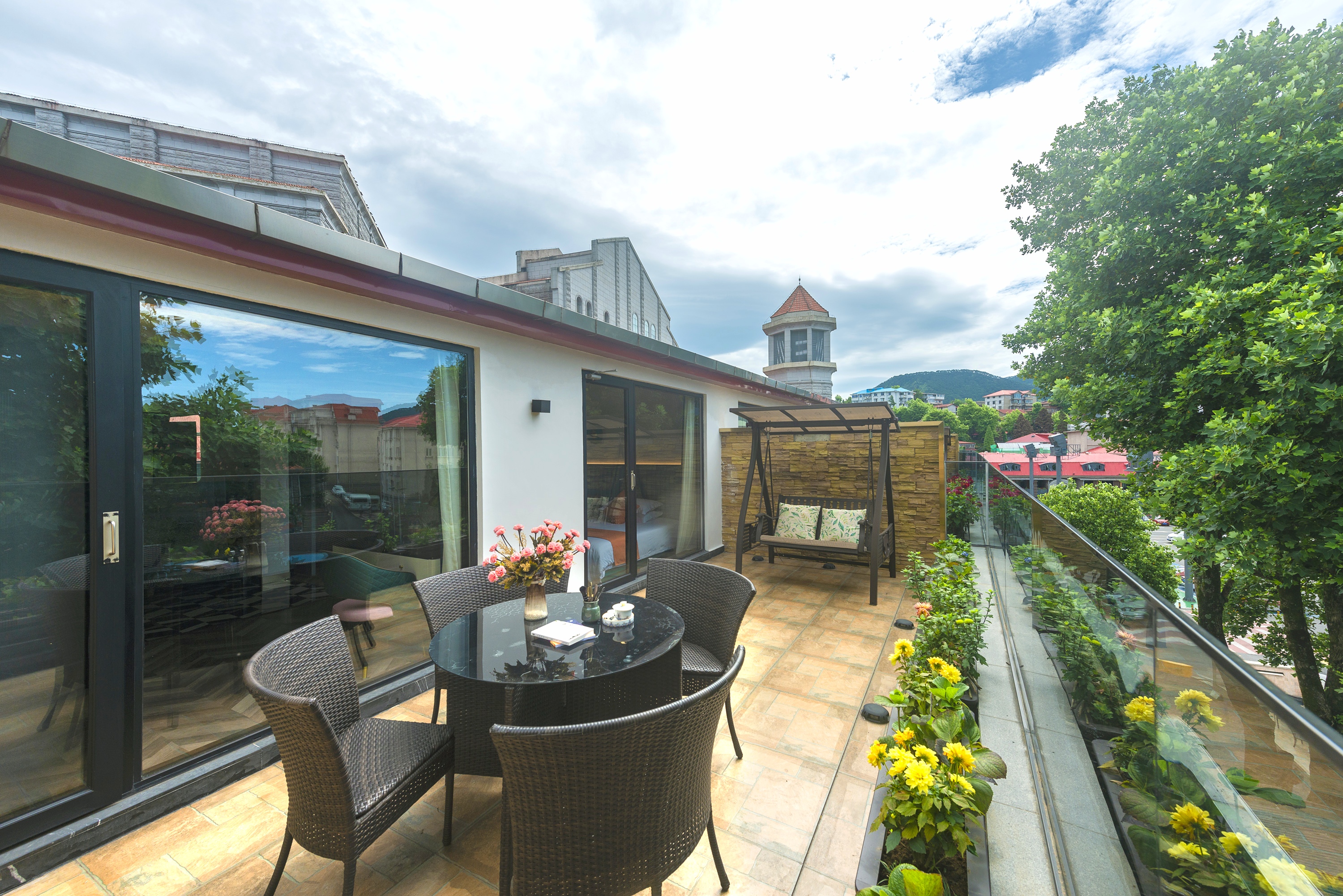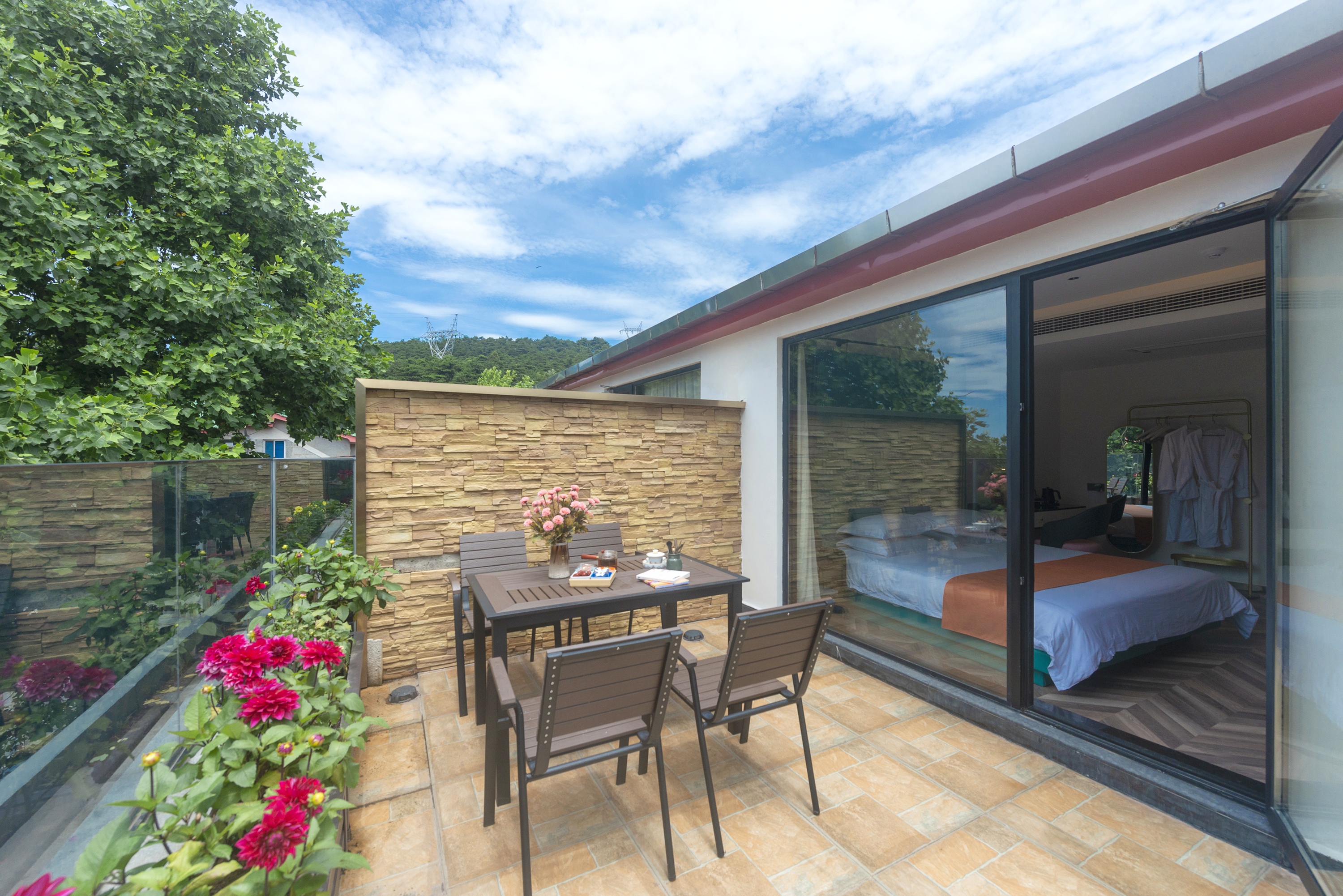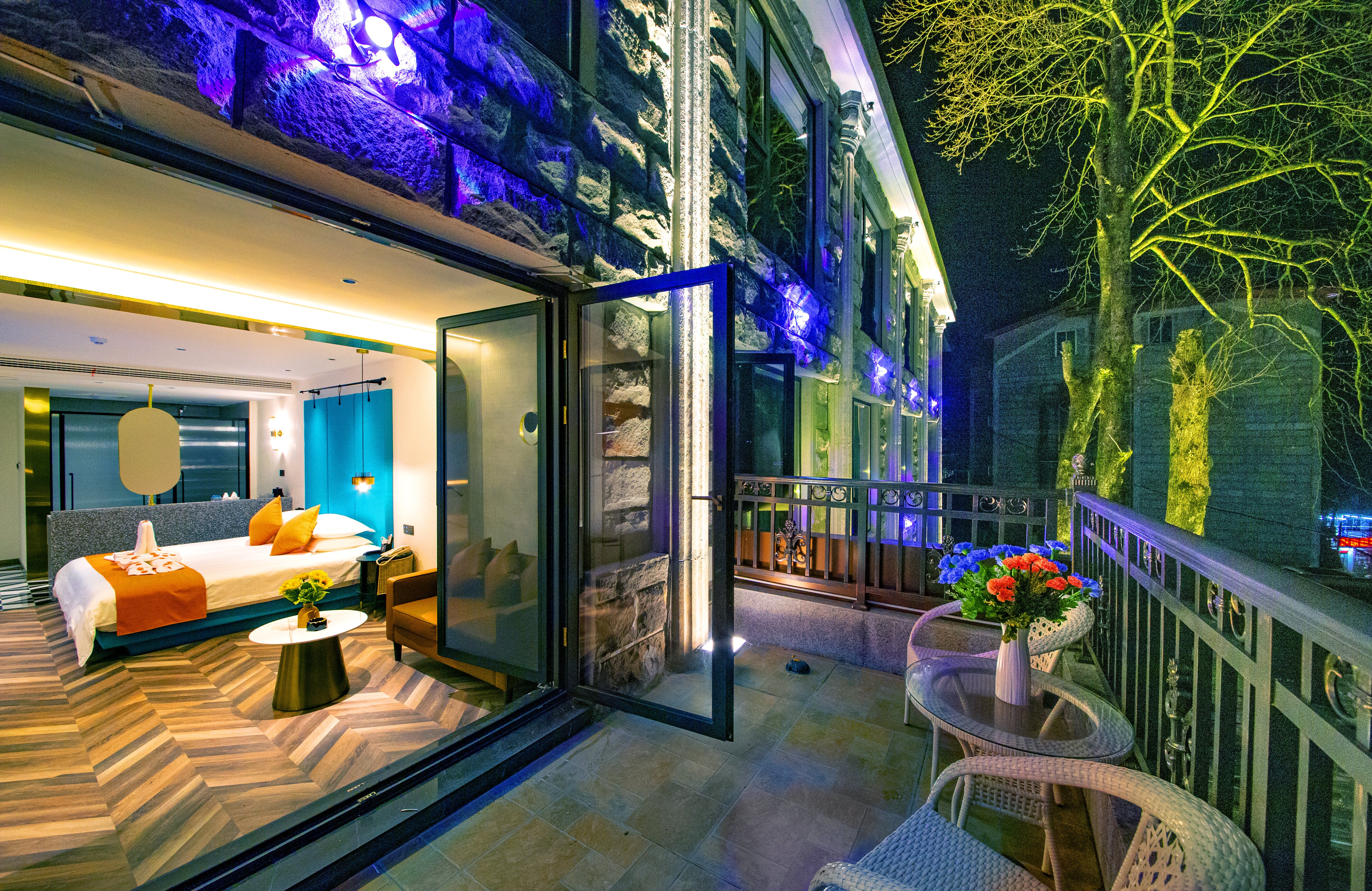 开放式城景大床房丨【天燃气水暖,地暖+露台吊椅+小冰箱+保险柜】