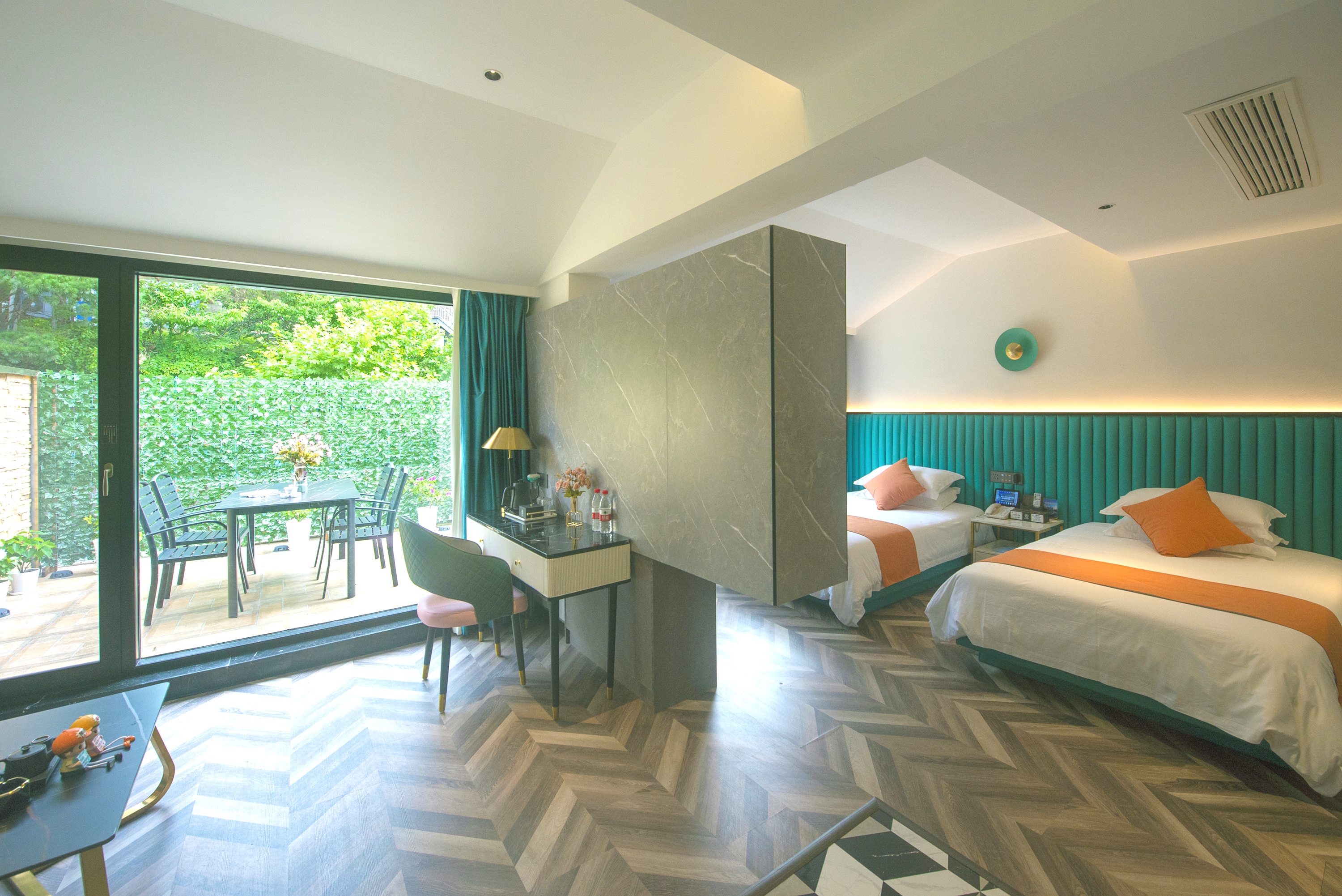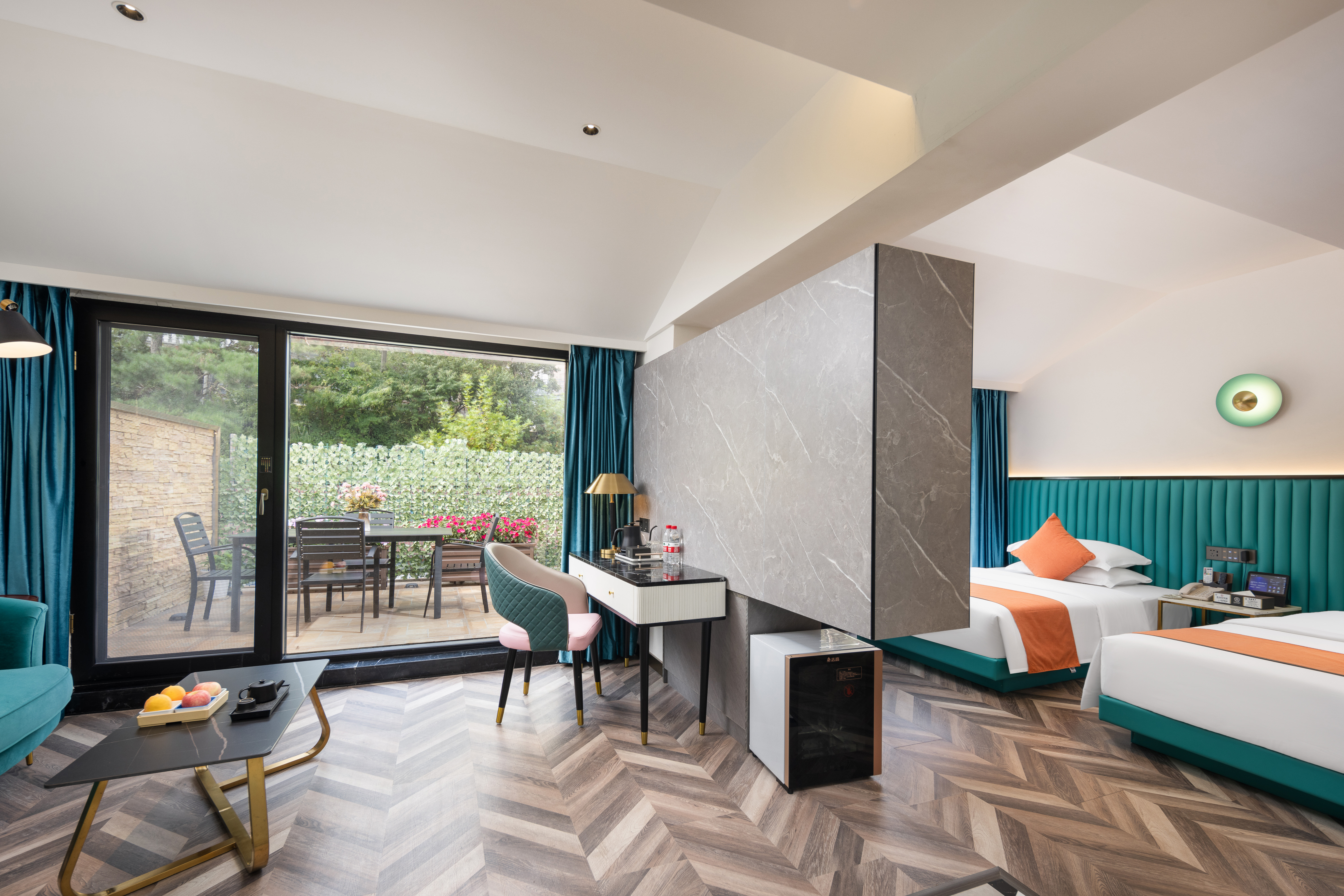 松涛观景双床房丨【天燃气水暖,地暖+大露台+小冰箱+影音投屏】