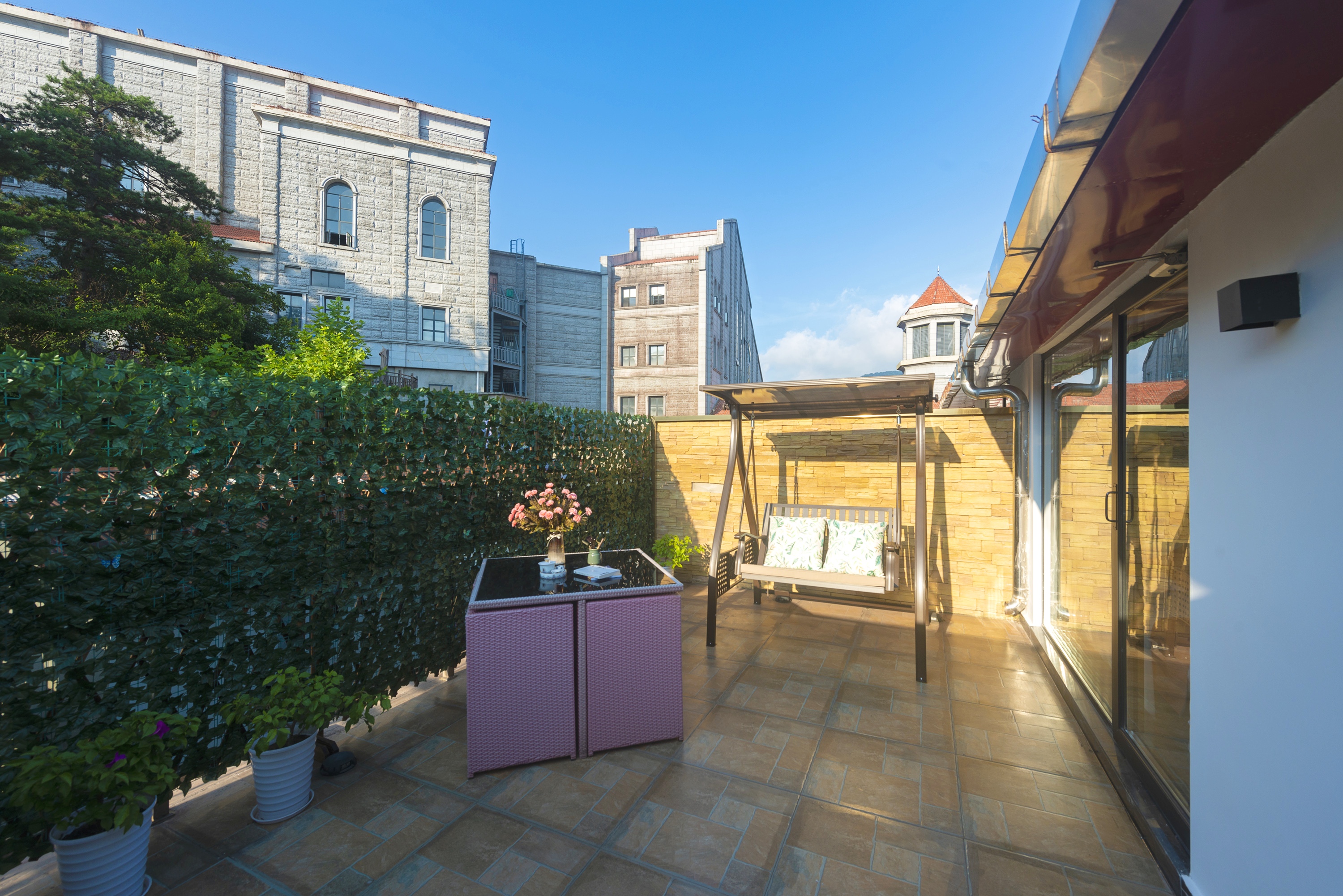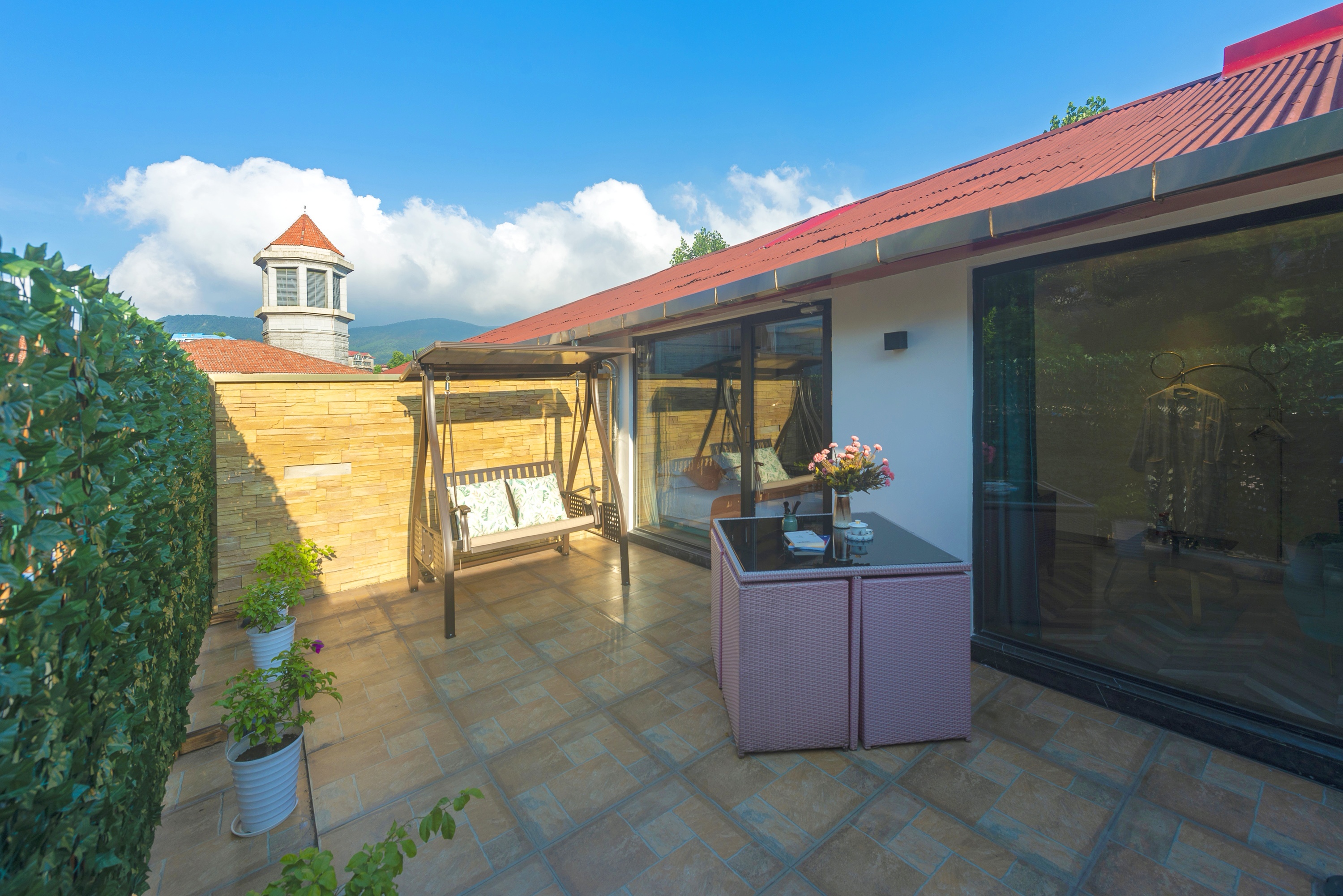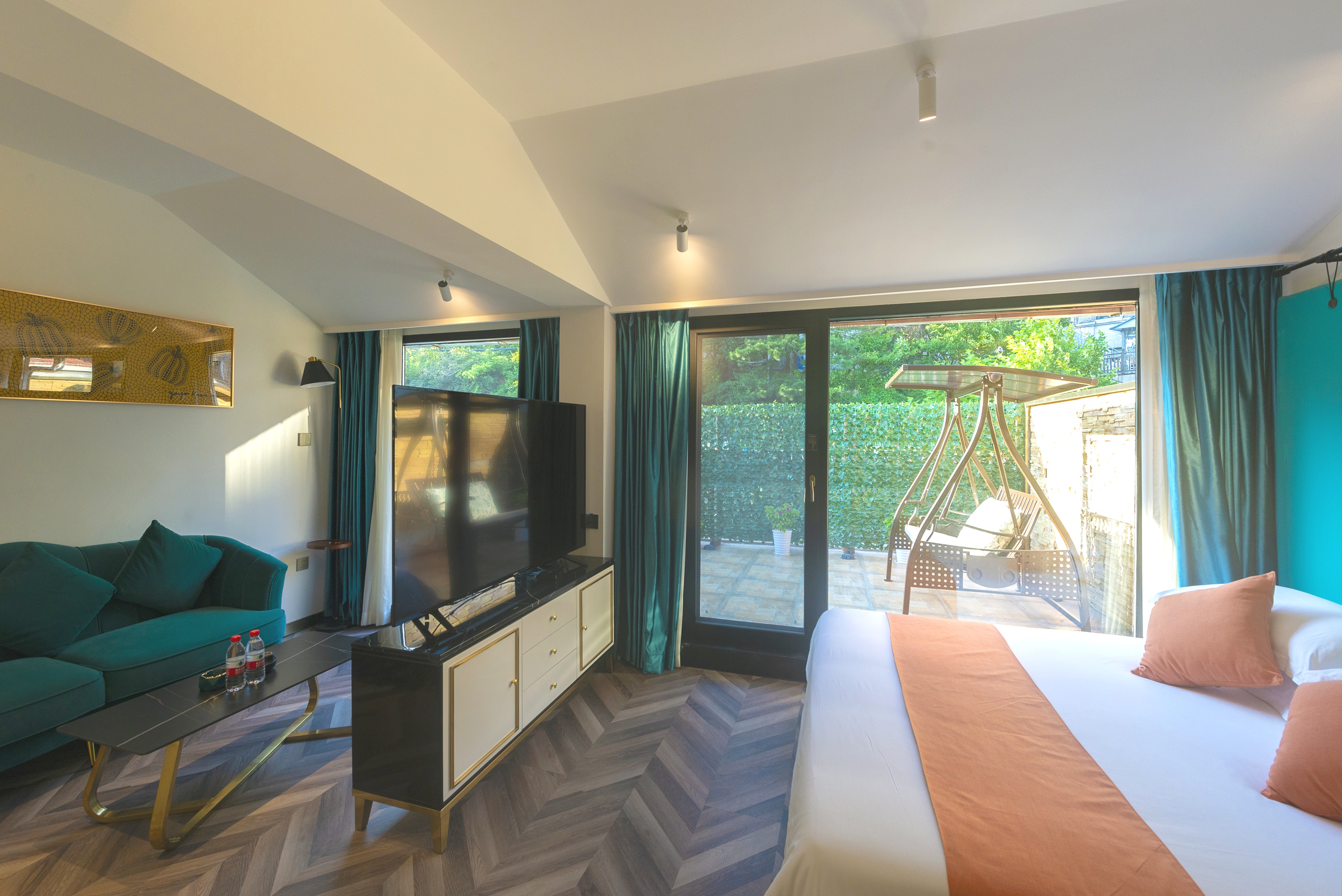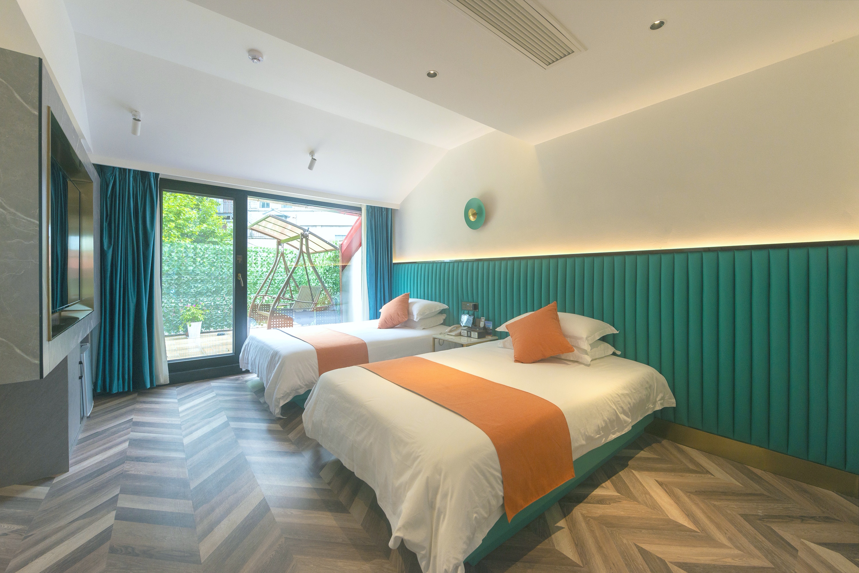 伍零柒·观景大床房丨【天燃气水暖,地暖+户外阳台+秋千吊椅】