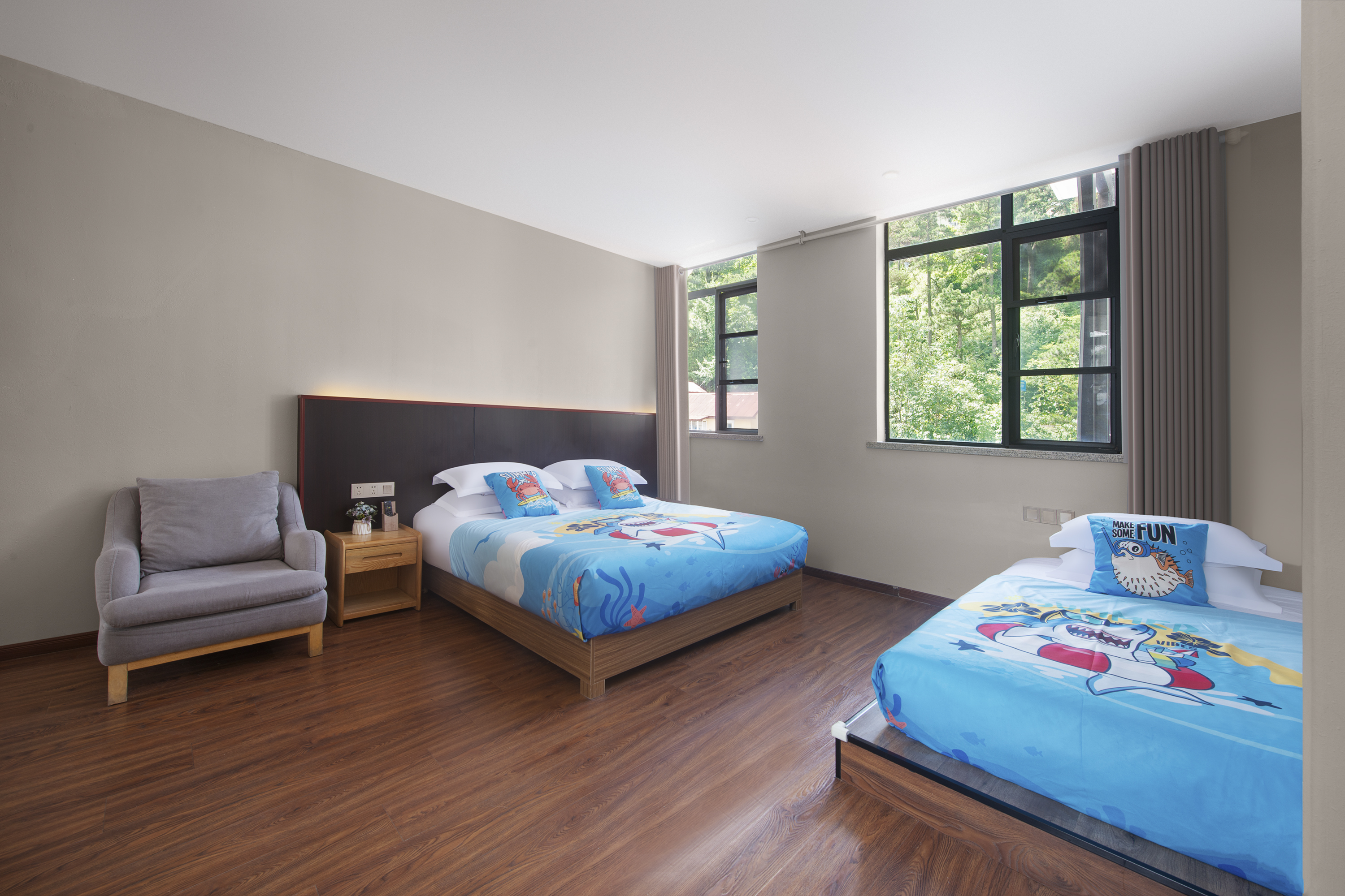 稚野?童趣亲子双床房【超大观山空间+北欧风布艺沙发】