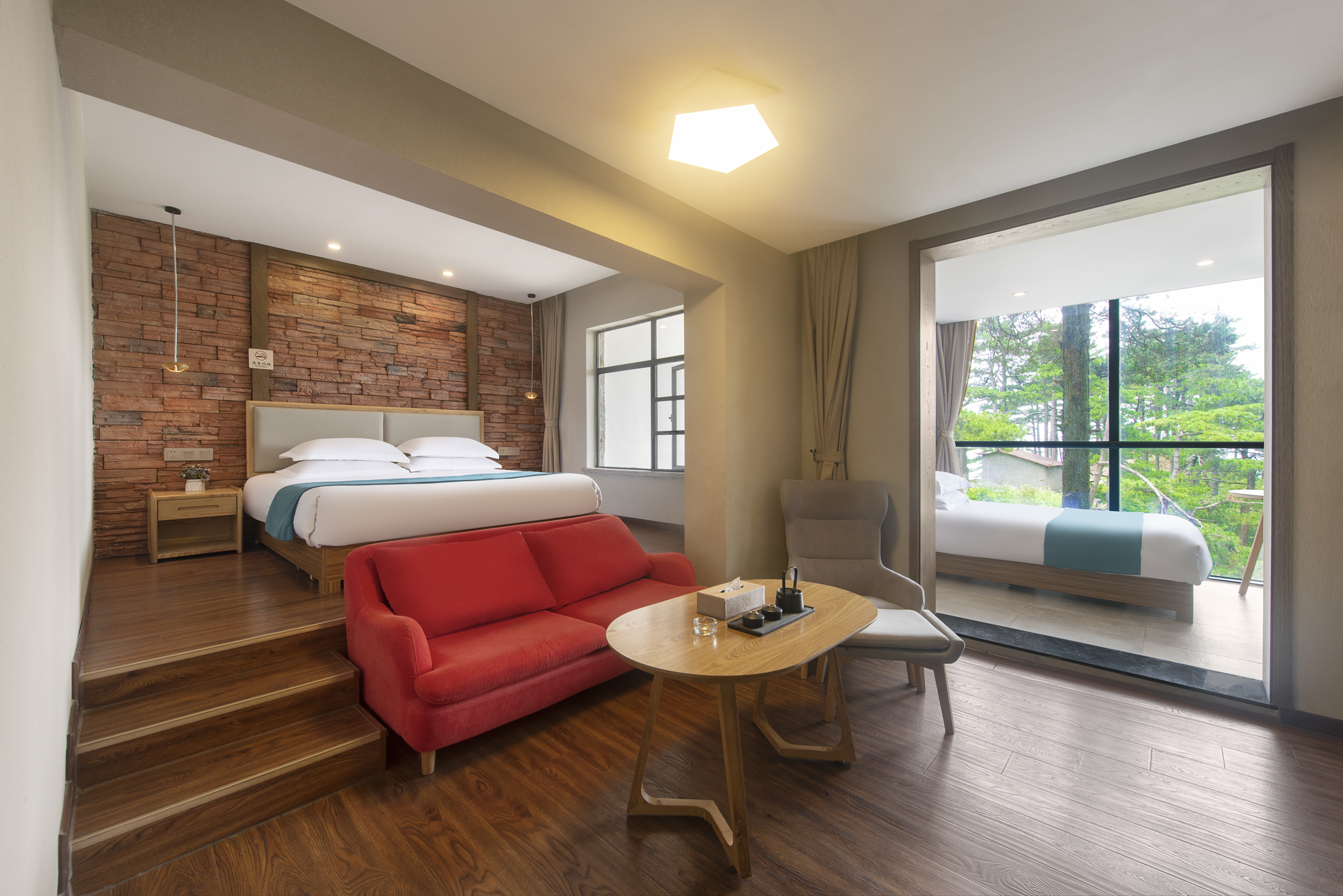 乐栖?180°林景双卧家庭房【超大观山落地窗+独立客厅】