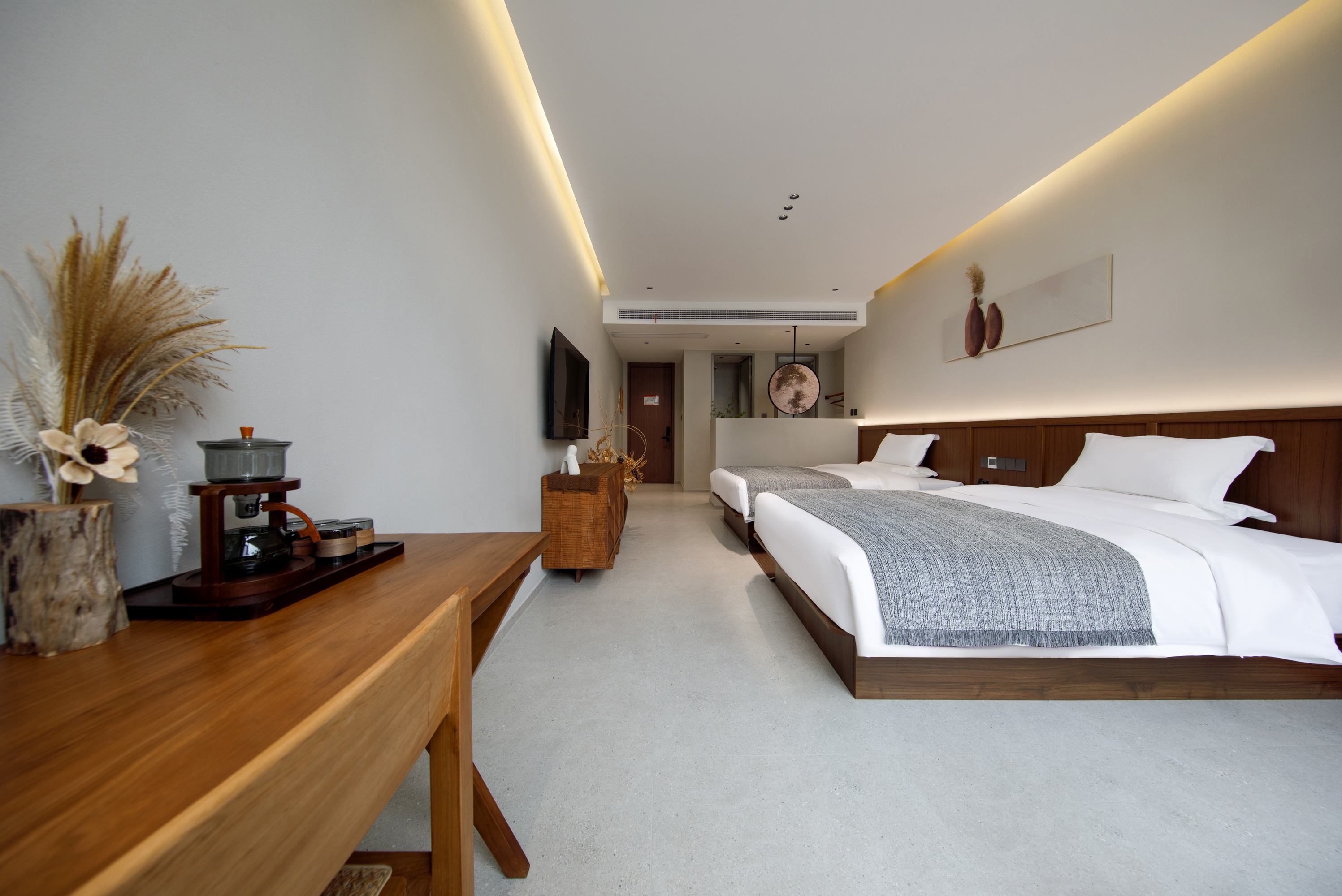云染双床房(双面全景落地窗+花园景观+智能投影)