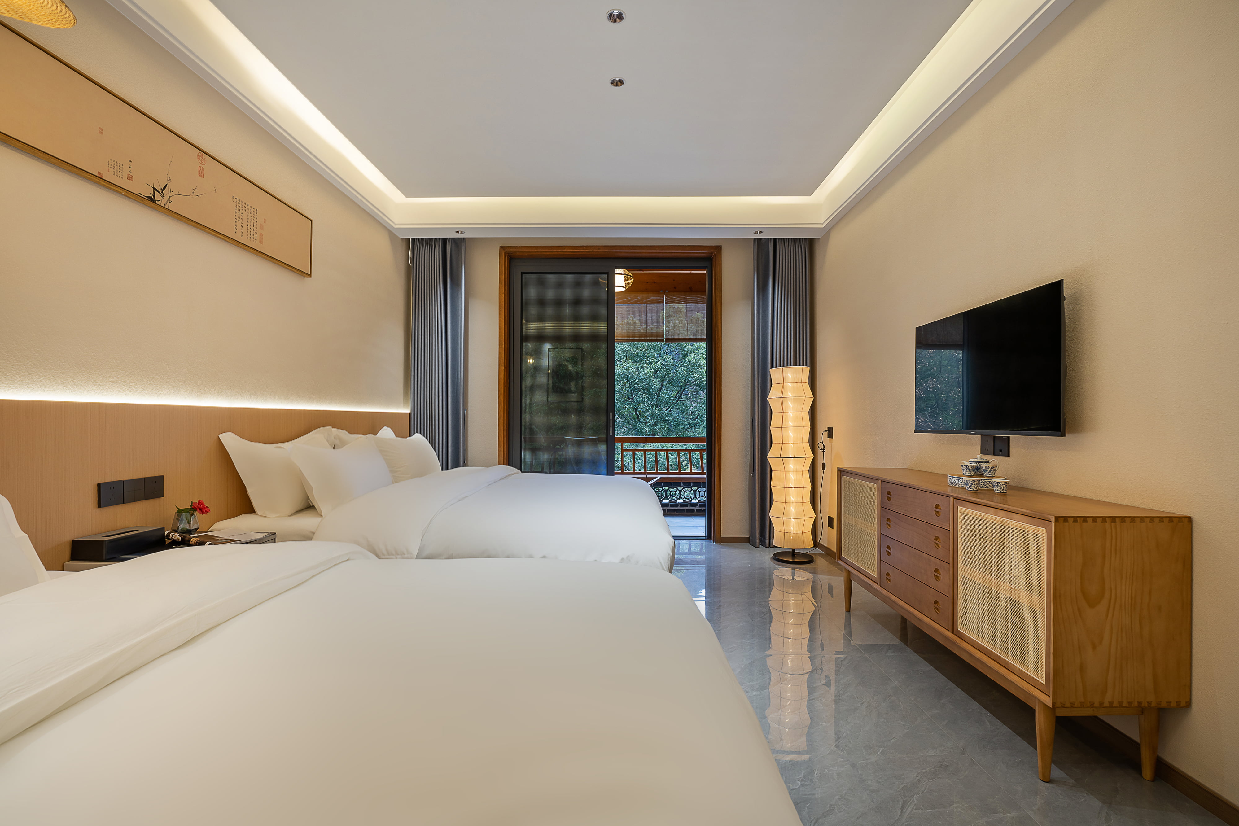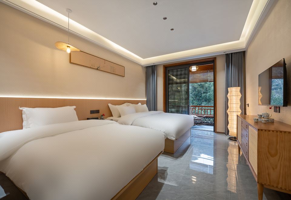 西楼豪华榻榻米观景双床房+山景+小冰箱+智能马桶