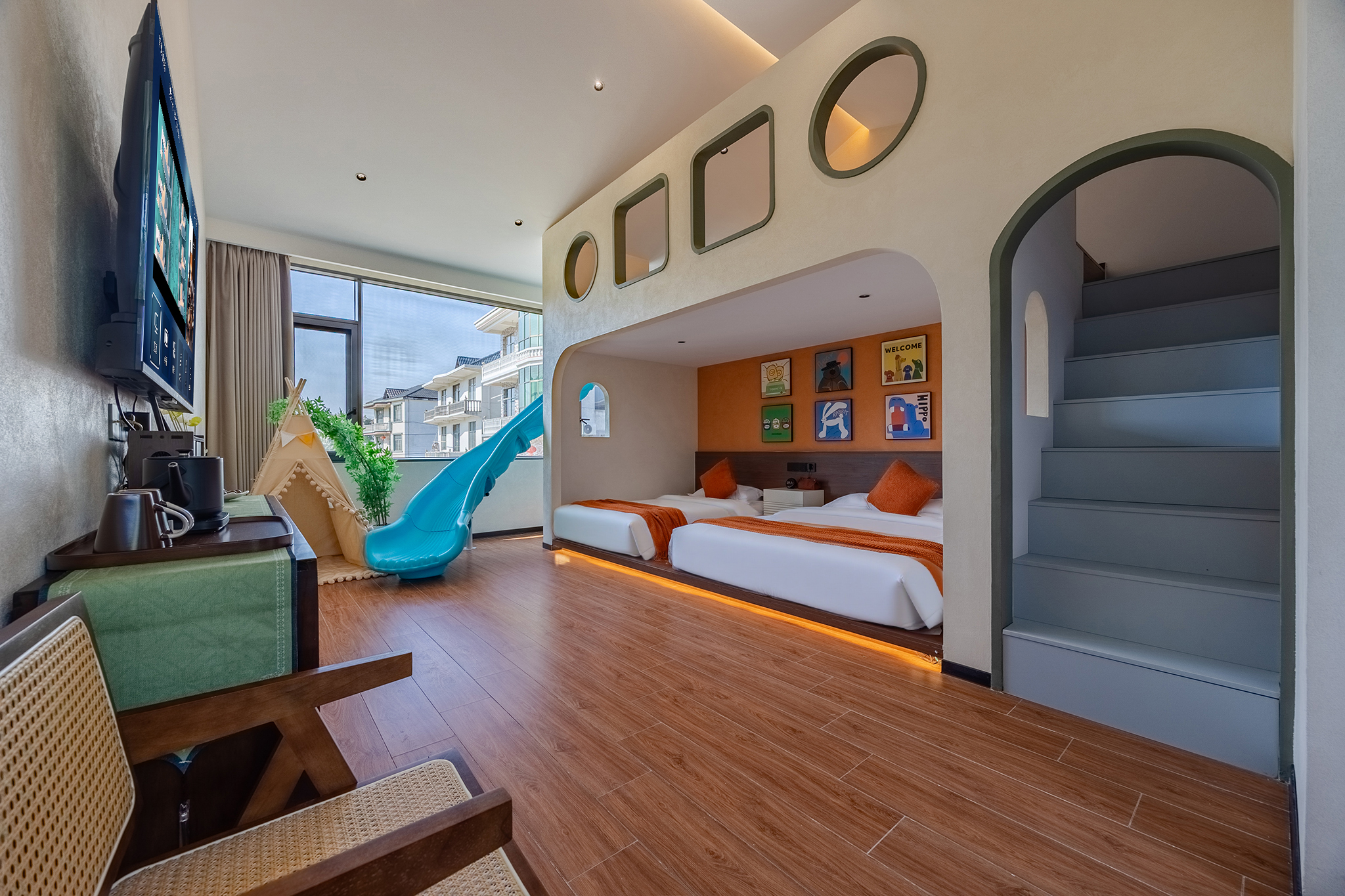 云栖亲子房『特色滑滑梯+全屋智能+巨幕观影+落地窗』