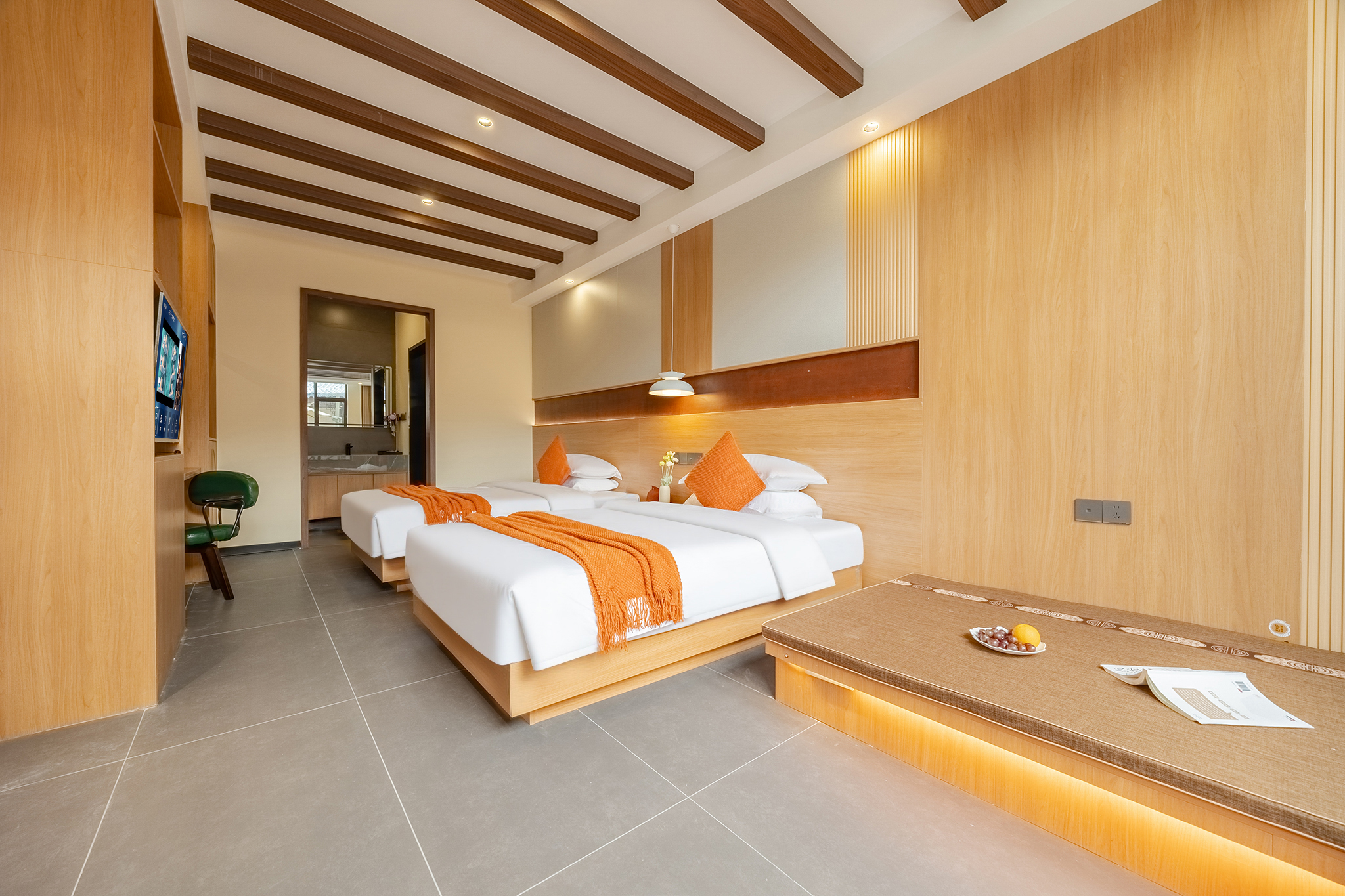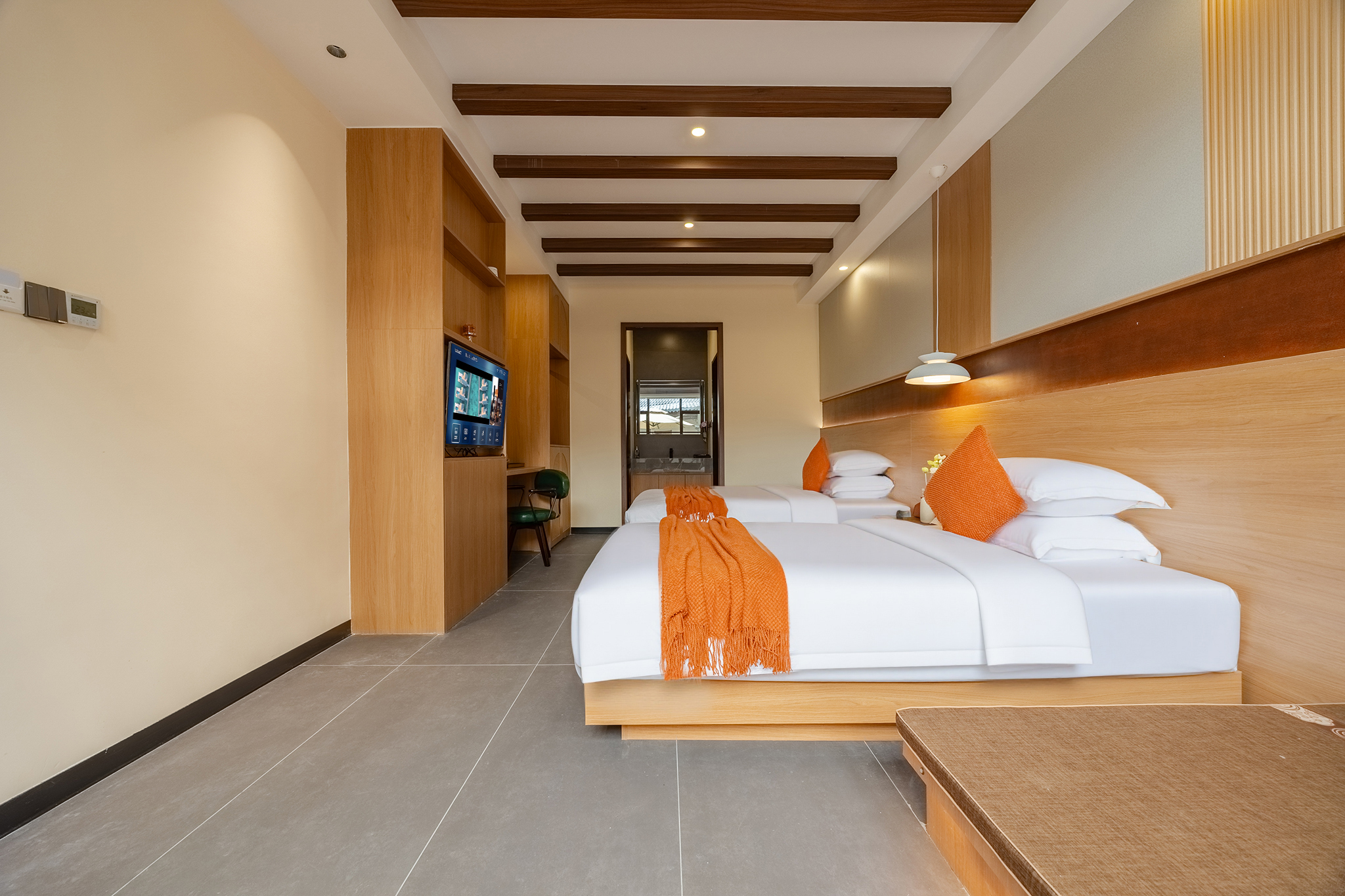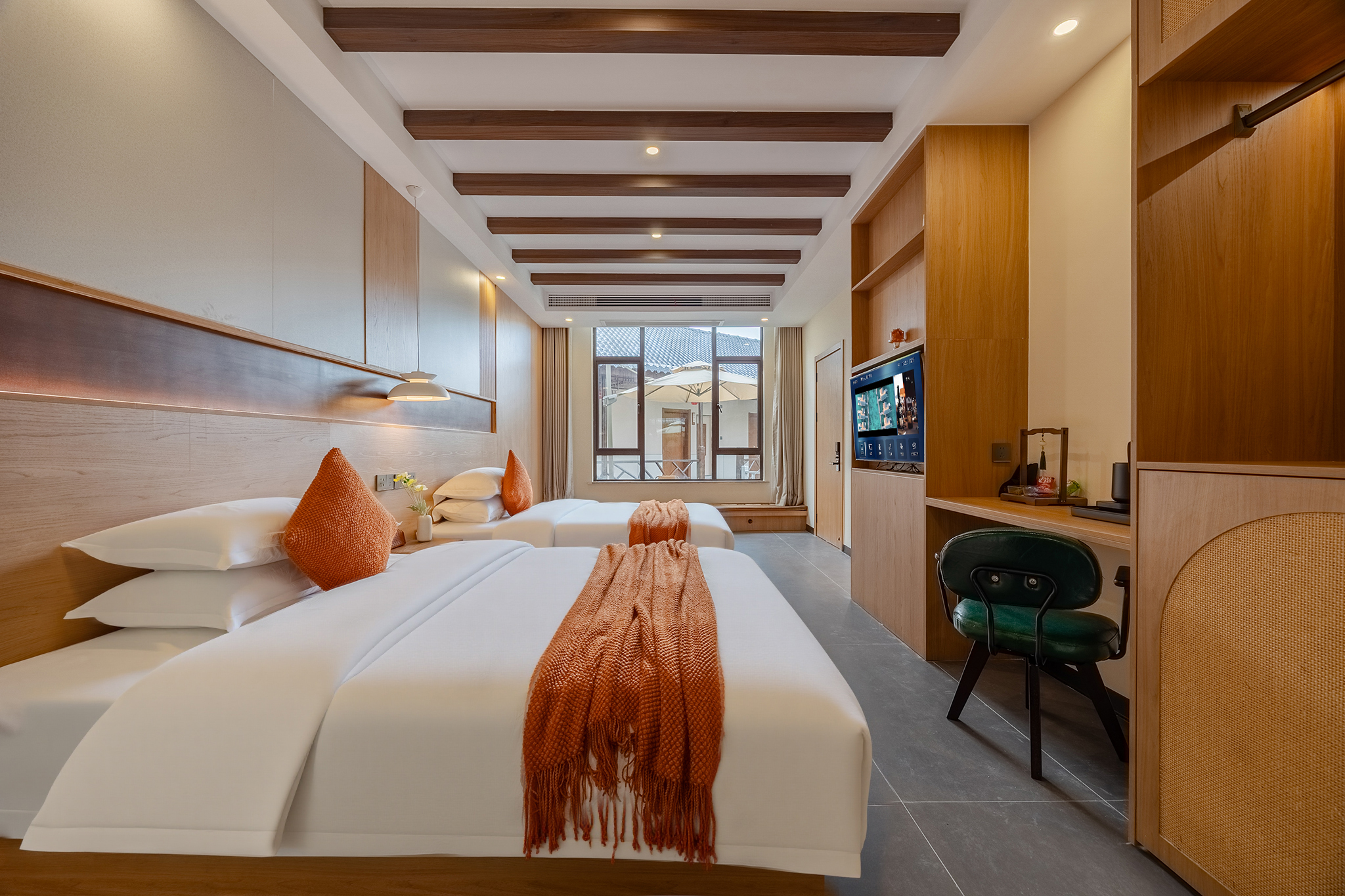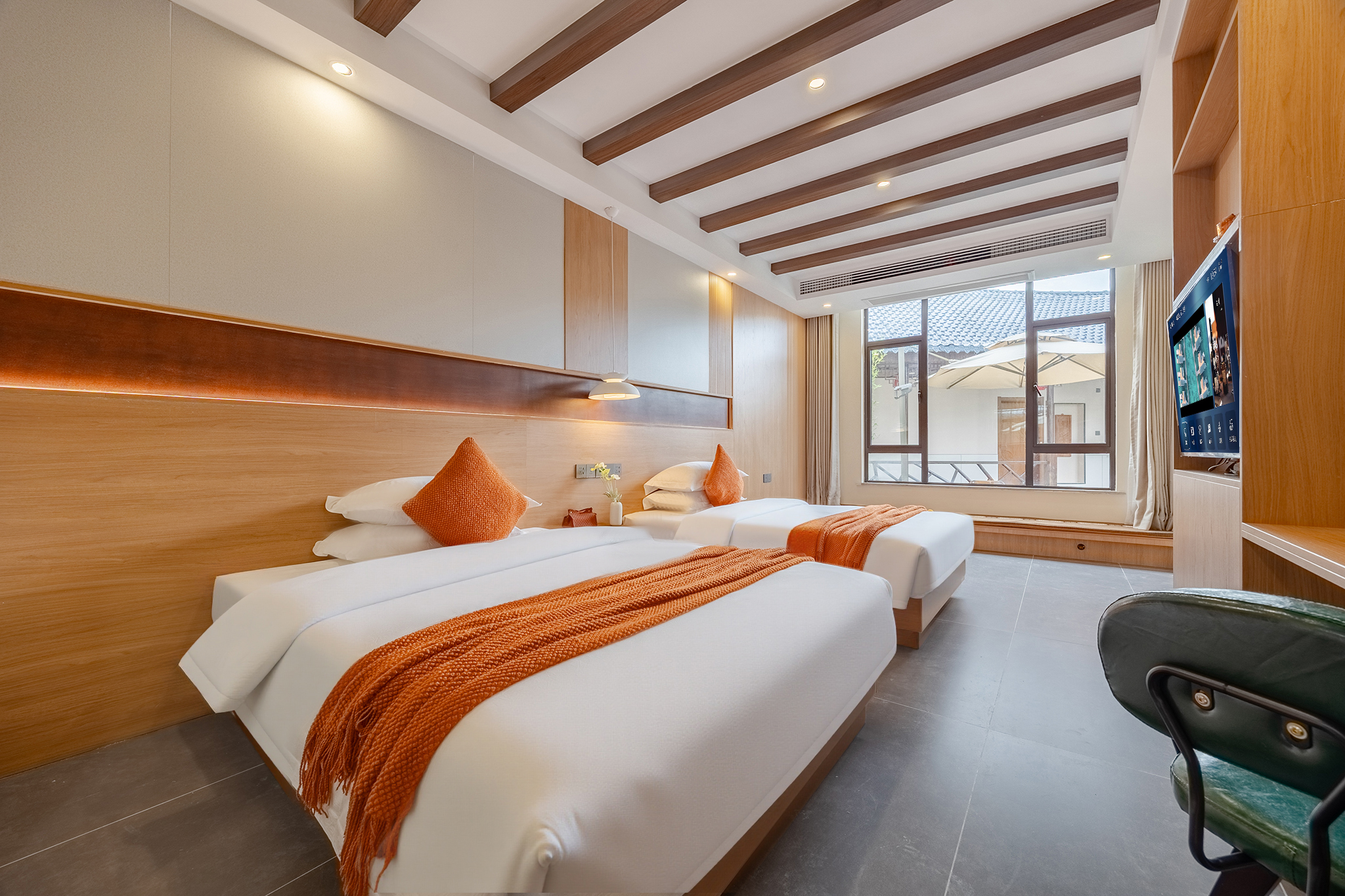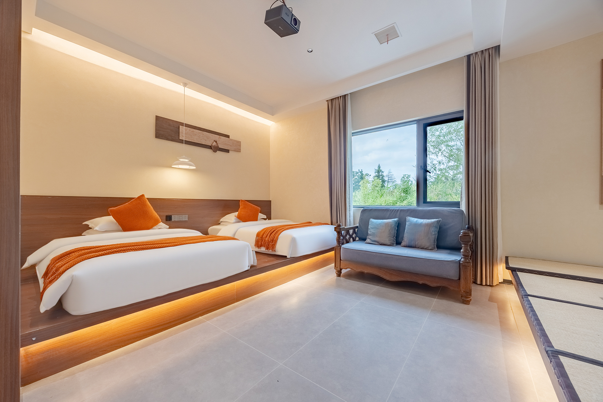 梵音双床房『品牌床垫衞浴+智能马桶+落地窗+悠闲区』