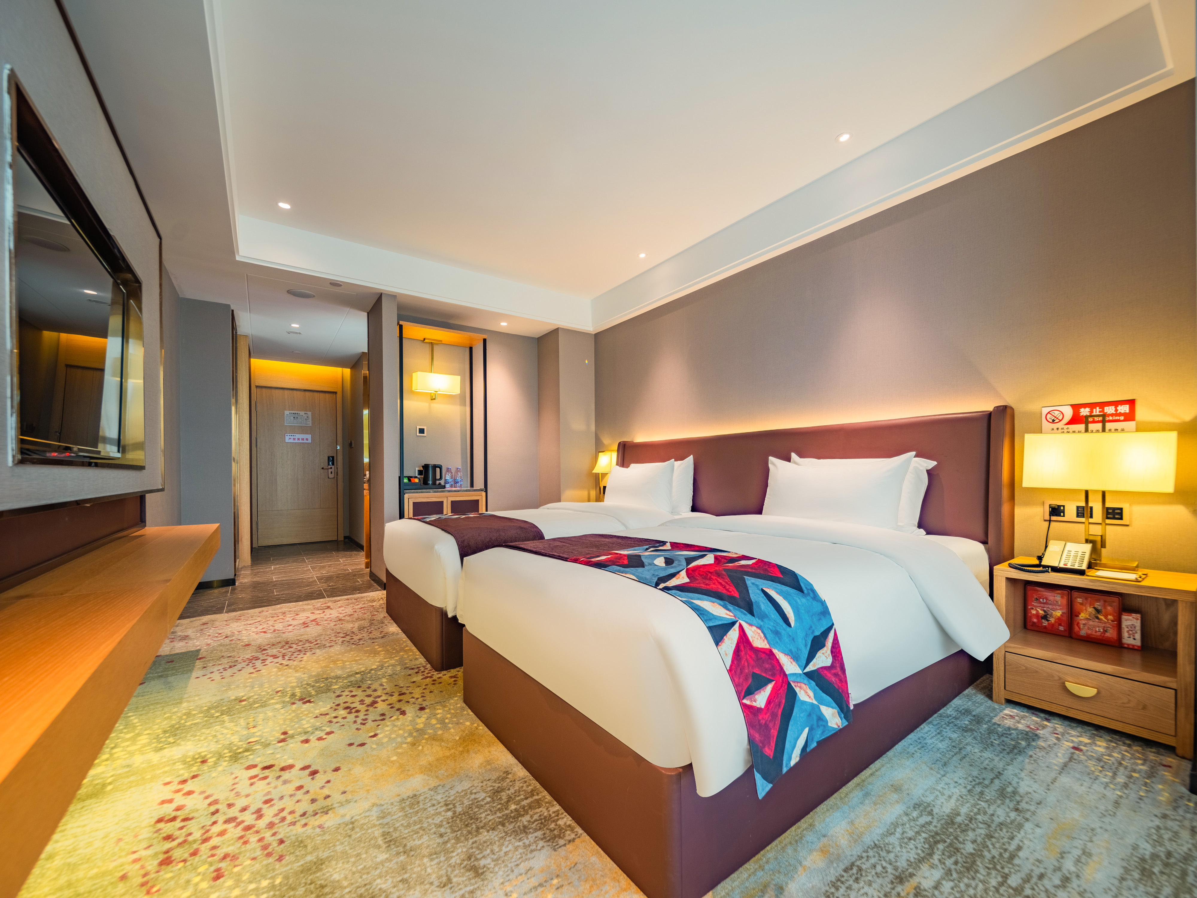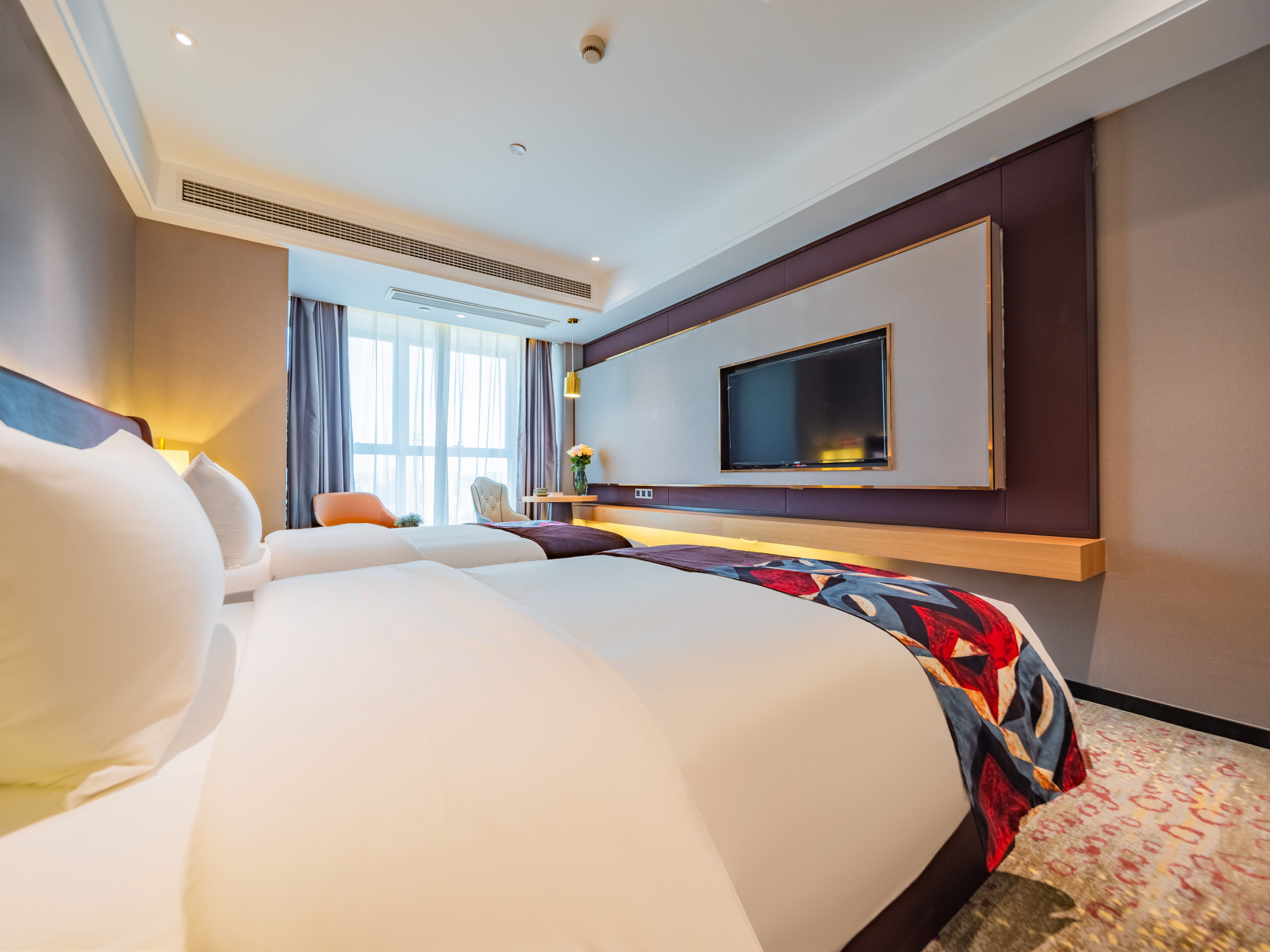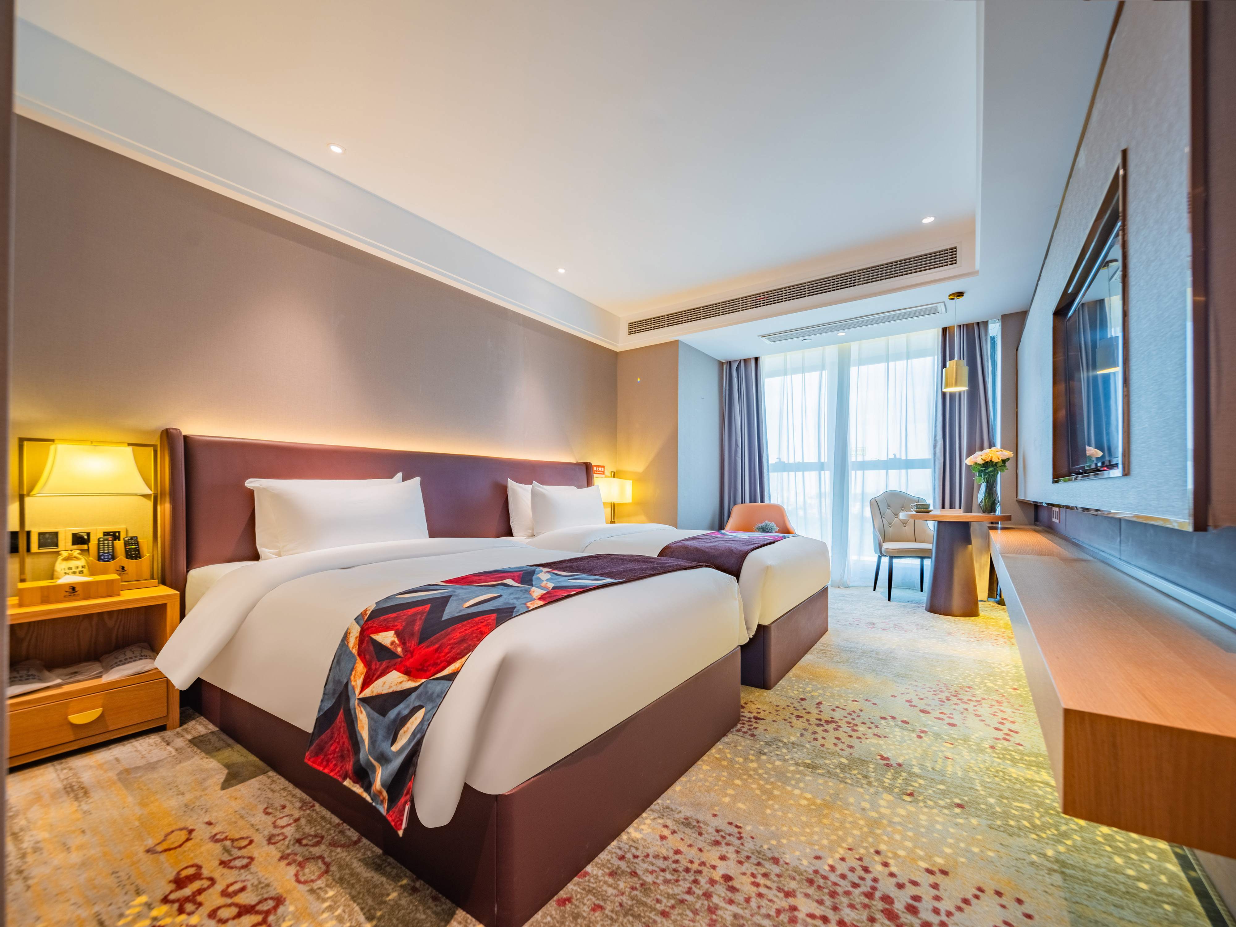 泊庭丨高级双床(现代风+落地窗+双人办公枱)