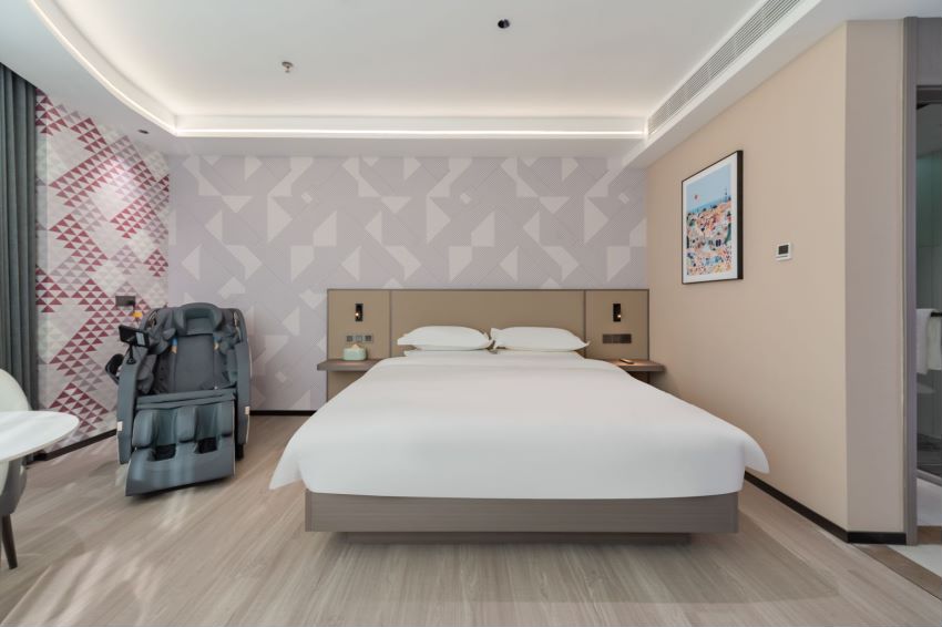 雅致商务大床房(茶台+按摩椅+梦百合床垫+羽绒被+冰箱+加湿器+体重秤)