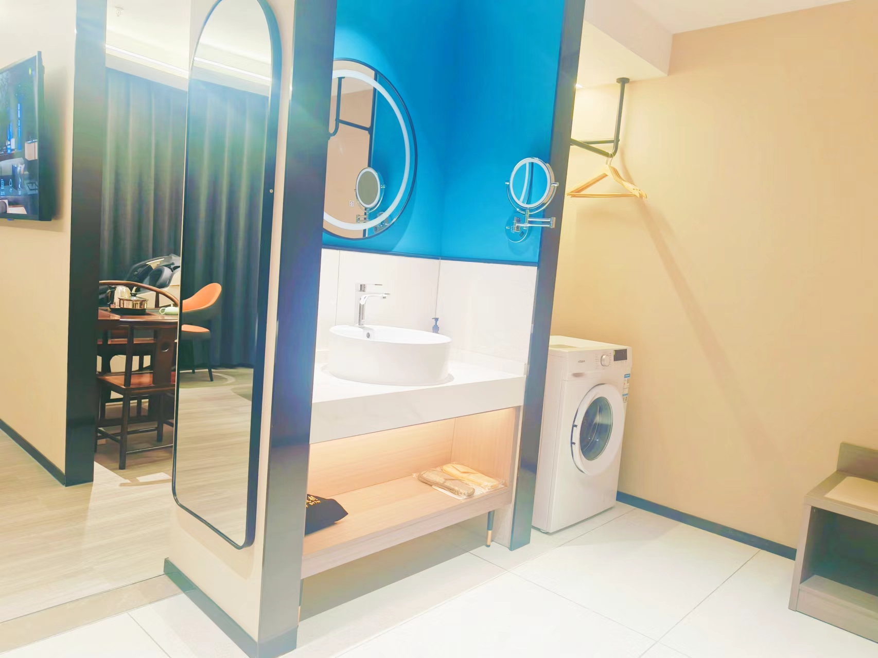 商务行政房(茶台+洗衣机+按摩椅+梦百合床垫+羽绒被+冰箱+加湿器+体重秤)