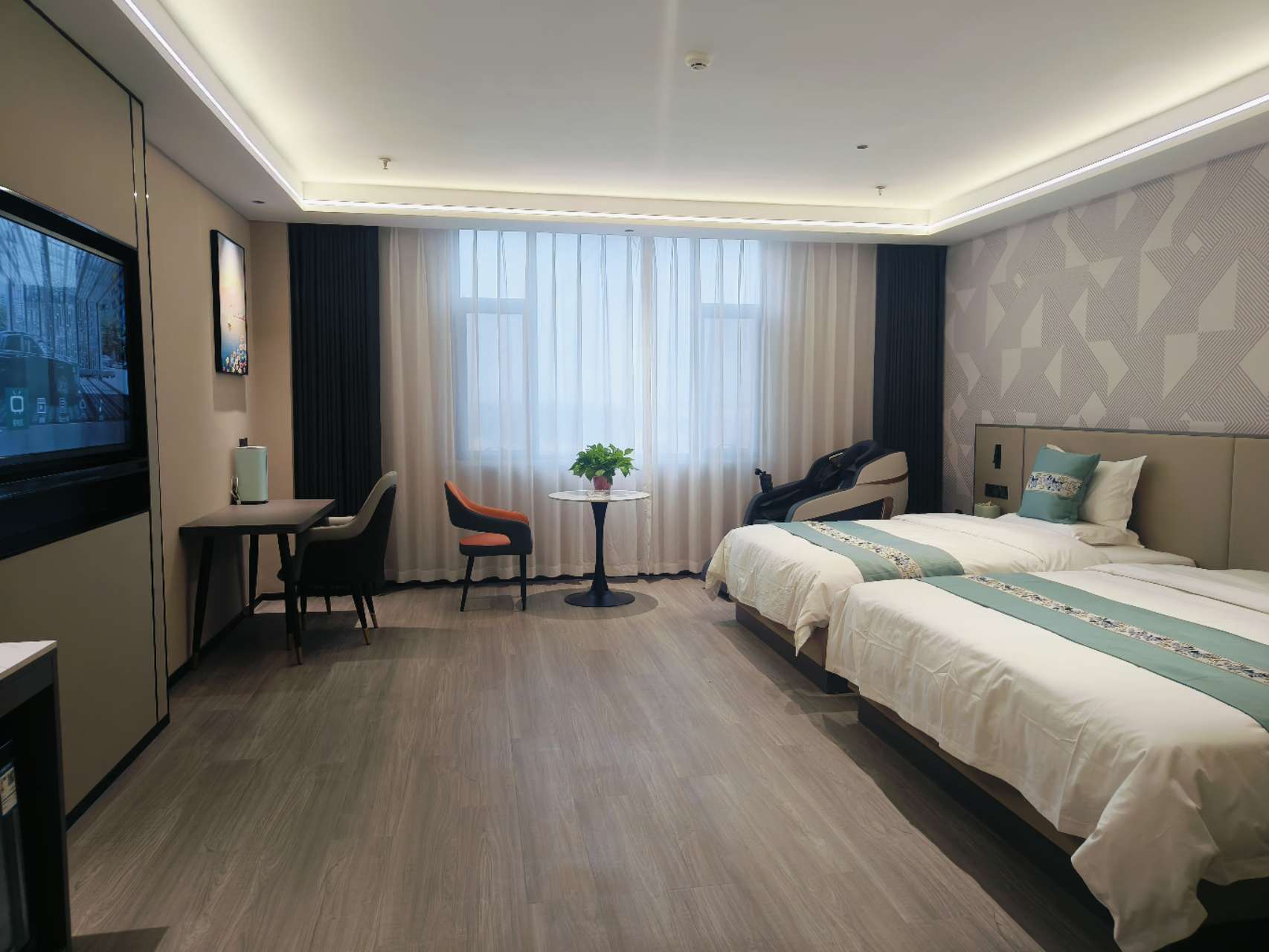 雅致商务双床房(按摩椅+梦百合床垫+羽绒被+冰箱+加湿器+体重秤)