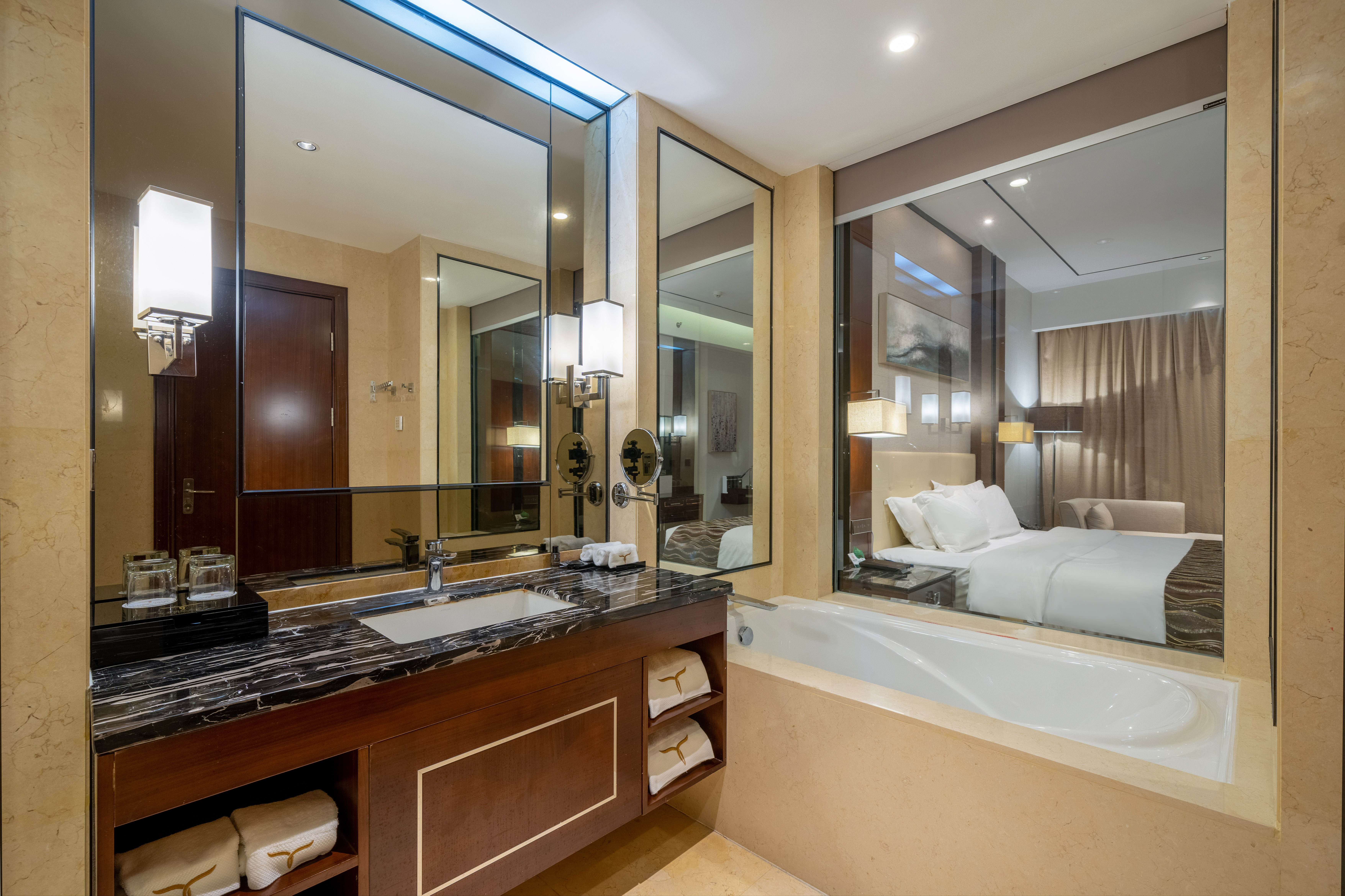 御景尊荣大床房·雅浴(全景落地窗+深泡浴缸+特大床)