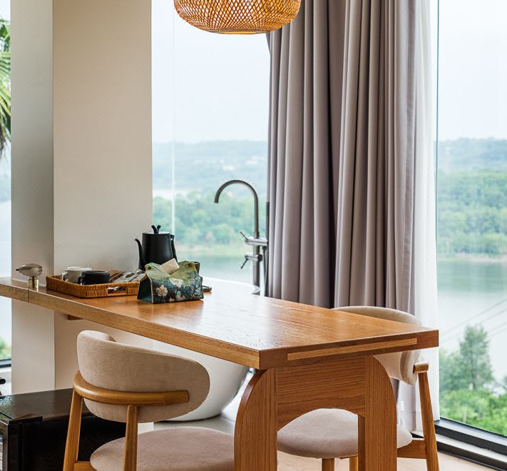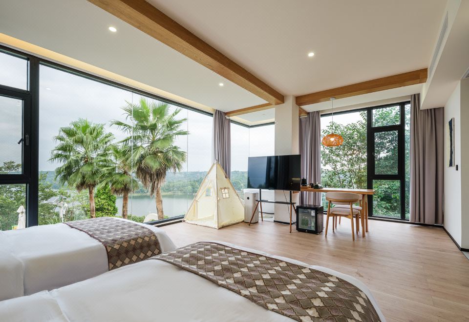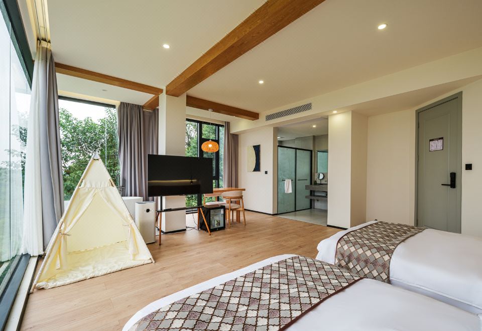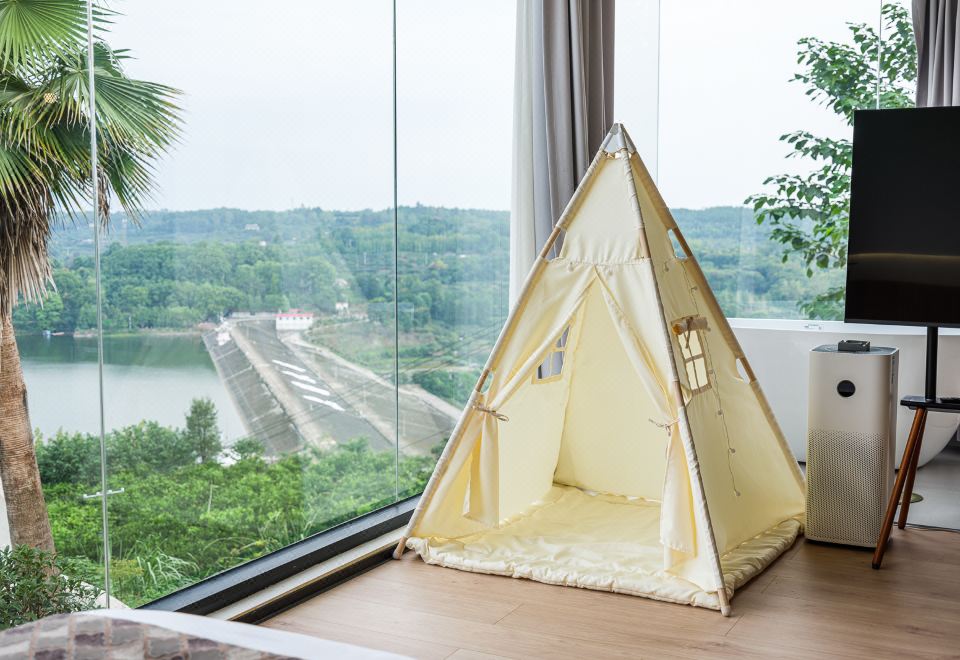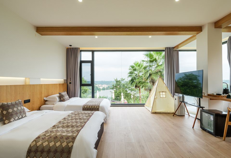 【花屿·月】直面湖景标间+[舒适好眠床品]+舒适浴缸+童趣帐篷+迷你小冰箱+智能客控+jayine音响
