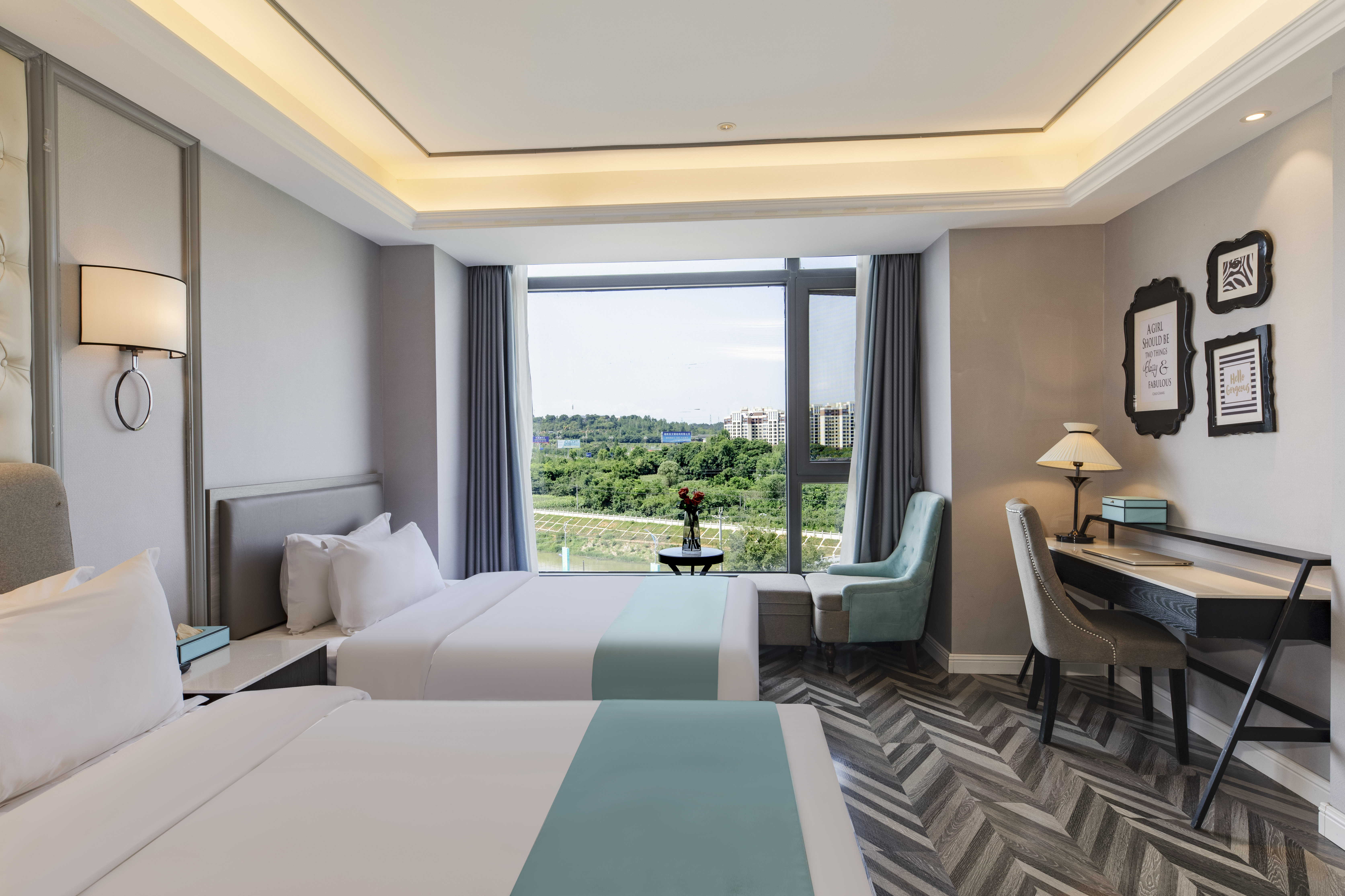 温馨親子雙床房(辦公桌.獨立沙發.化粧鏡.乳膠床墊)
