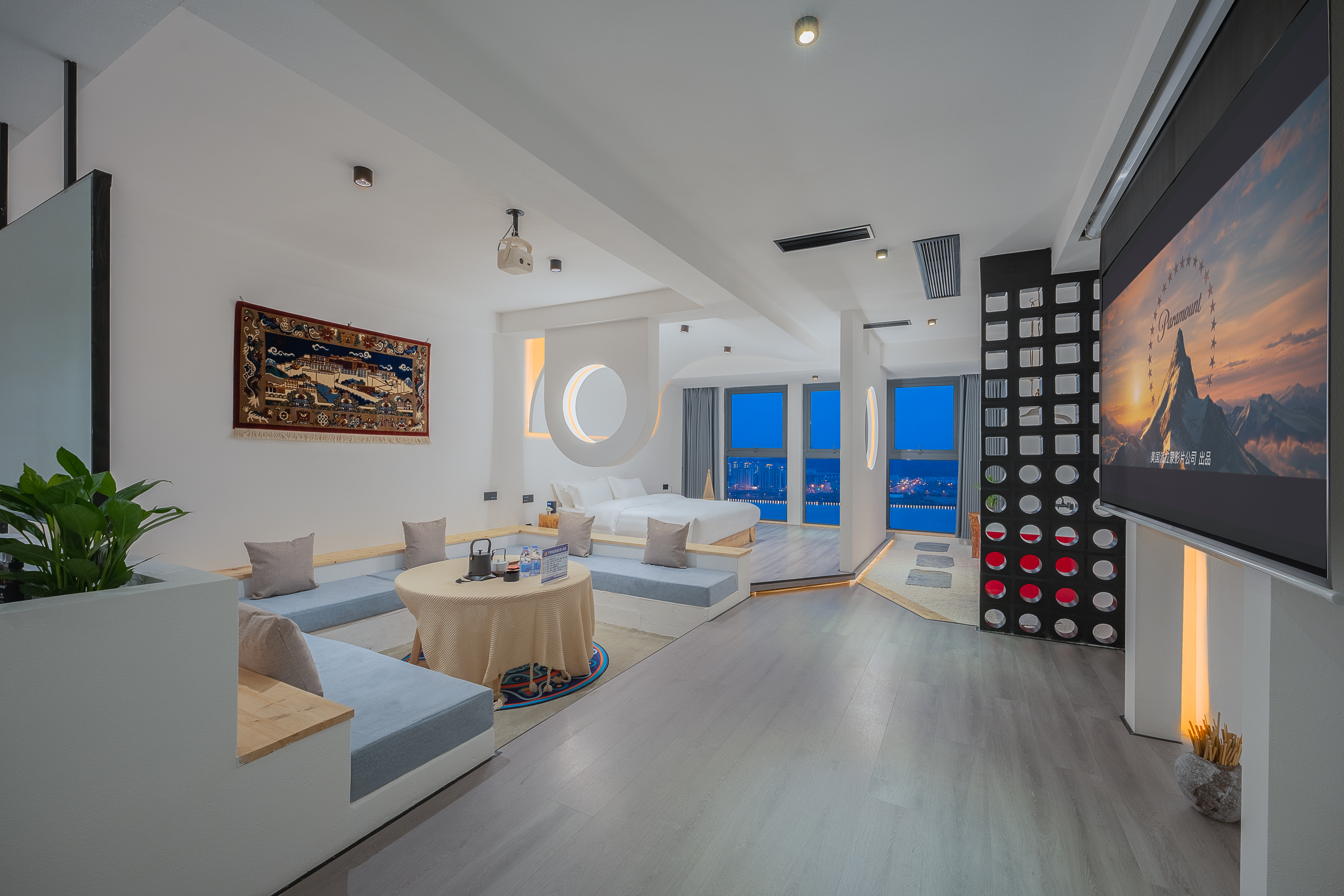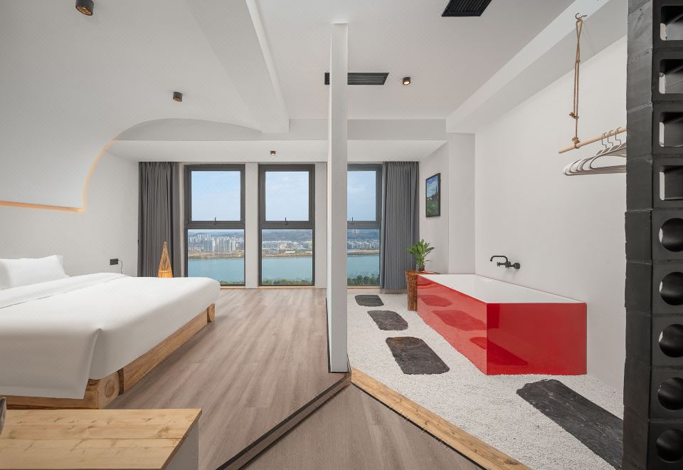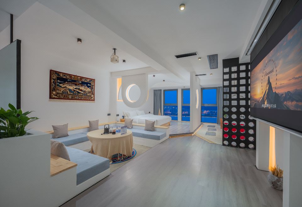 遐观·全景泡池江景投影套房【人体力学床垫+冰箱】