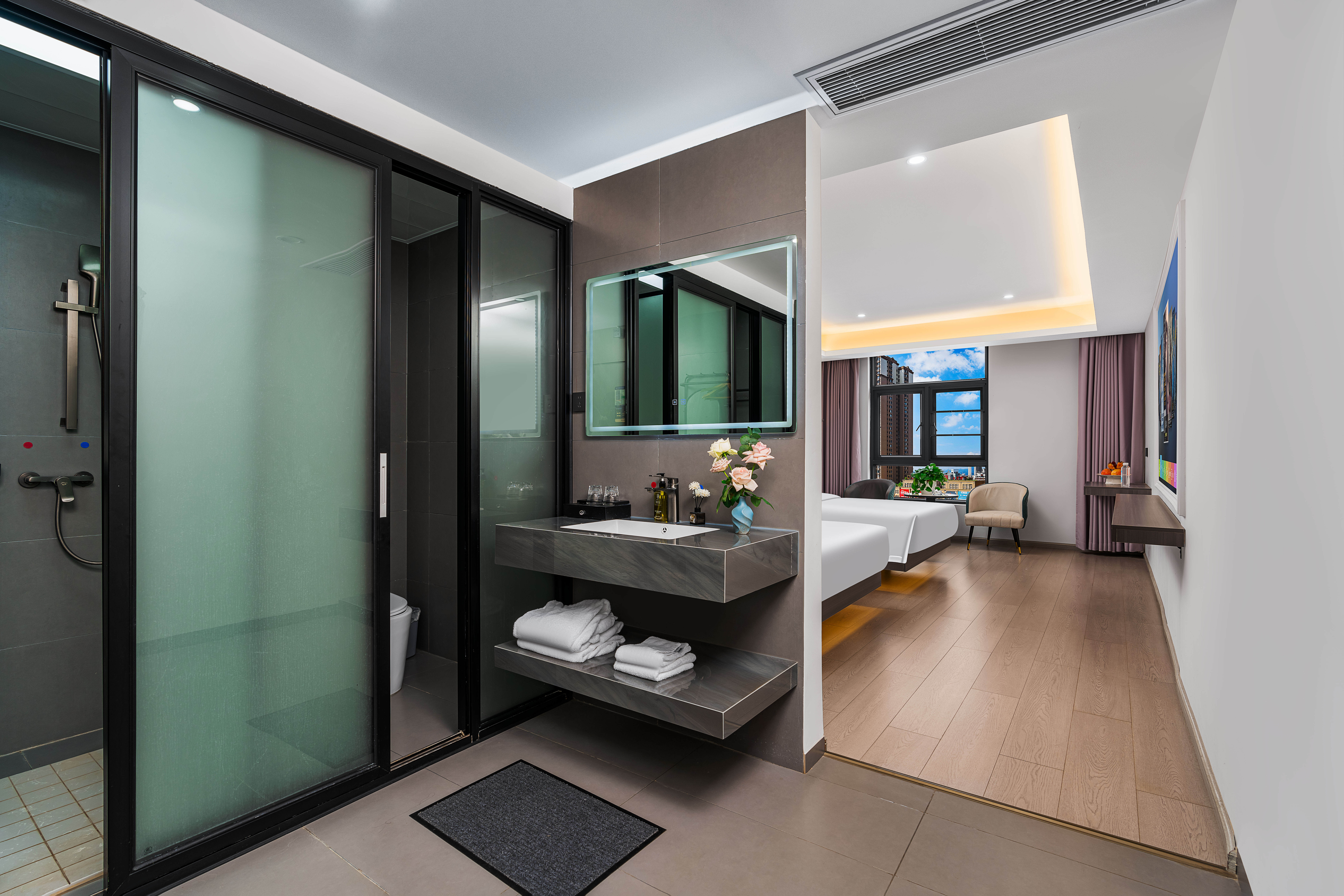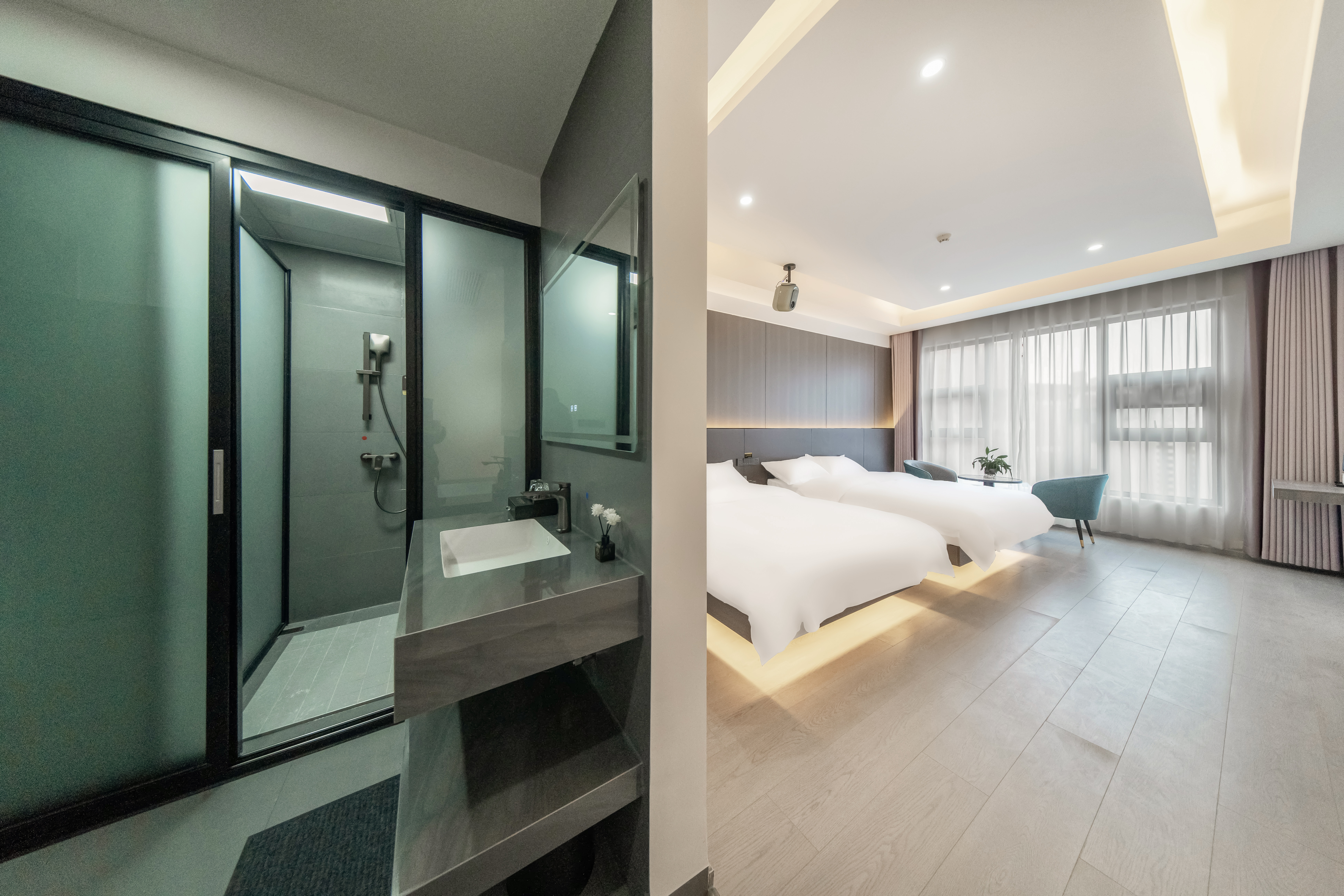 海悦豪华影视双床房「落地窗+双会员120寸+乾湿三分」
