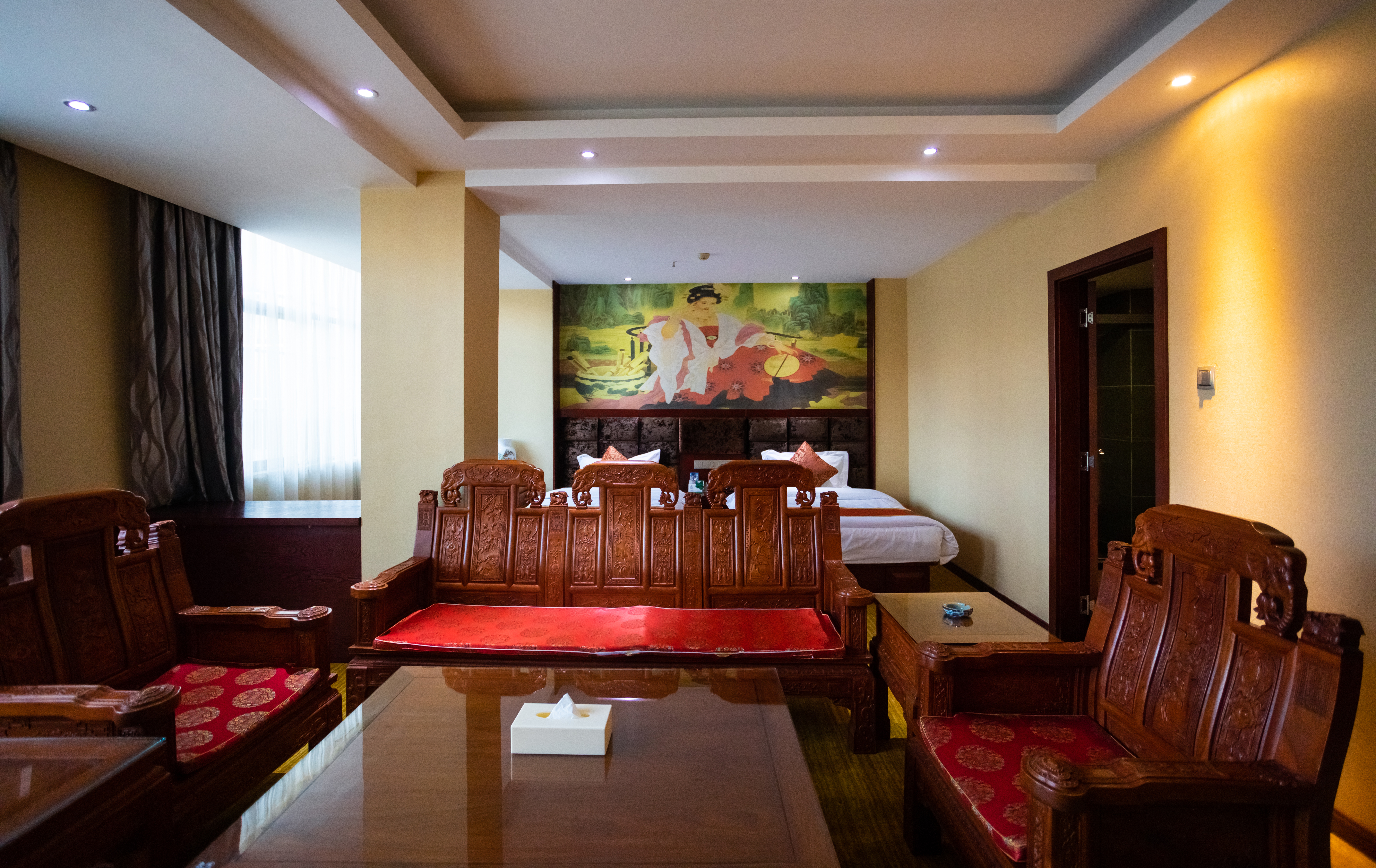 国风实木豪华套房(会客茶台+花梨木家俱+金可儿床垫)