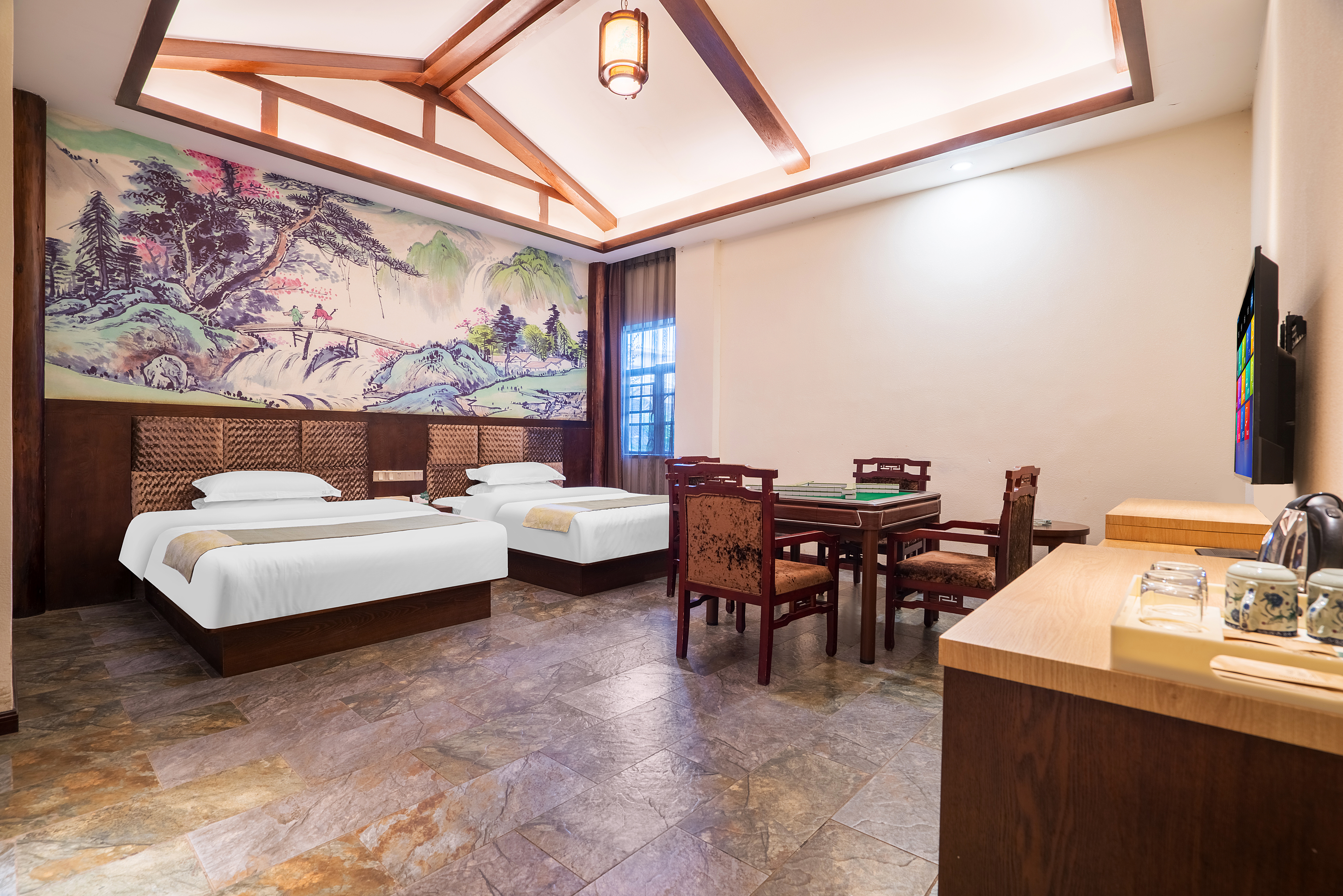 财神驾到棋牌双床房(棋牌娱乐+聚会桌椅)