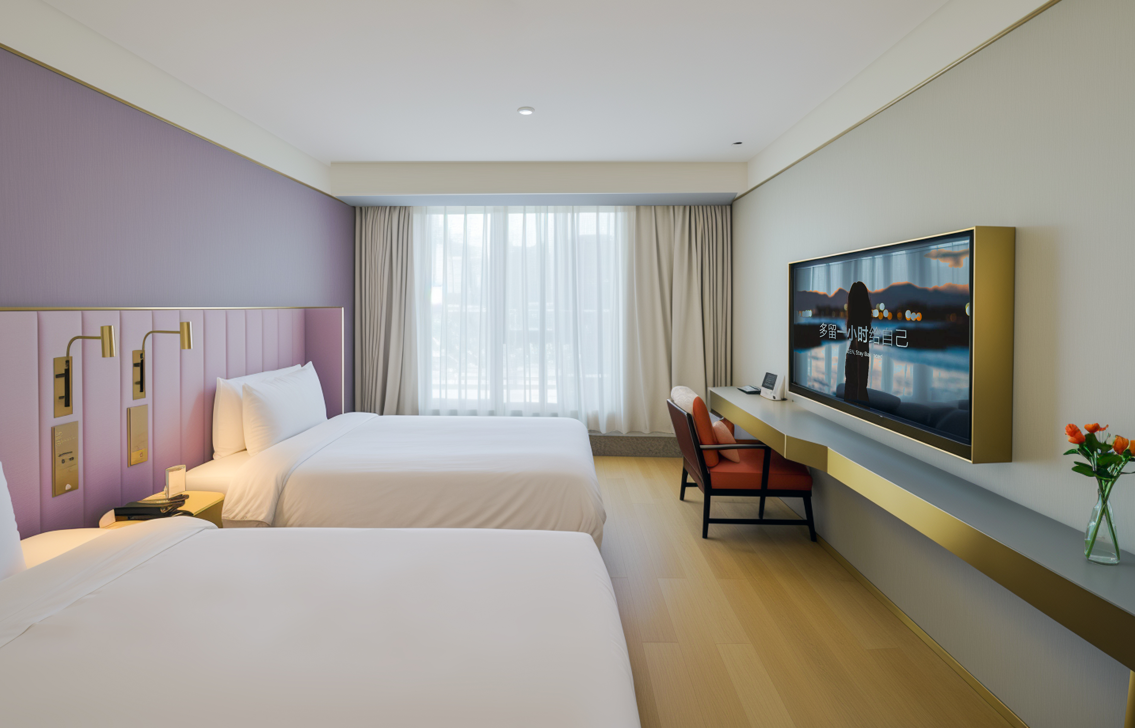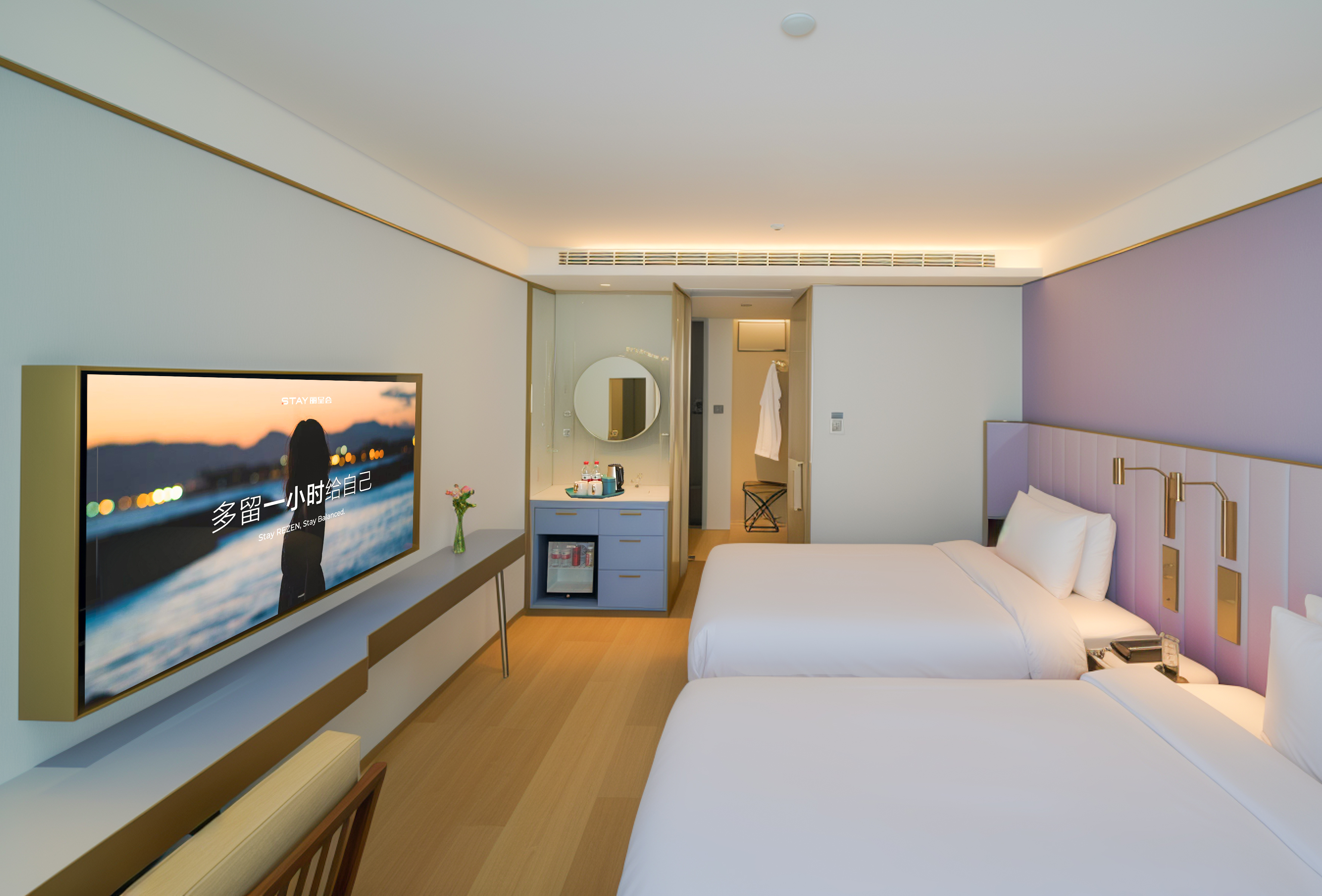 高级氧吧双床房~亲肤床品·薰衣草香氛洗护·智控