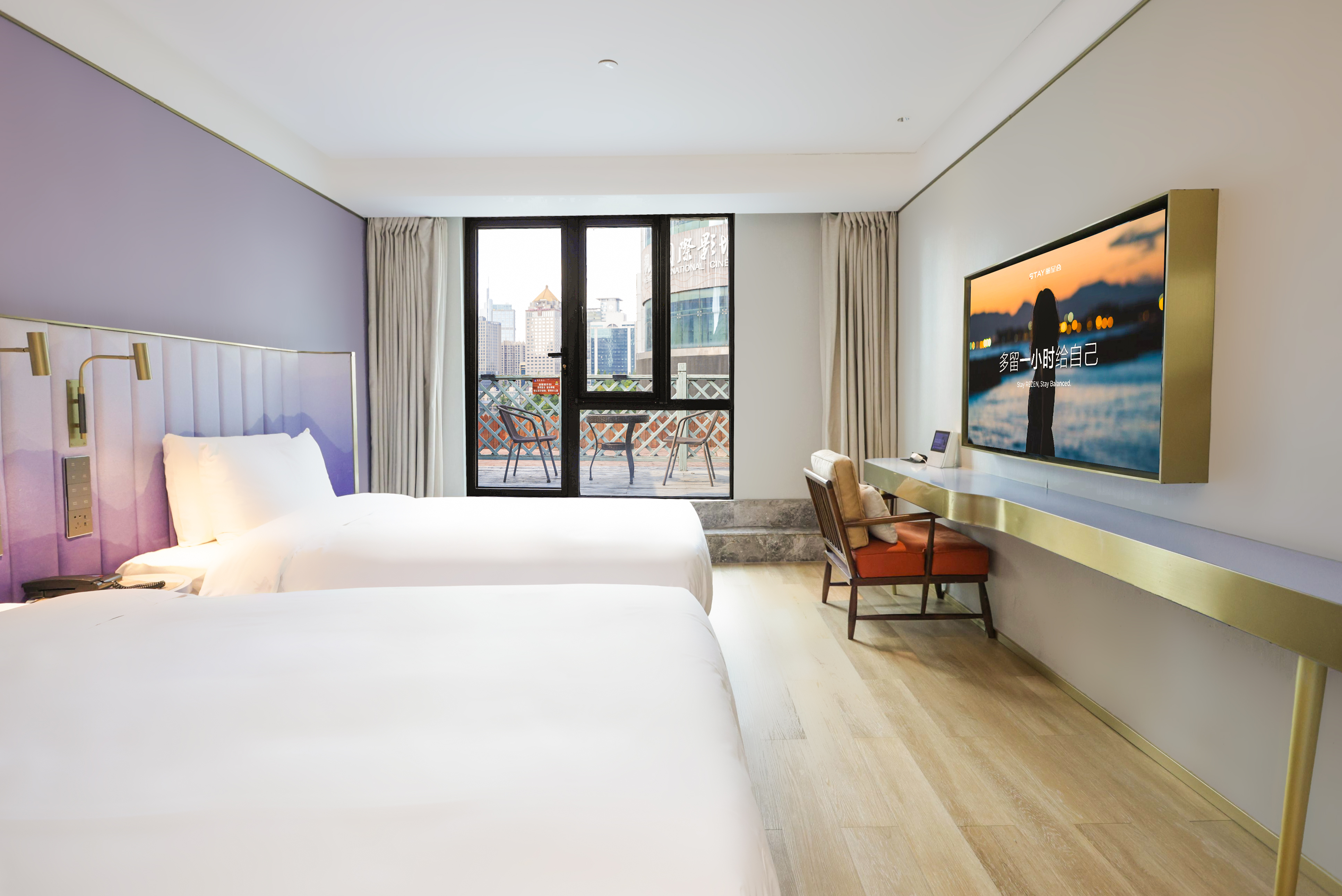 露台氧吧双床房~亲肤床品·智能声控·独立阳台
