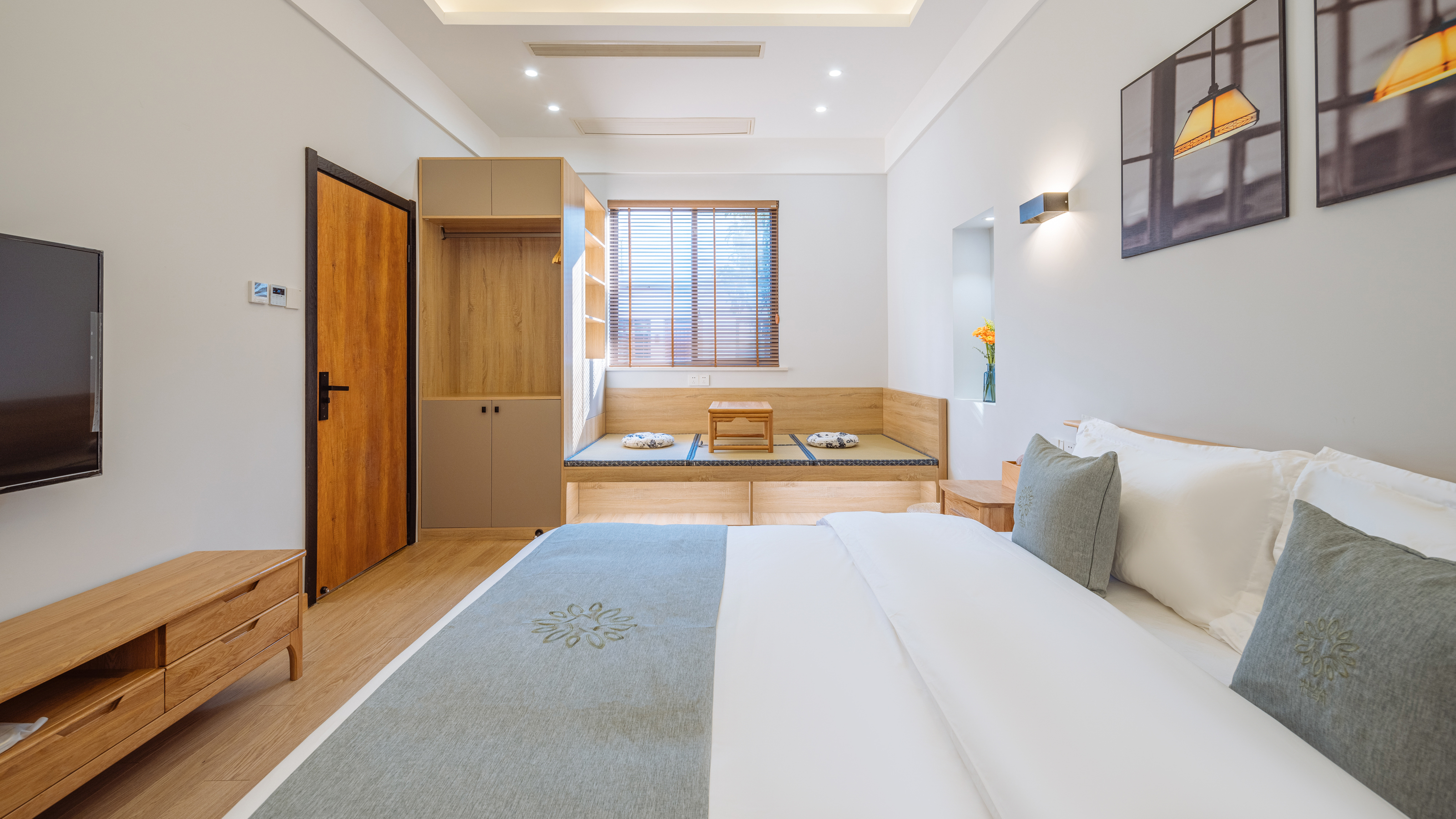 九麦西东大床房【地暖+私汤温泉+榻榻米+庭院景色】