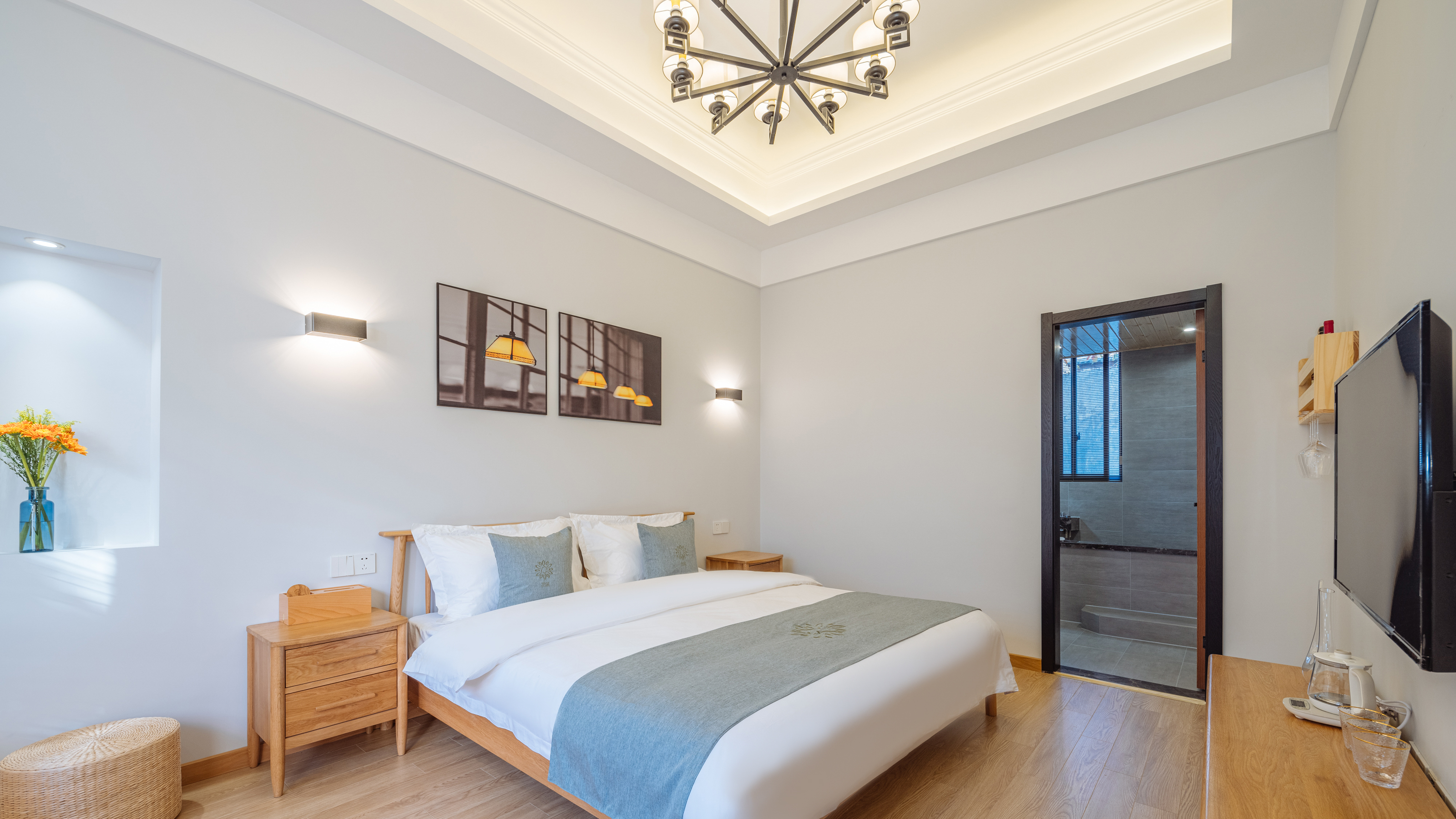 九麦未央大床房【地暖+私汤温泉+庭院景色】