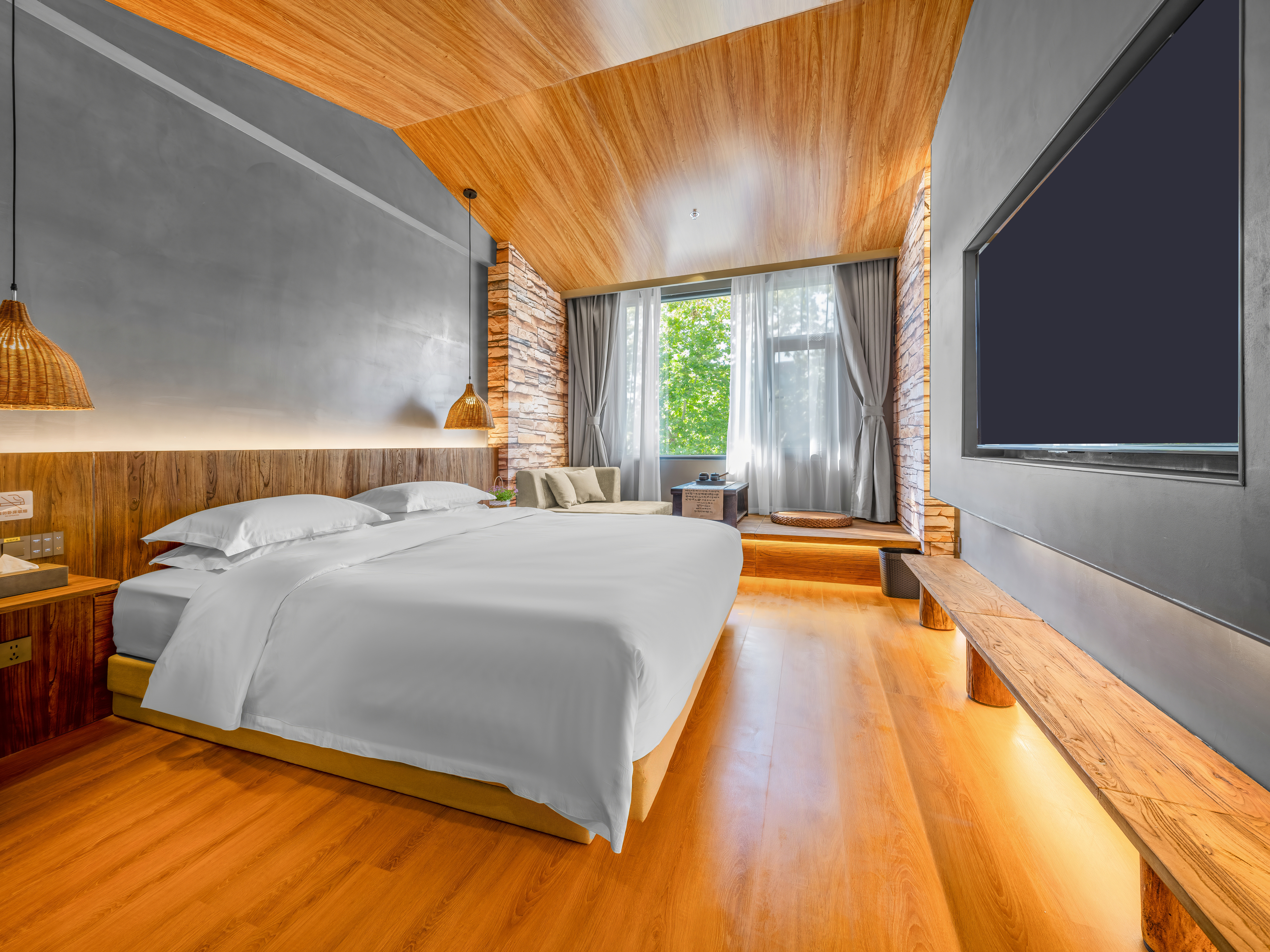 禅宁·原木风大床房(地暖+75寸高清投屏VIP会员观影)