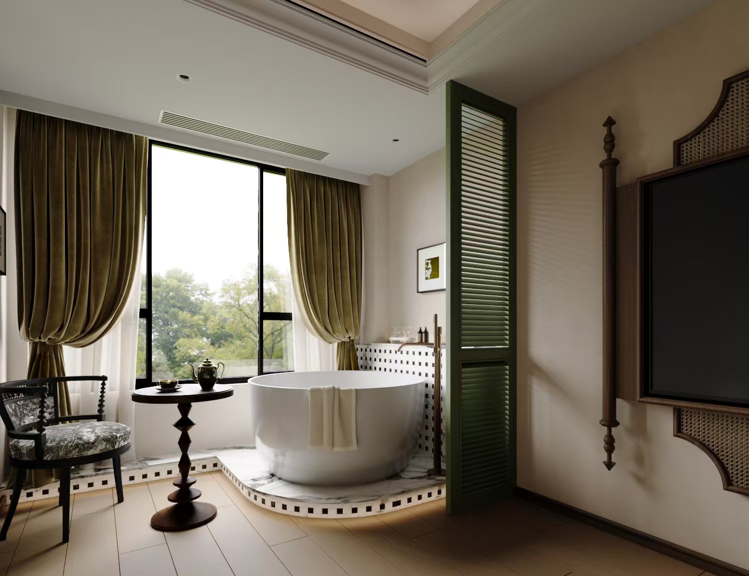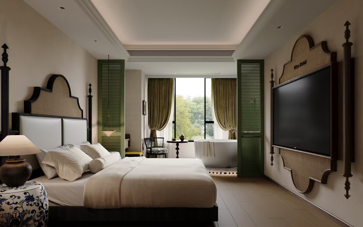 南洋浴缸「鹅绒被丨大桶水茶吧机丨投屏电视丨梳粧台」