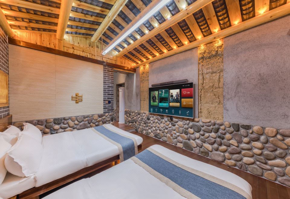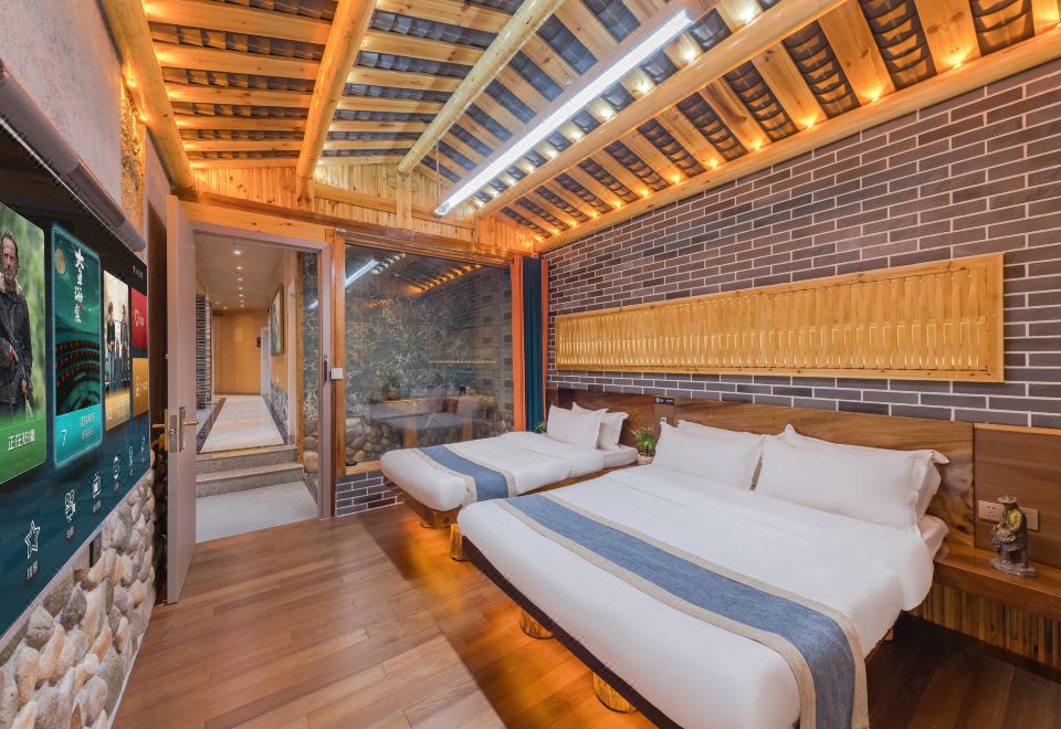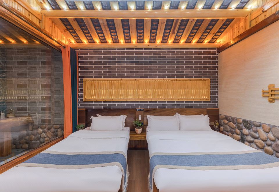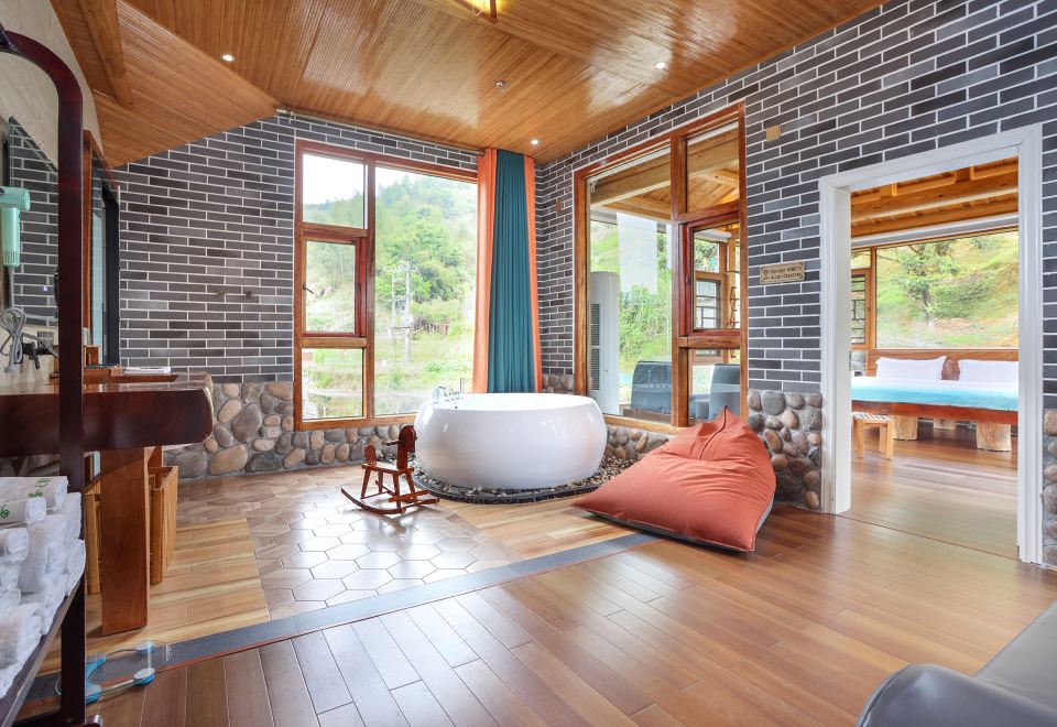 黄旦·亲子房(冲浪按摩浴缸·红木大板床·清新茶香·土楼风格)