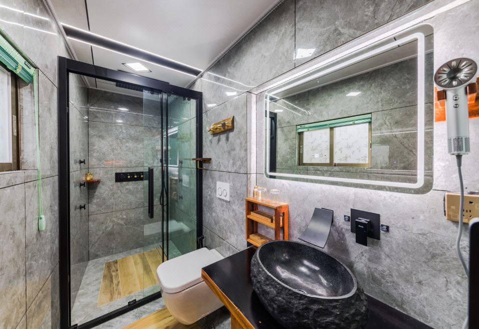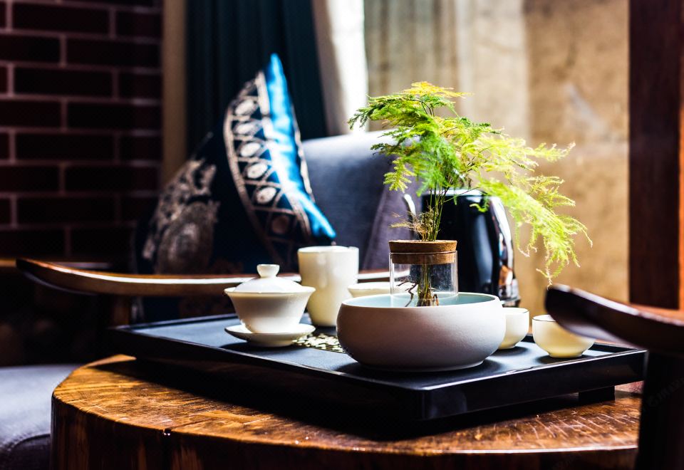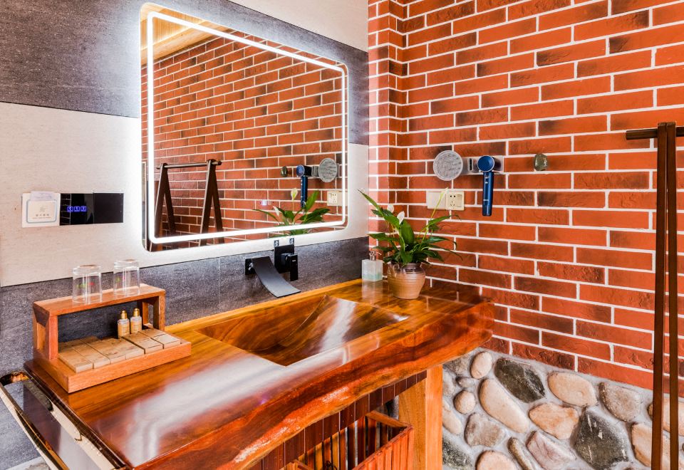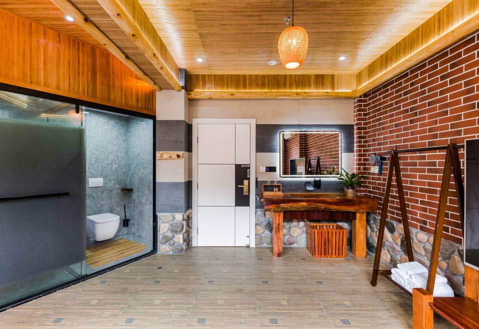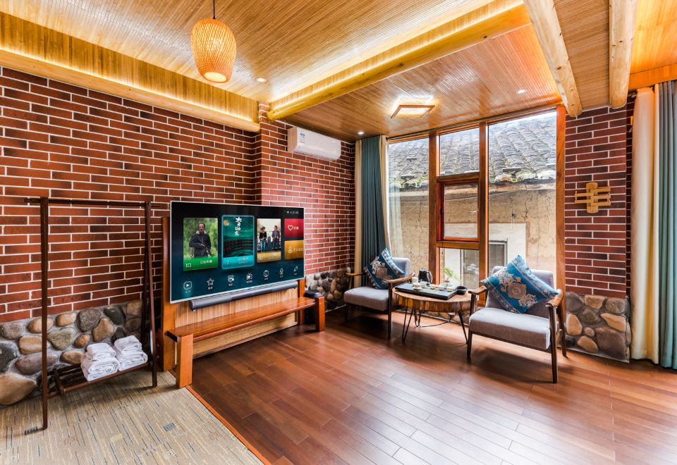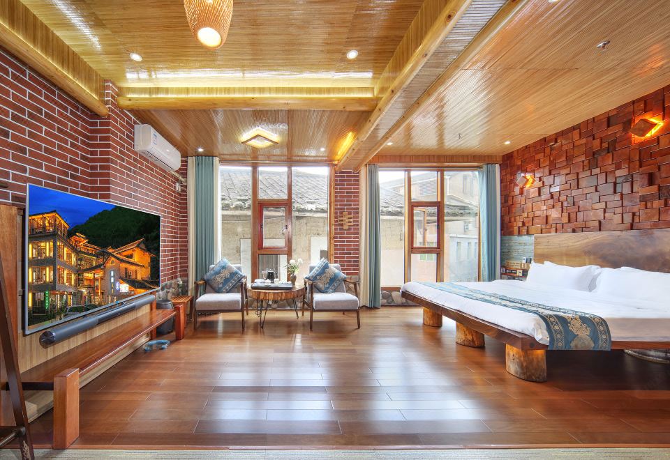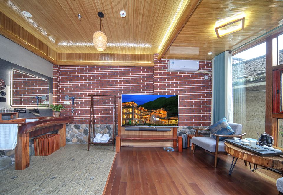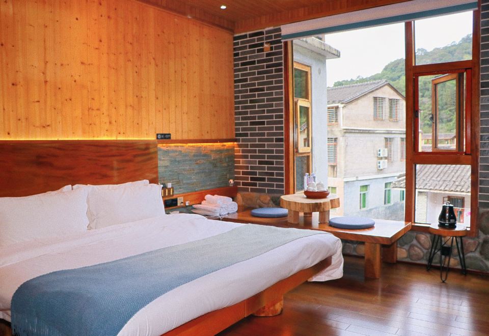 梅占·大床房(按摩淋浴·红木大板床·清新茶香·70寸4k超级电视·土墙青瓦风景)