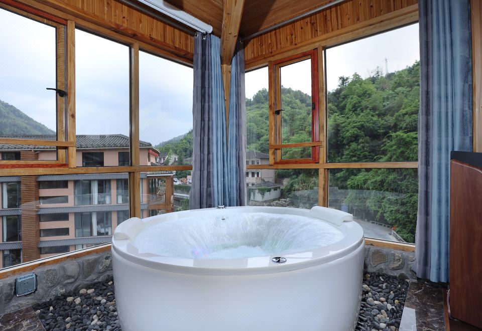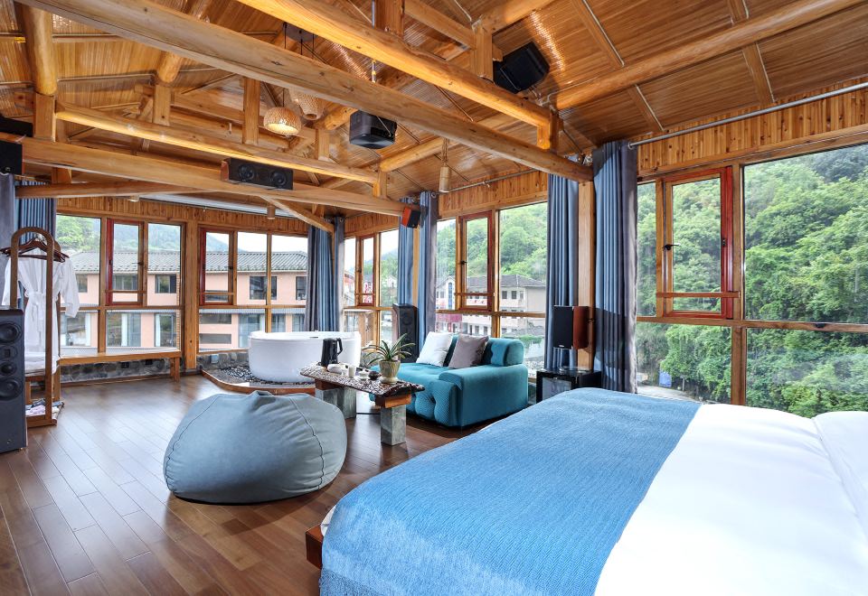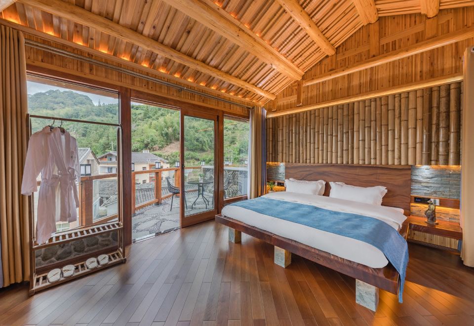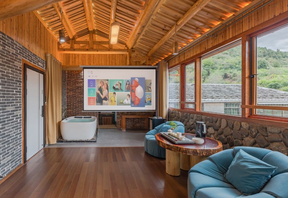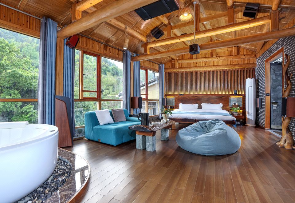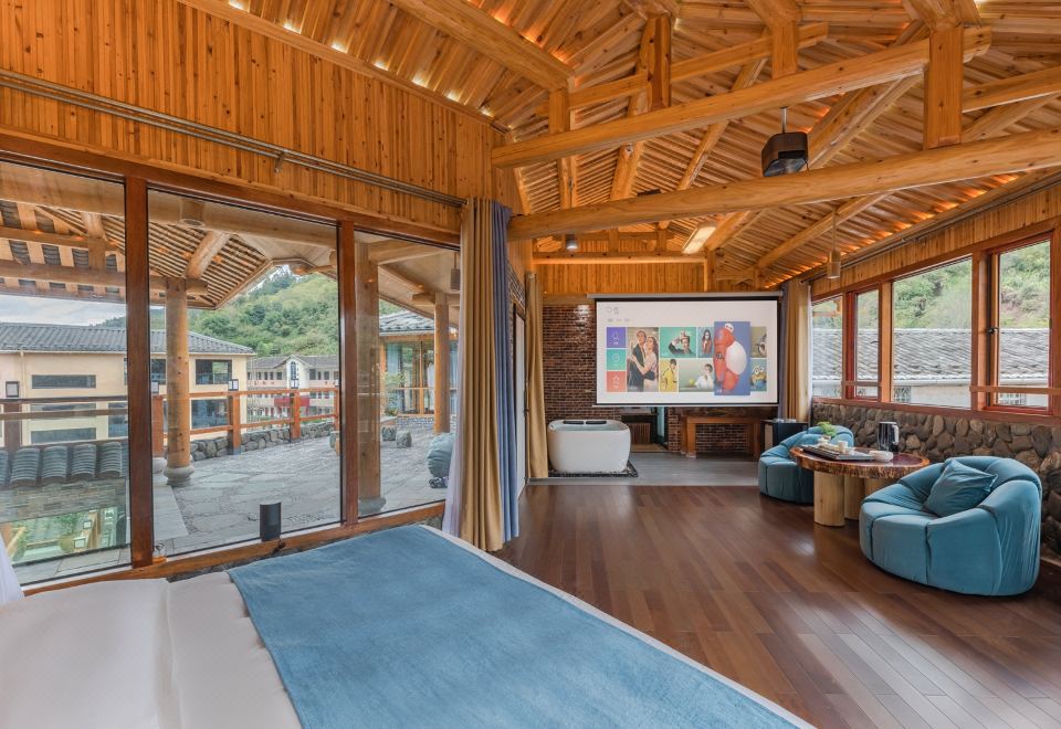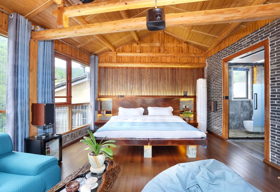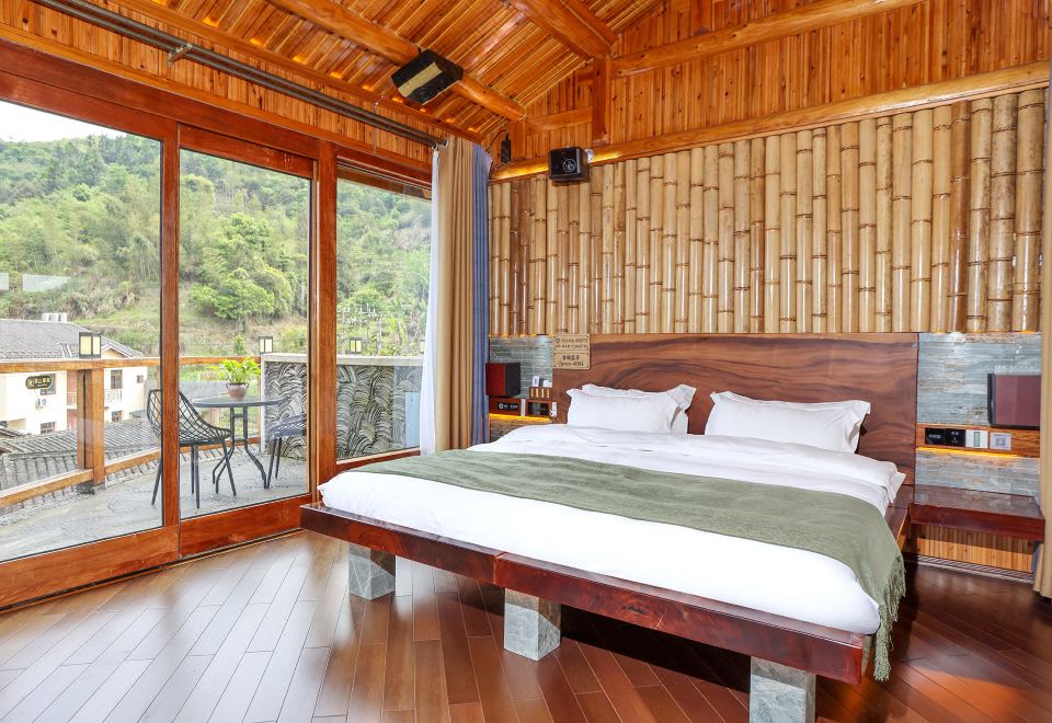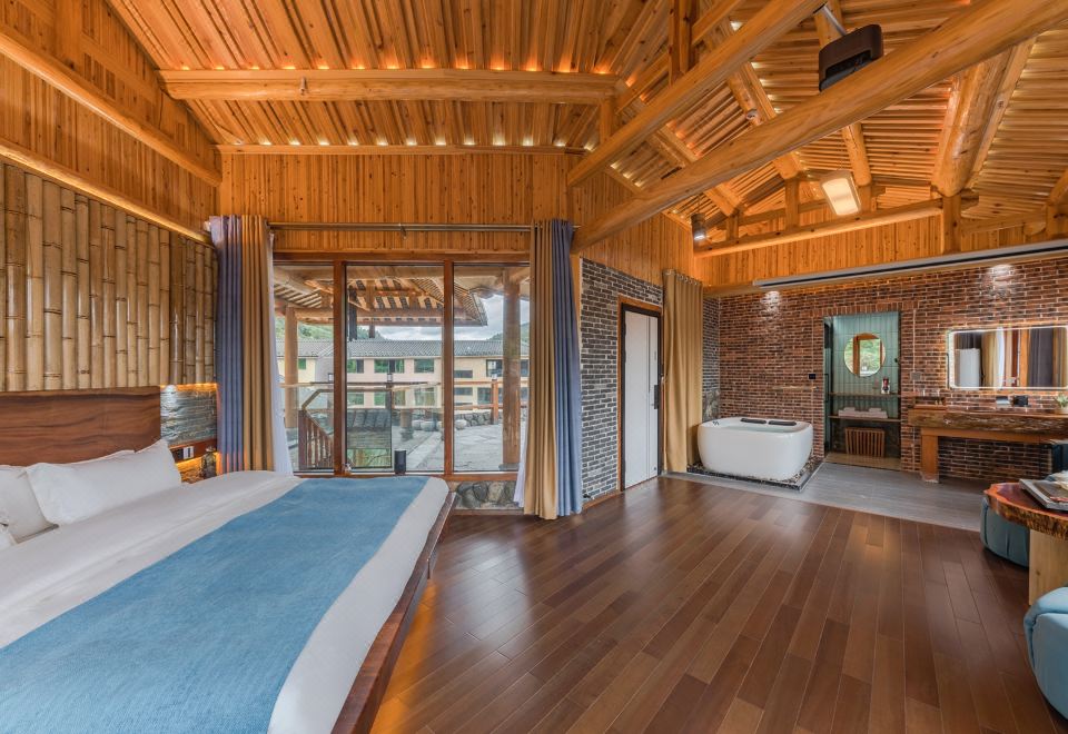 红美人·大床房(全景声影音系统·独立露台·红木大板床·清新茶香·冲浪按摩浴缸)