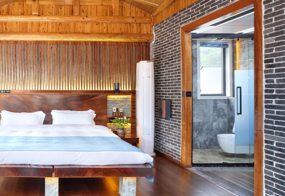 铁观音·大床房(全景声影音系统·红木大板床·瀑布按摩浴缸·清新茶香·超爽淋浴)