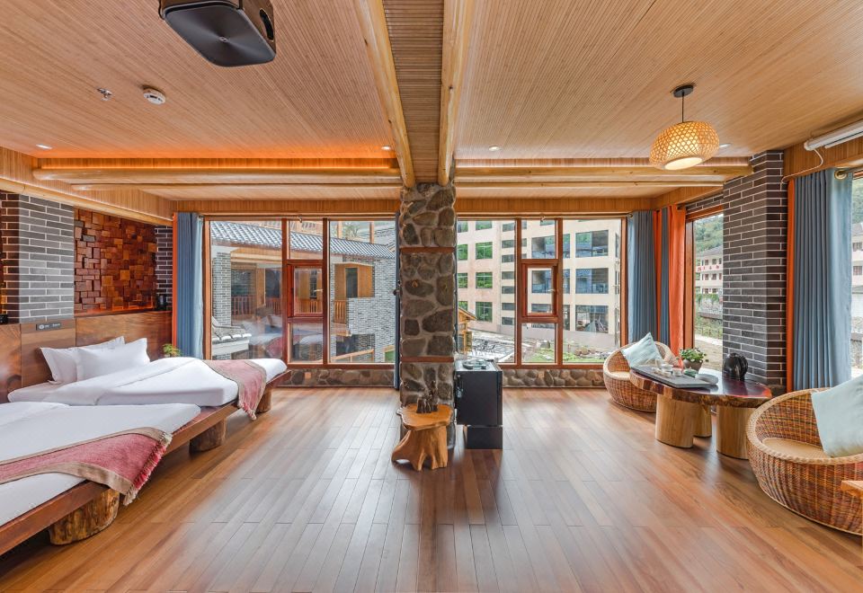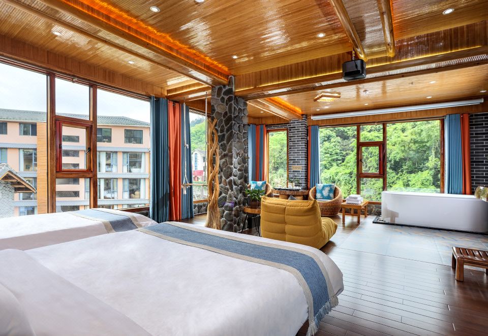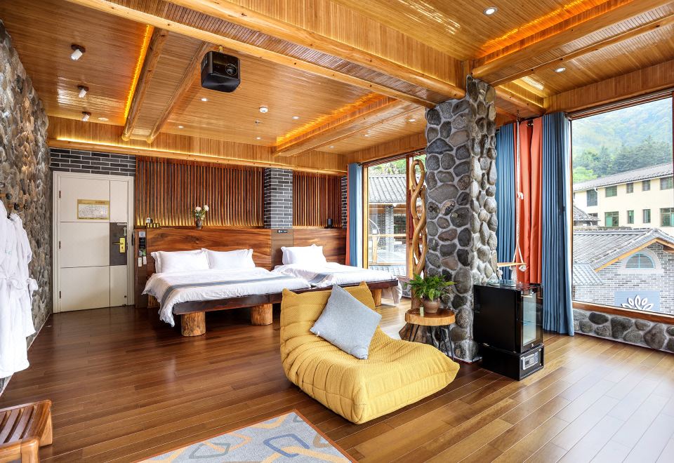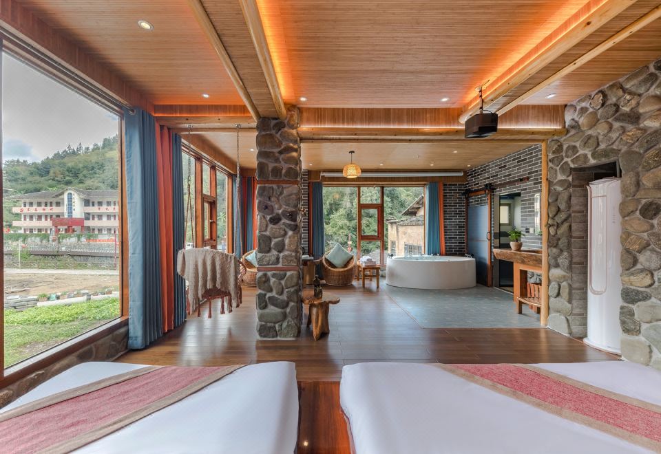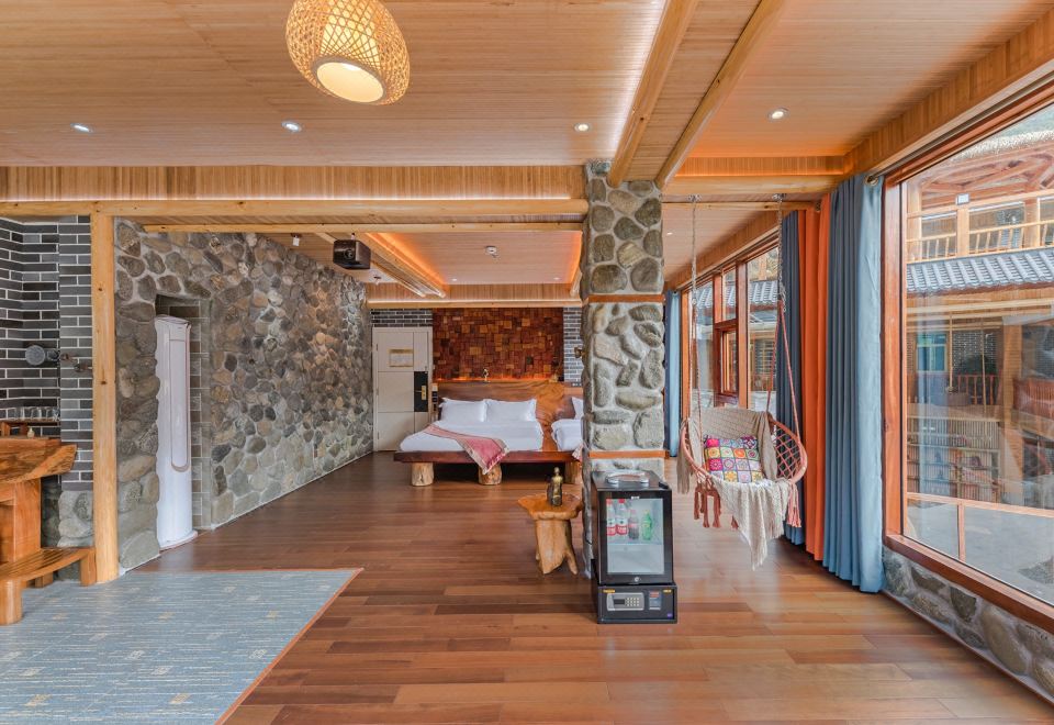 肉桂·秋千亲子房(特大红木大板床·瀑布按摩浴缸·150寸大投影·清新茶香)