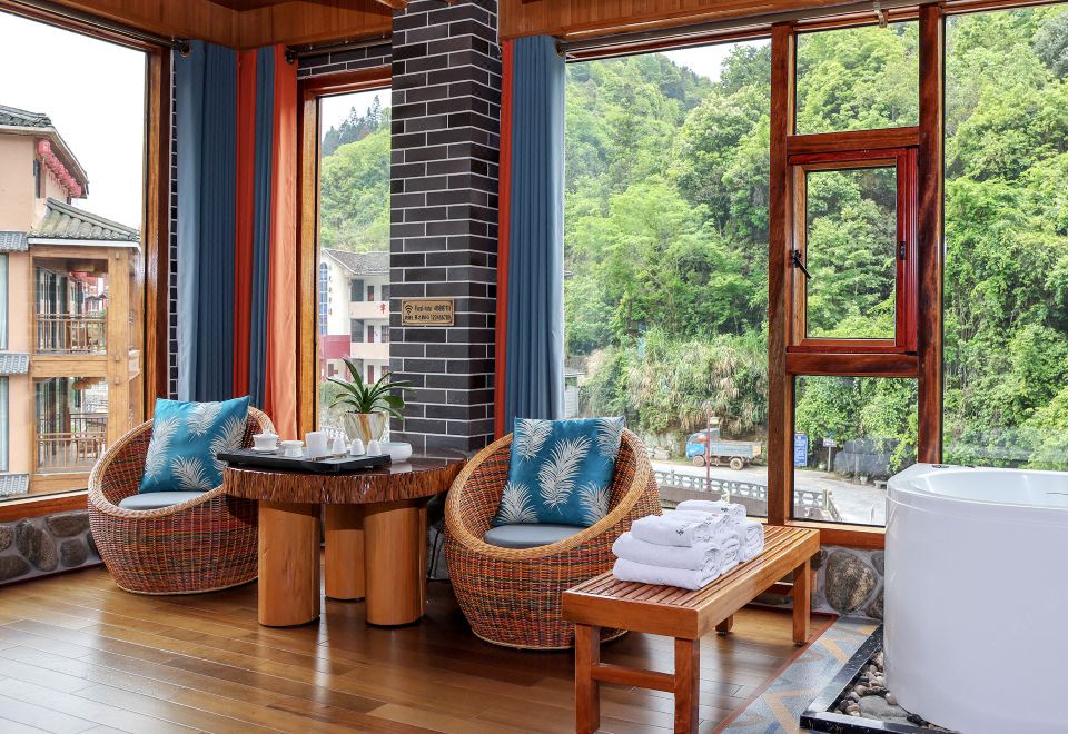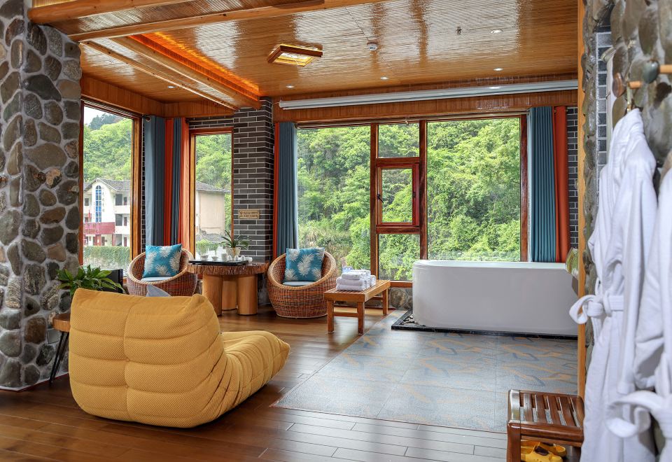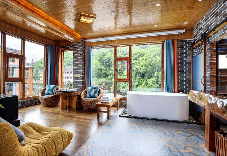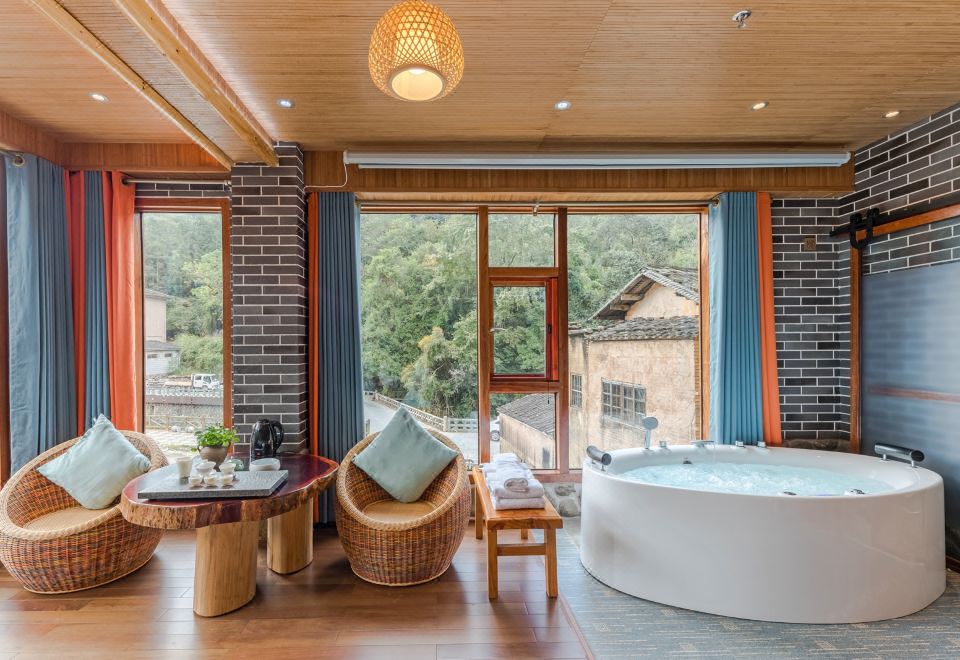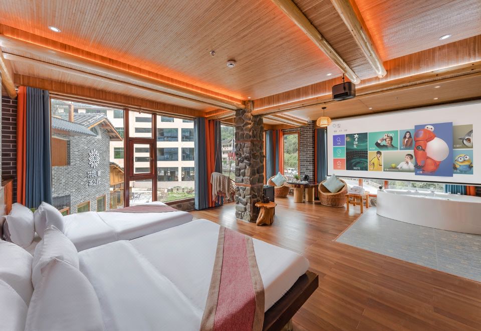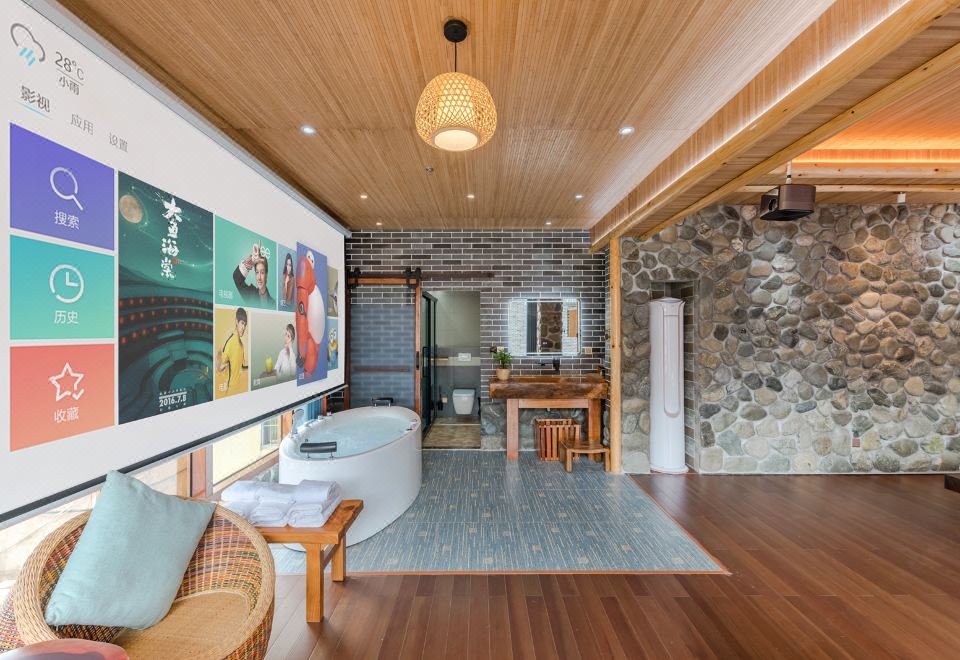 水仙·吊篮亲子房(特大红木大板床·按摩浴缸·150寸大投影·清新茶香)