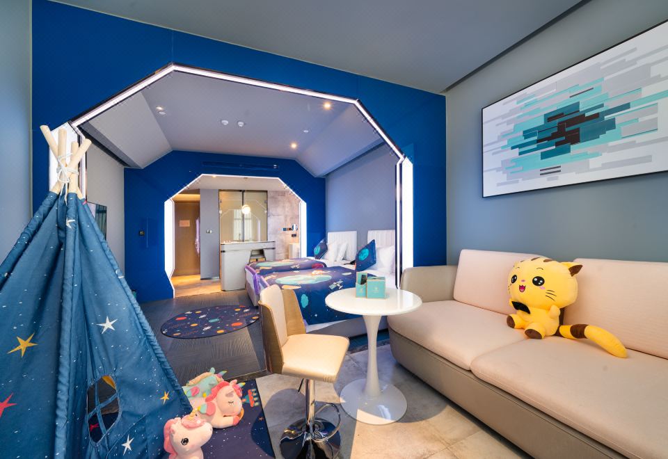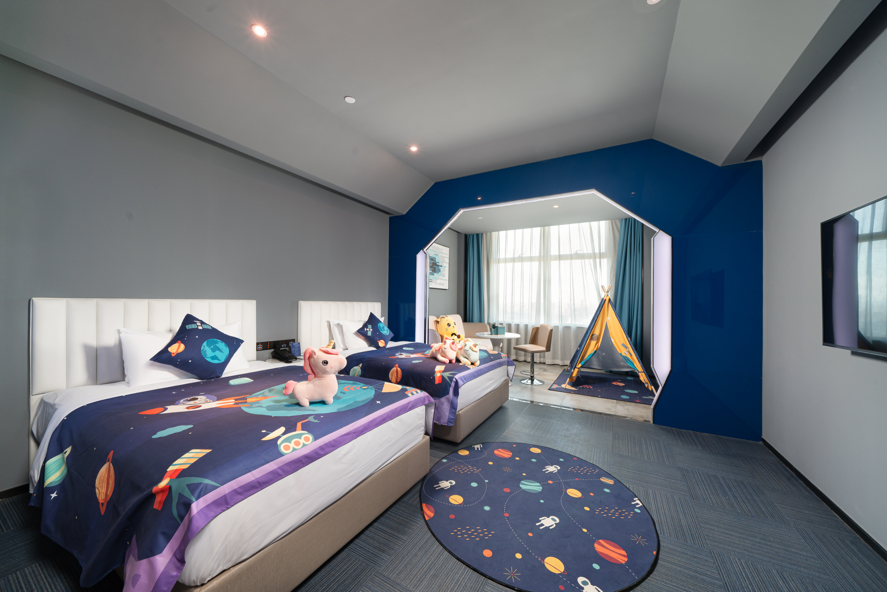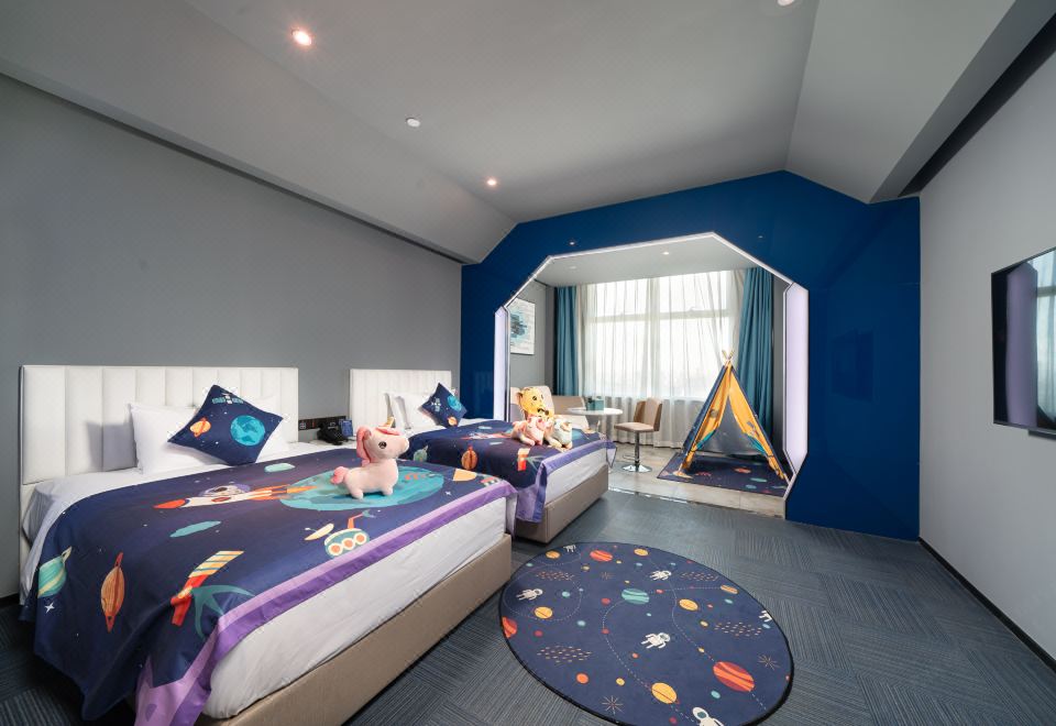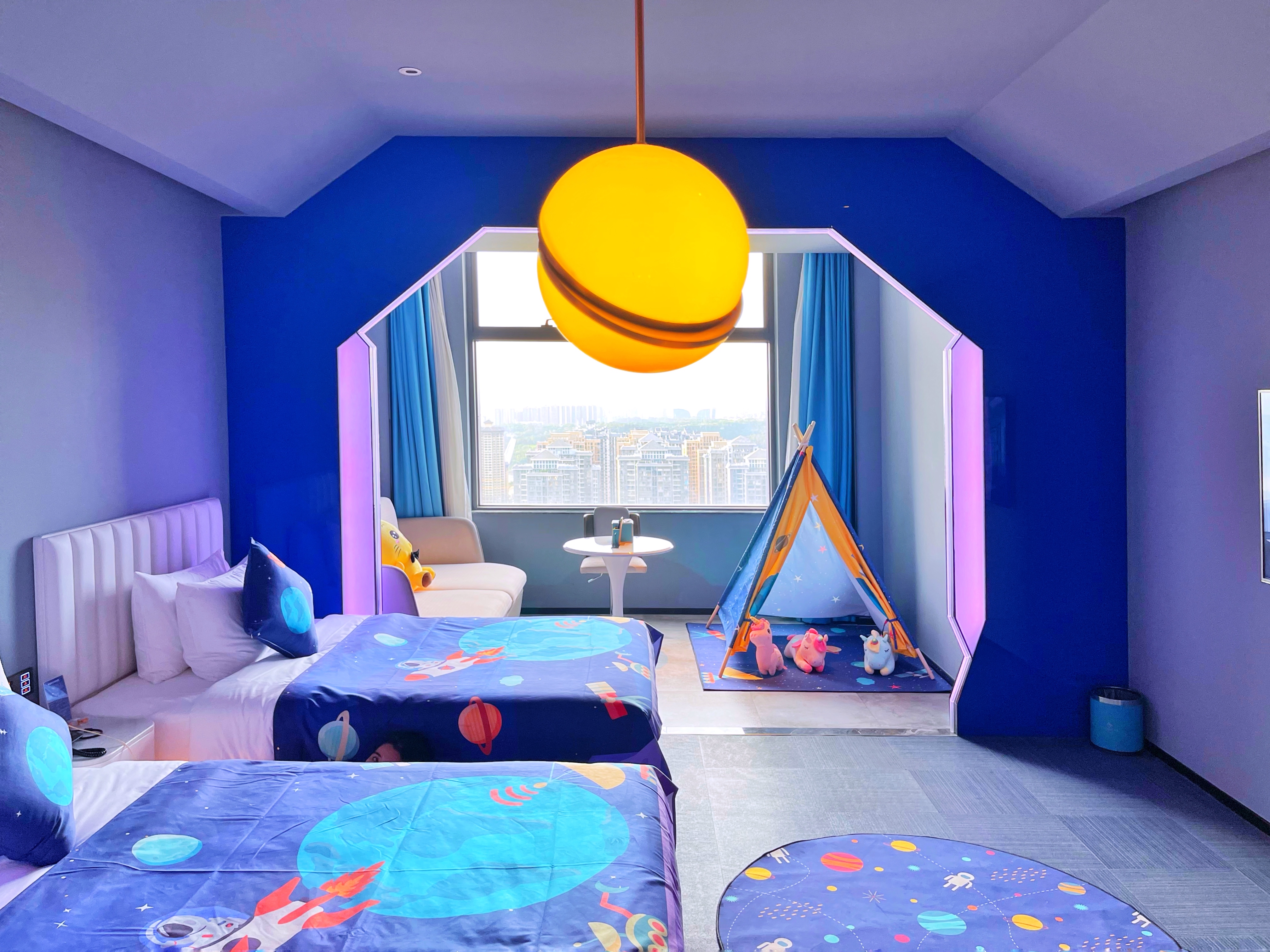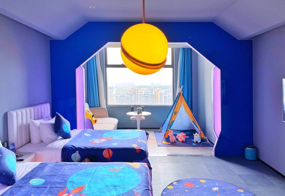 Cartoon Family Friendly Themed Children's Tent - City-View, Night View (2 Beds) (Window)