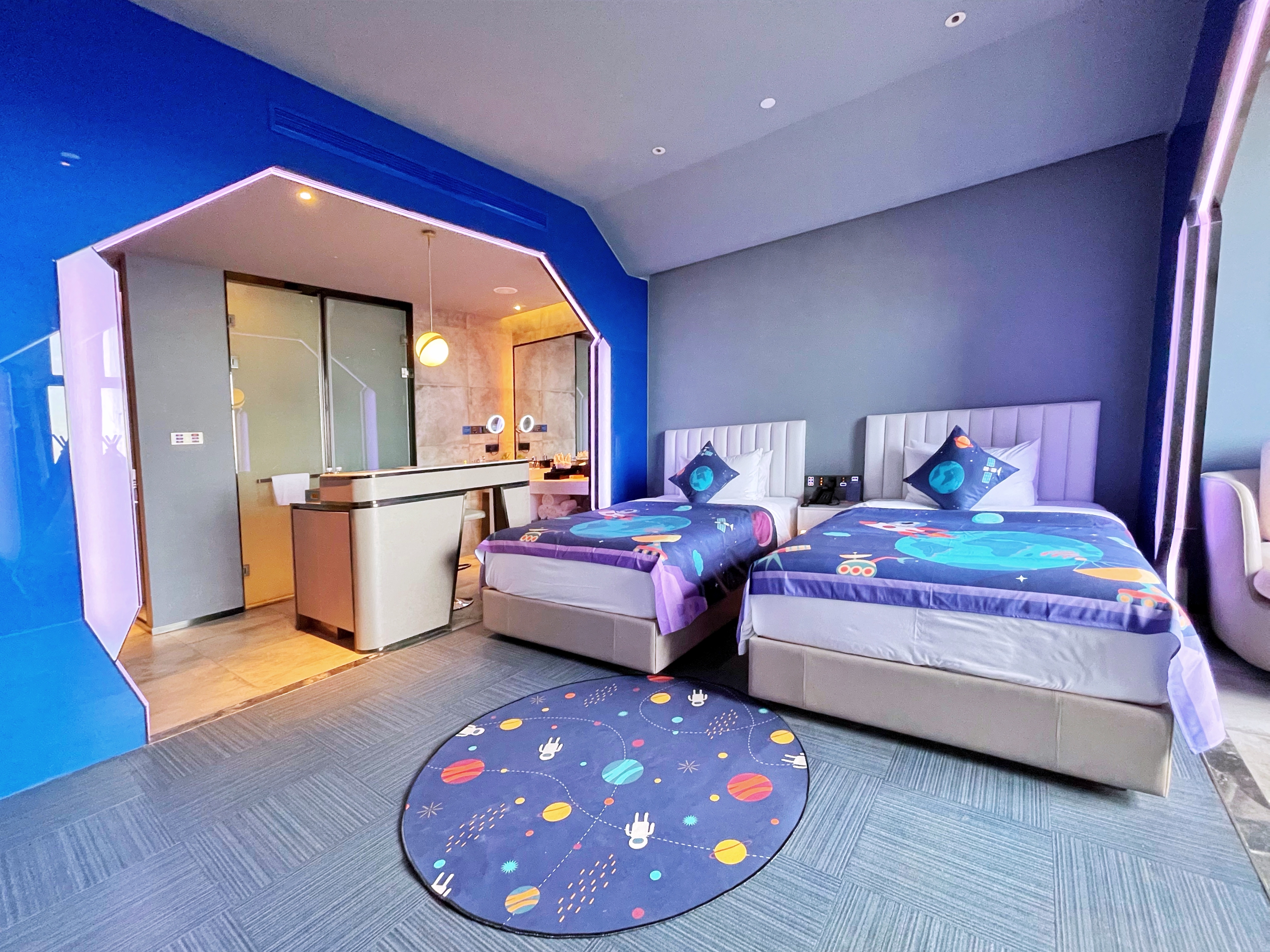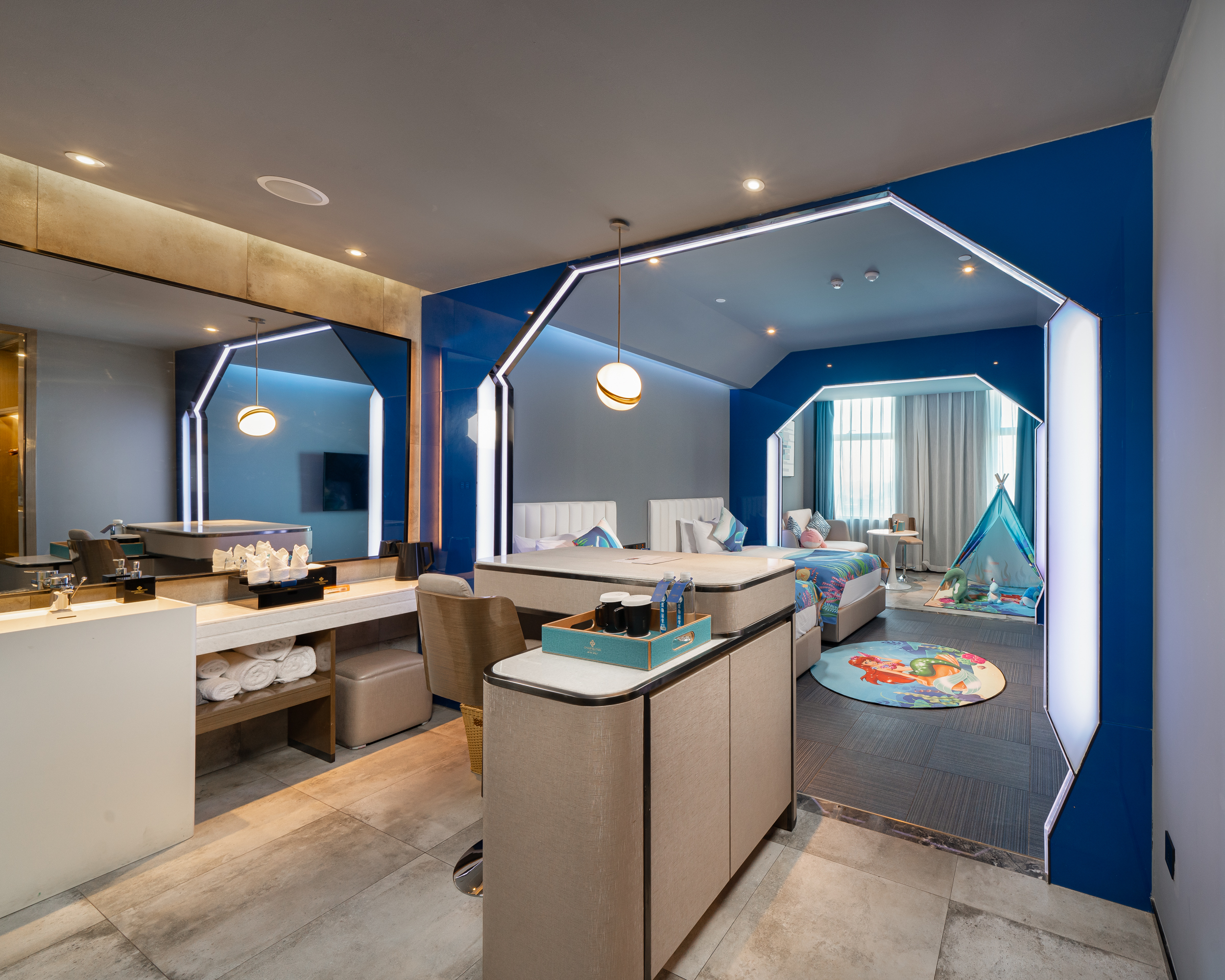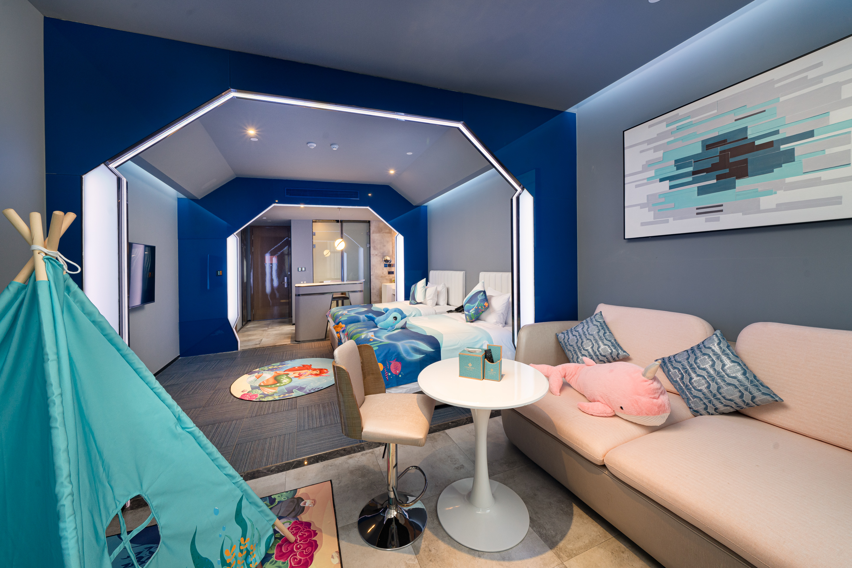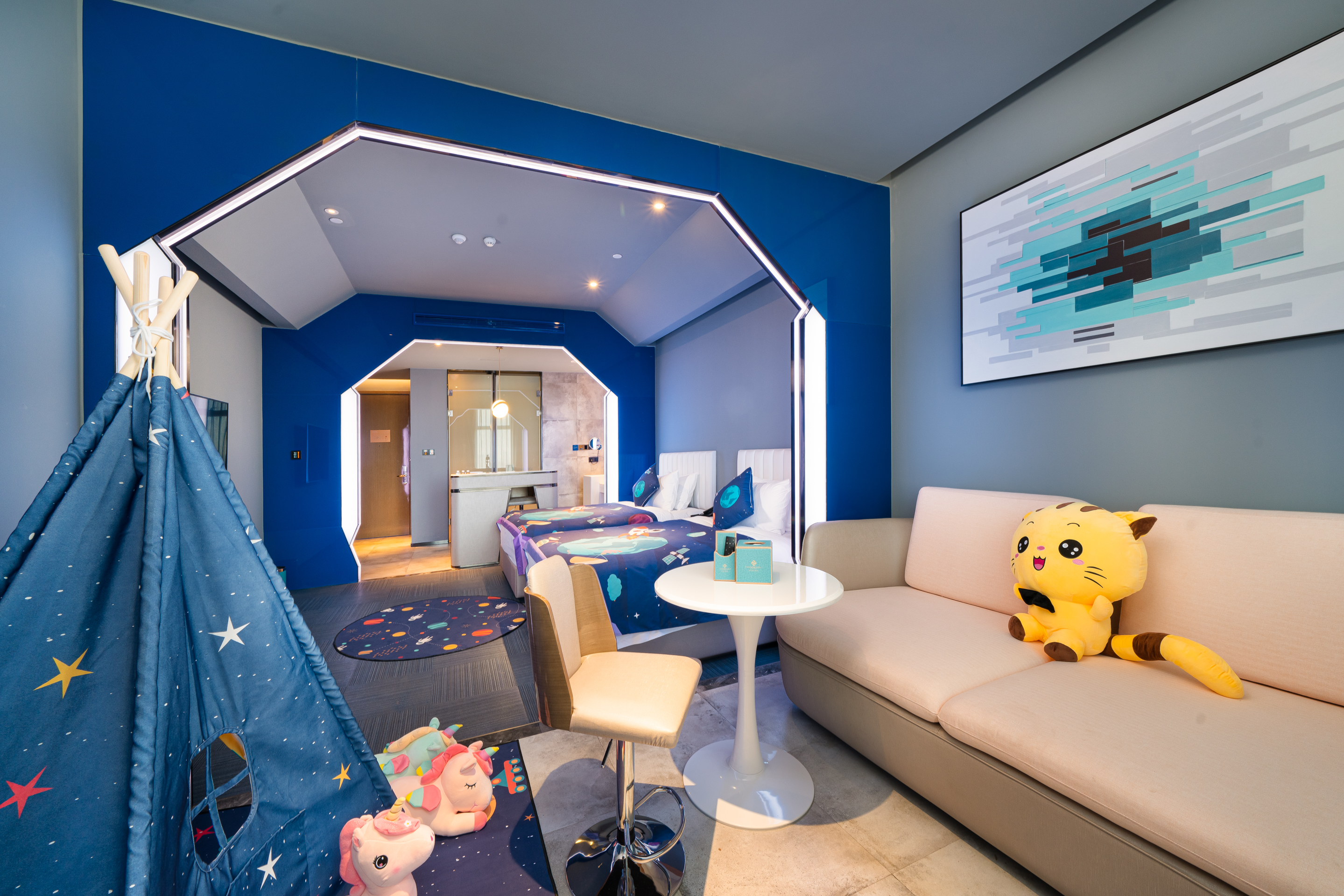Cartoon Family Friendly Themed Children's Tent - City-View, Night View (2 Beds) (Window)