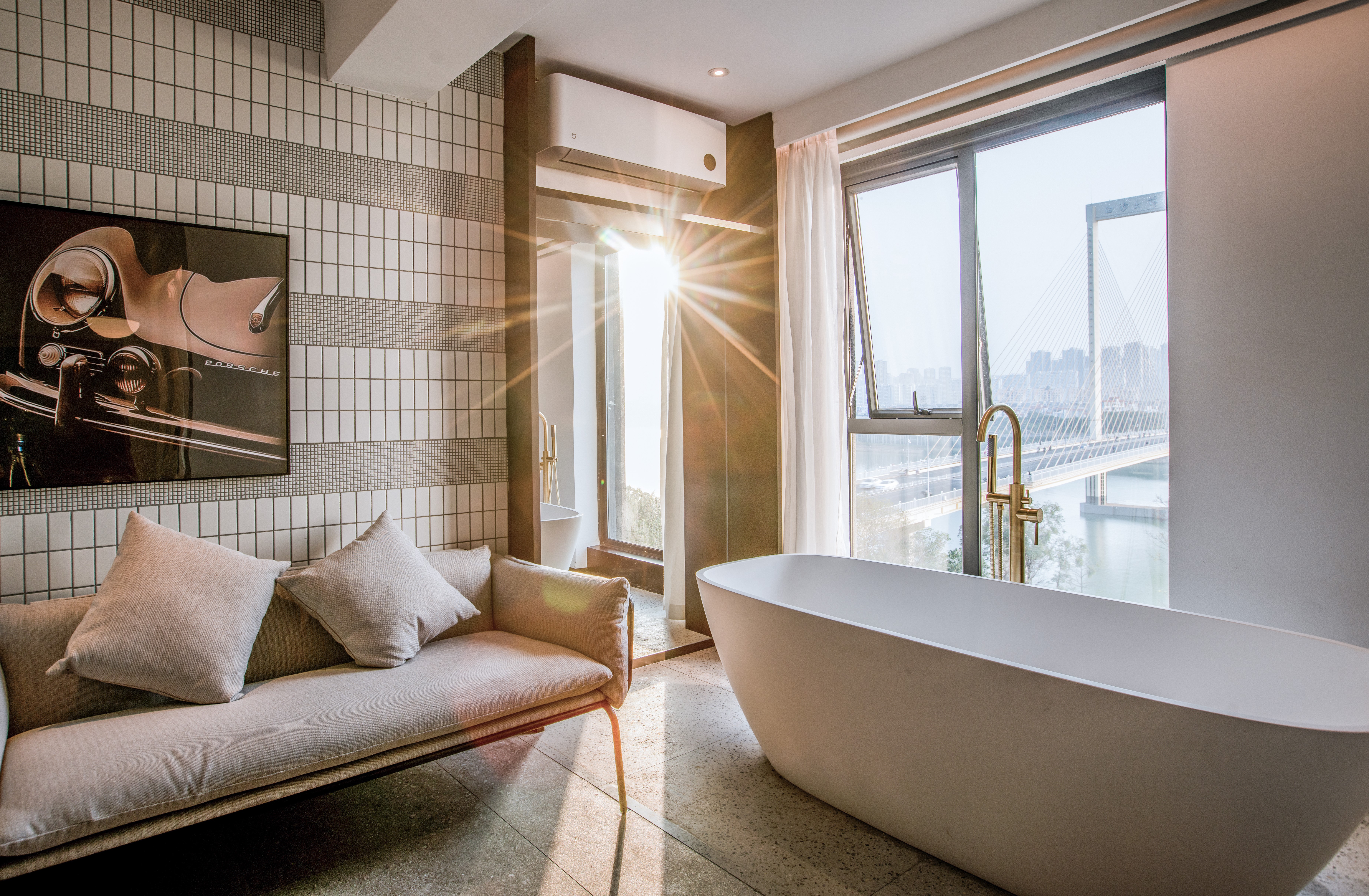 Deluxe River-View Double Bed Room With Bathtub, Exquisite Desk, And Constant Temperature Clothes Dryer (Yongcheng River-View)