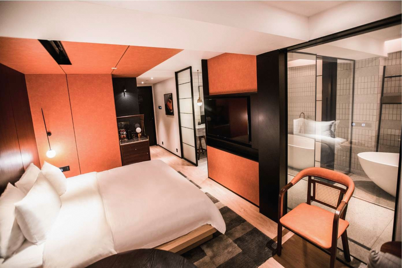 Deluxe Double Bed Room With Hermes Orange, Comfortable Bathtub, And Constant Temperature Clothes Dryer