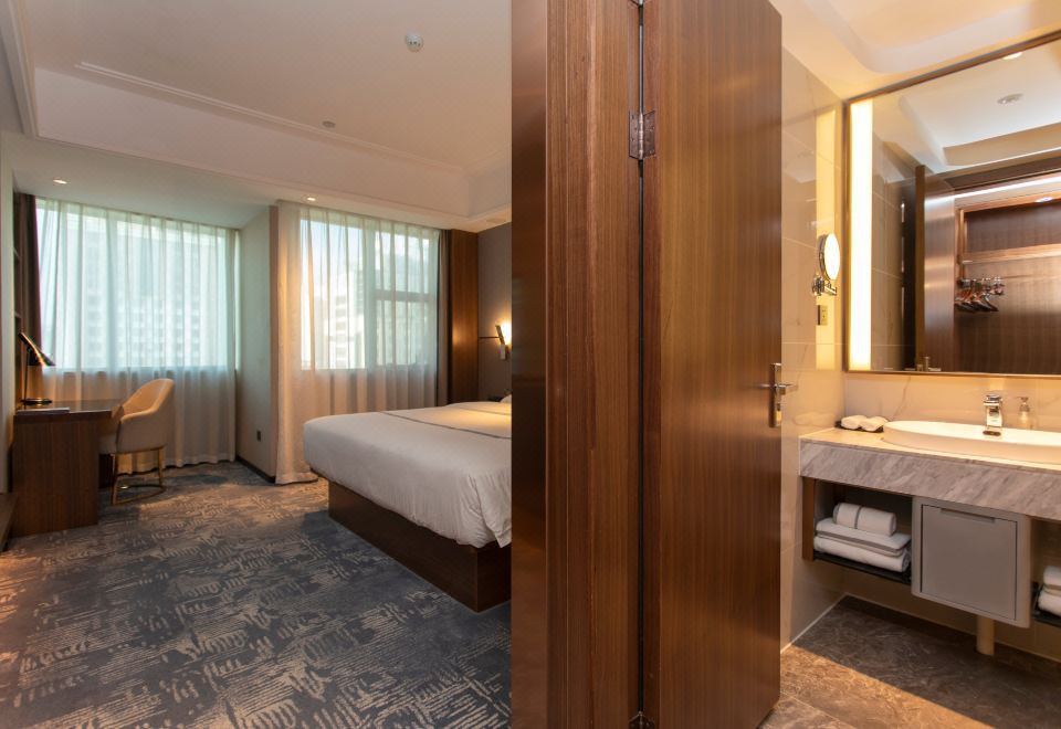 Scenic Double Bed Room With City View And Office Desk And Chair