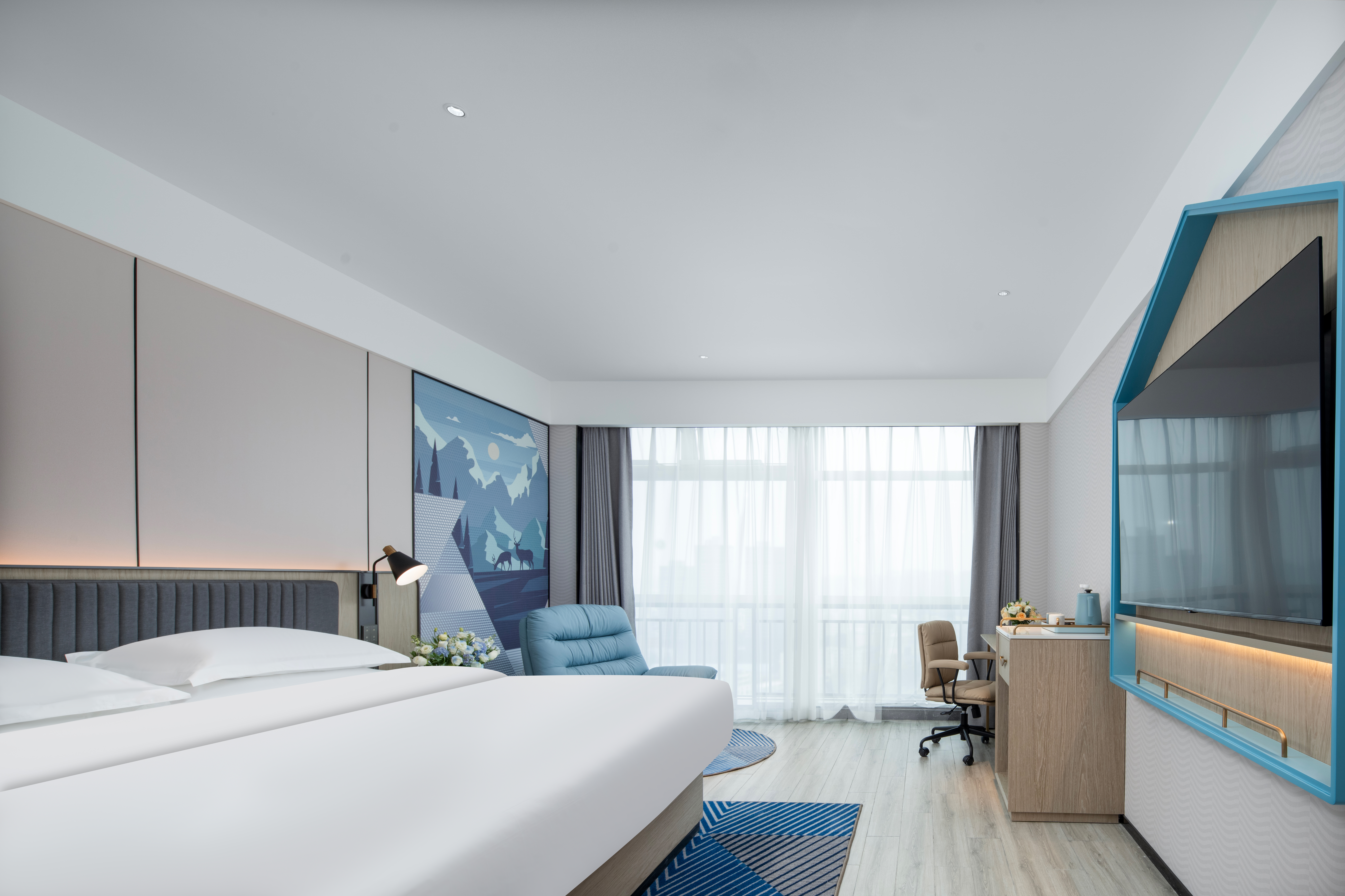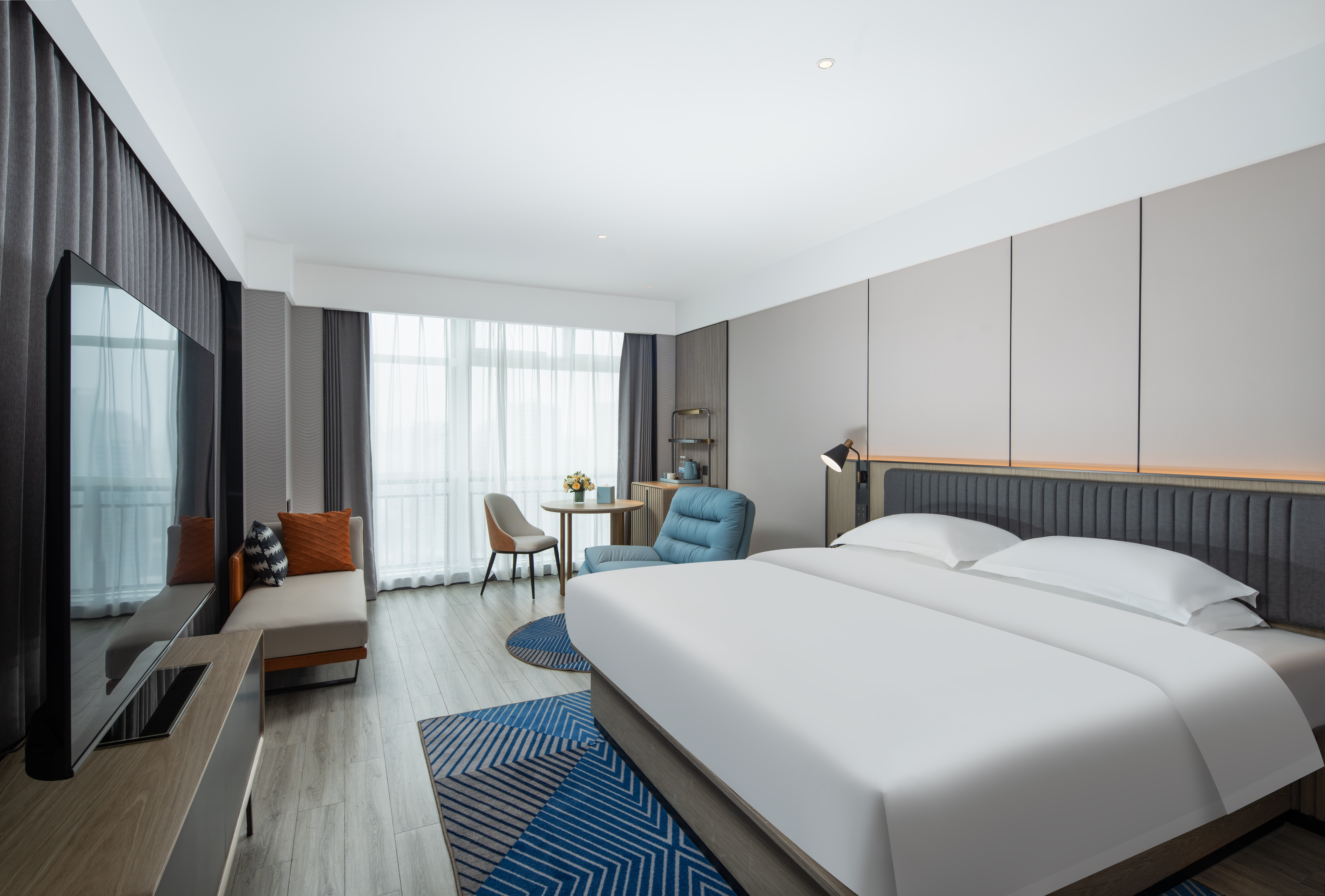 ECHARM|豪華大床房【180°落地窗+語音客控+Mini冰箱】