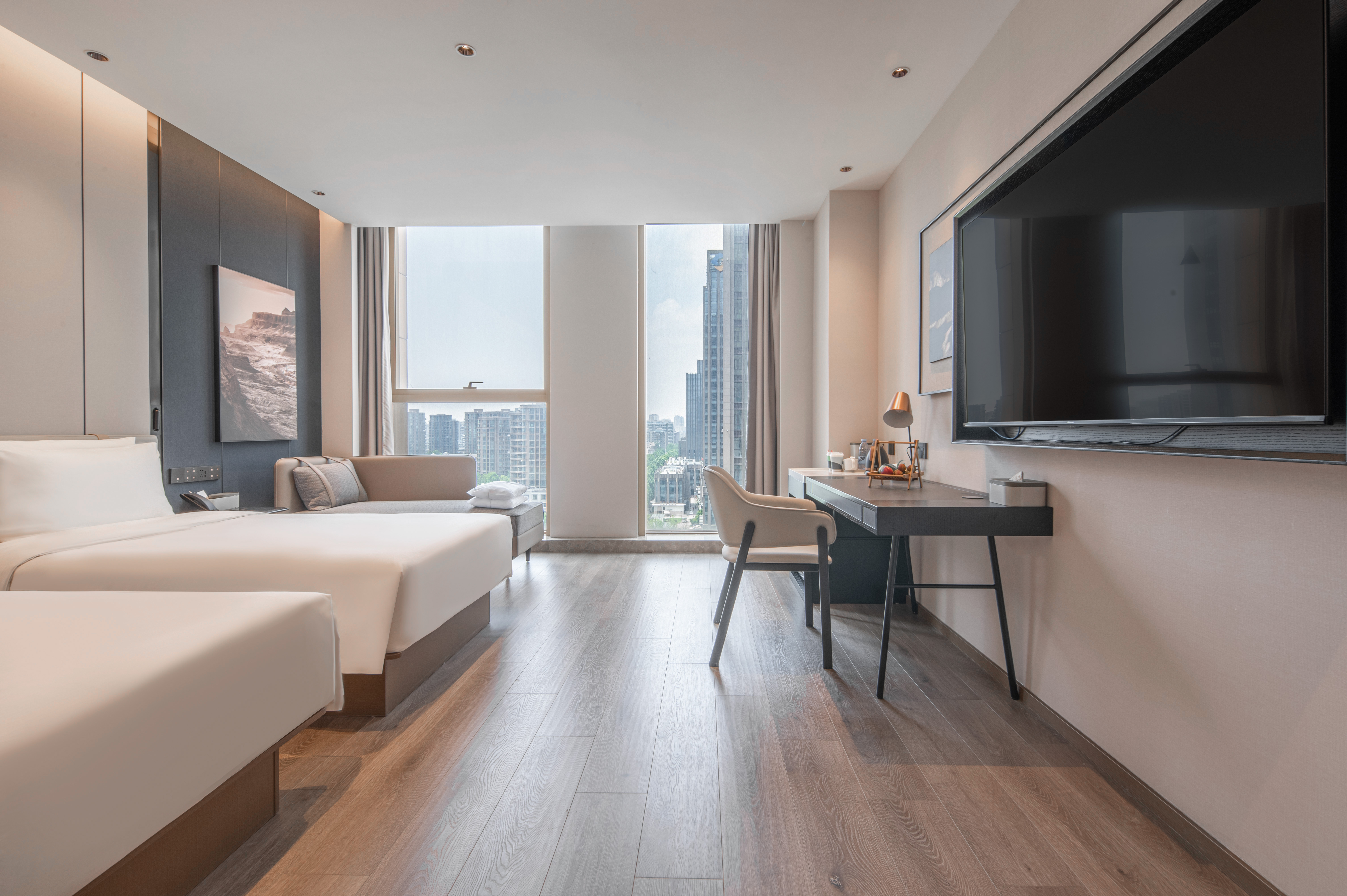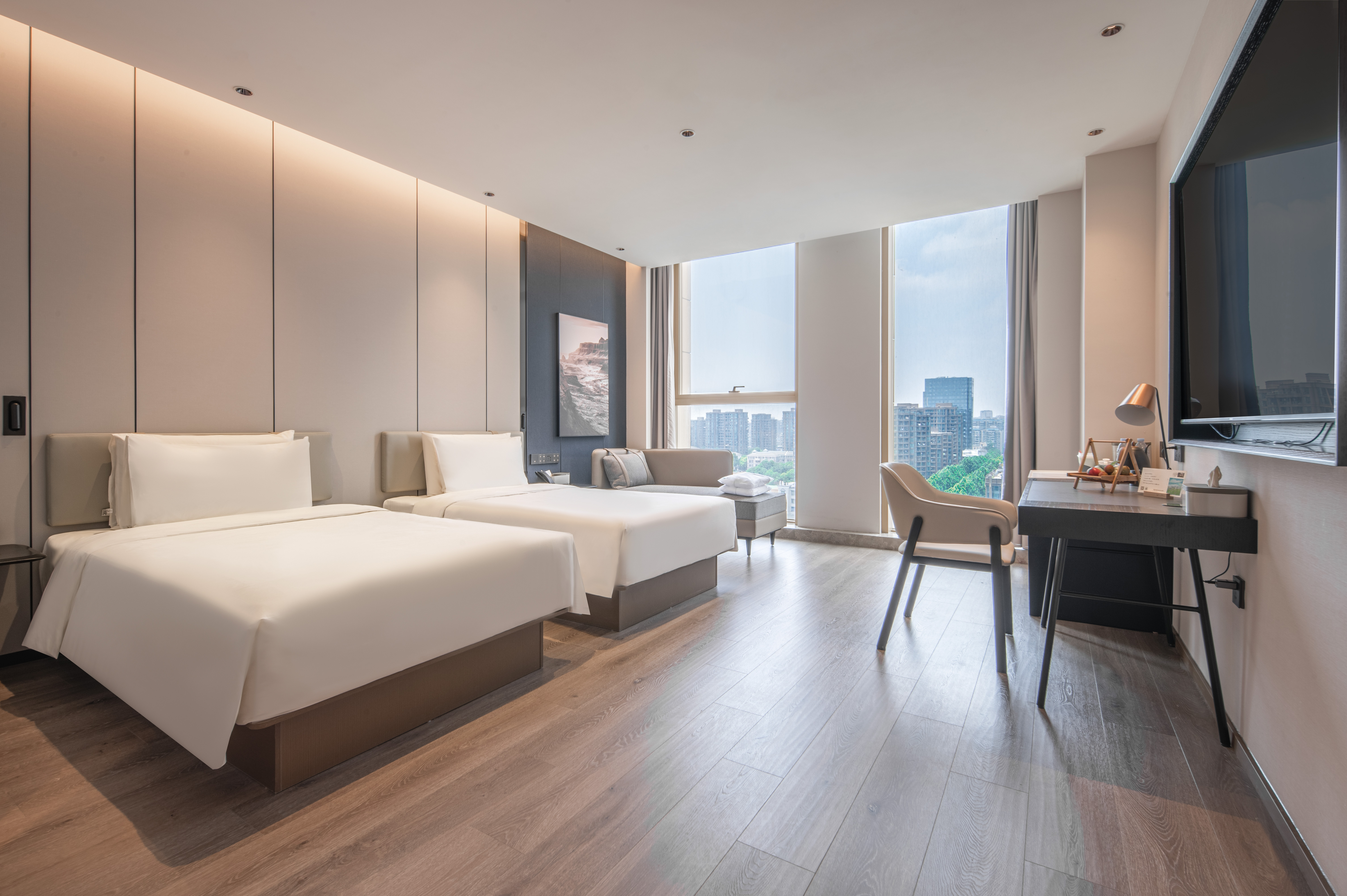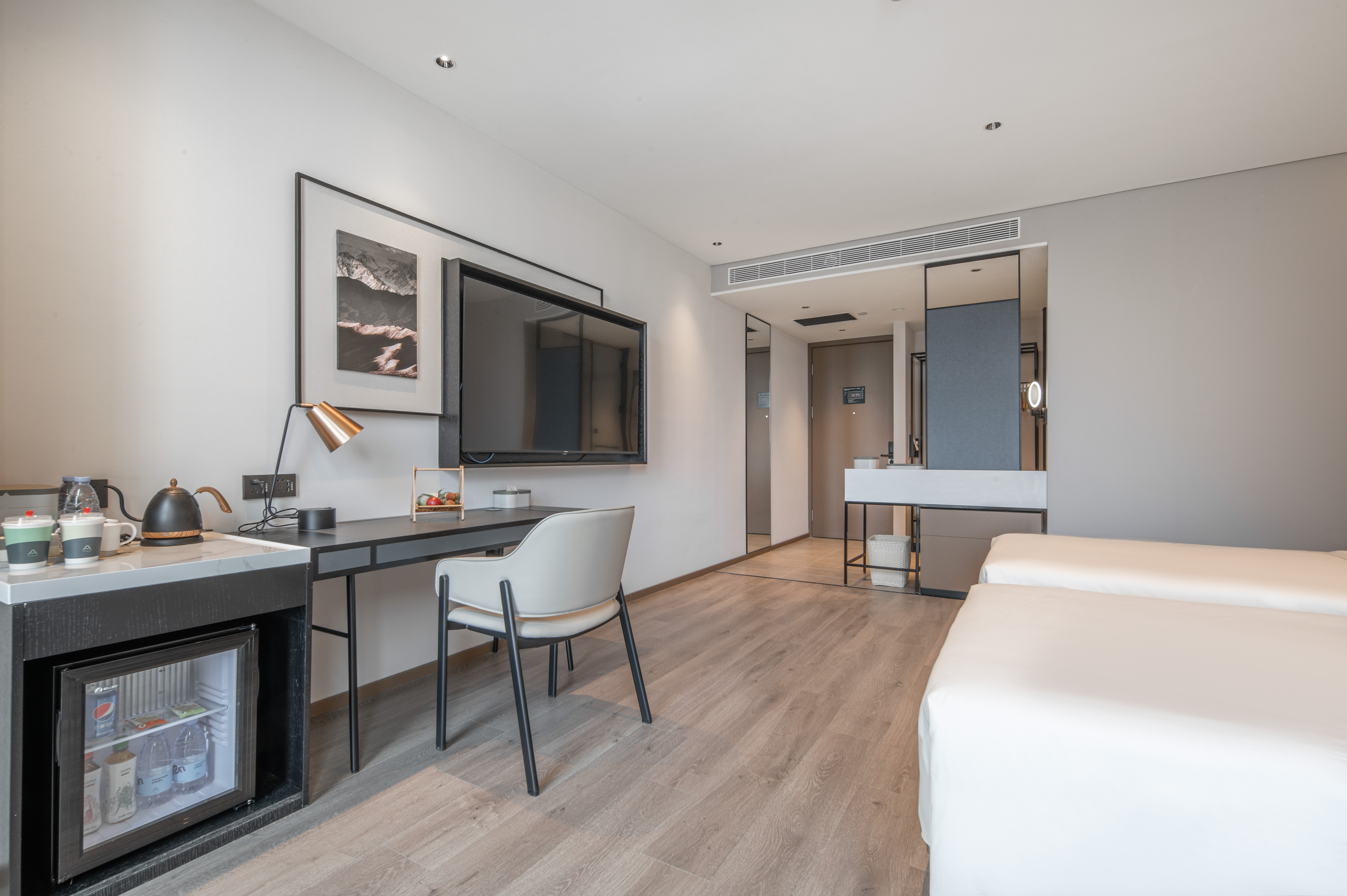 几木双床房(深睡床品+65投屏电视+冰箱+亲肤浴袍)