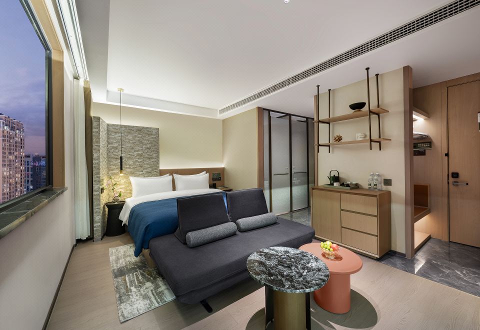 漫悦大床房(床尾沙发+小冰箱+无线投屏+凝胶零压床垫)