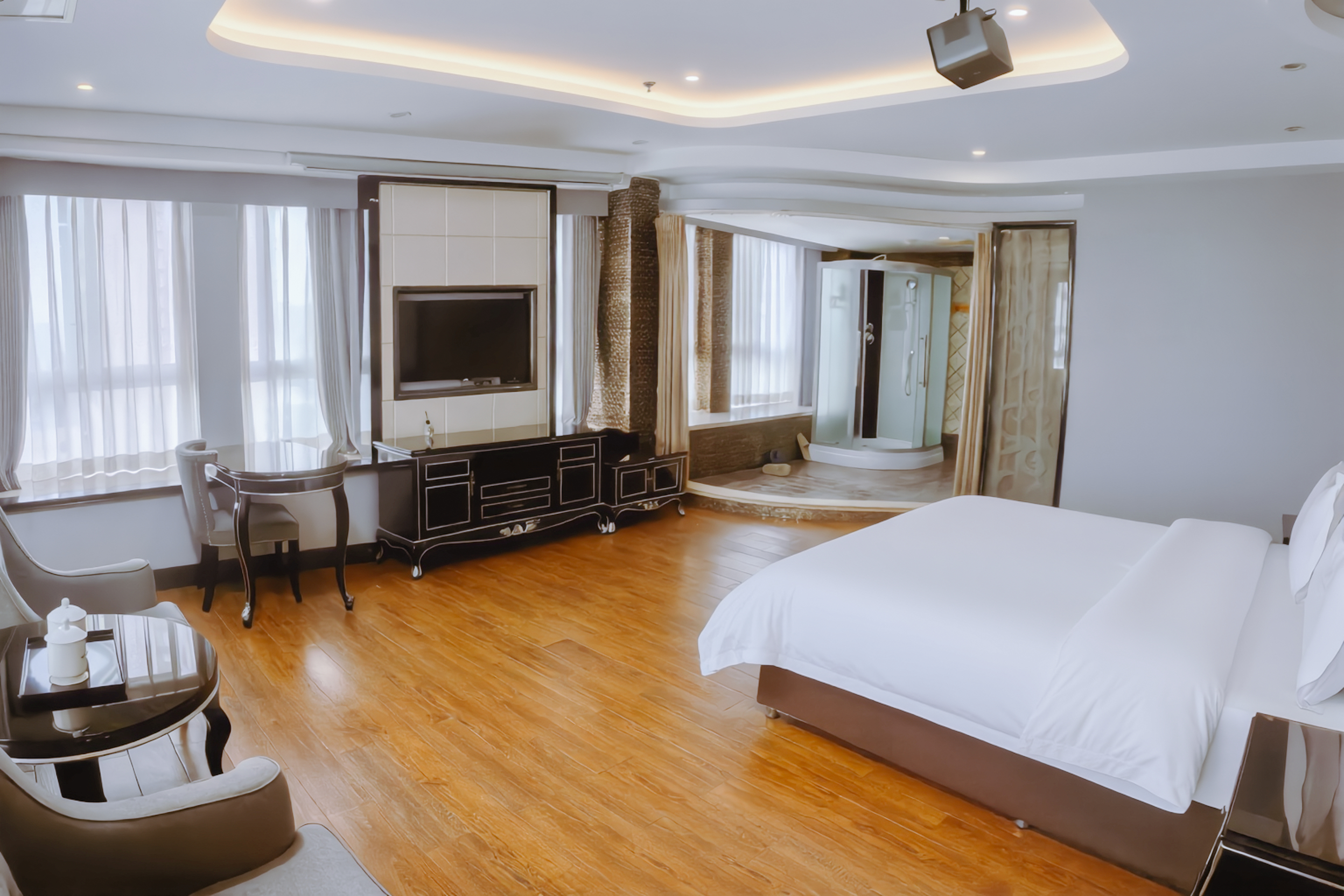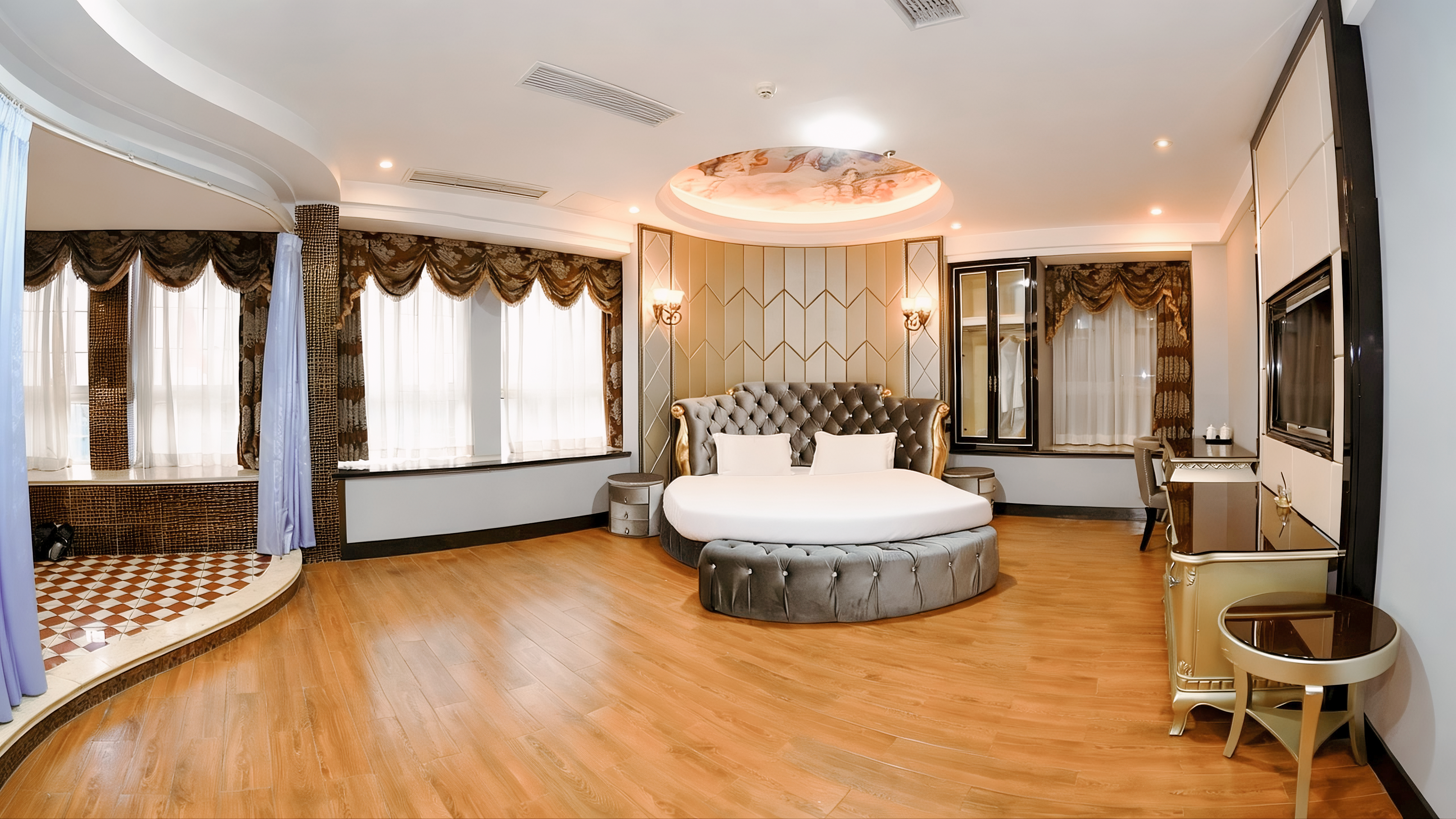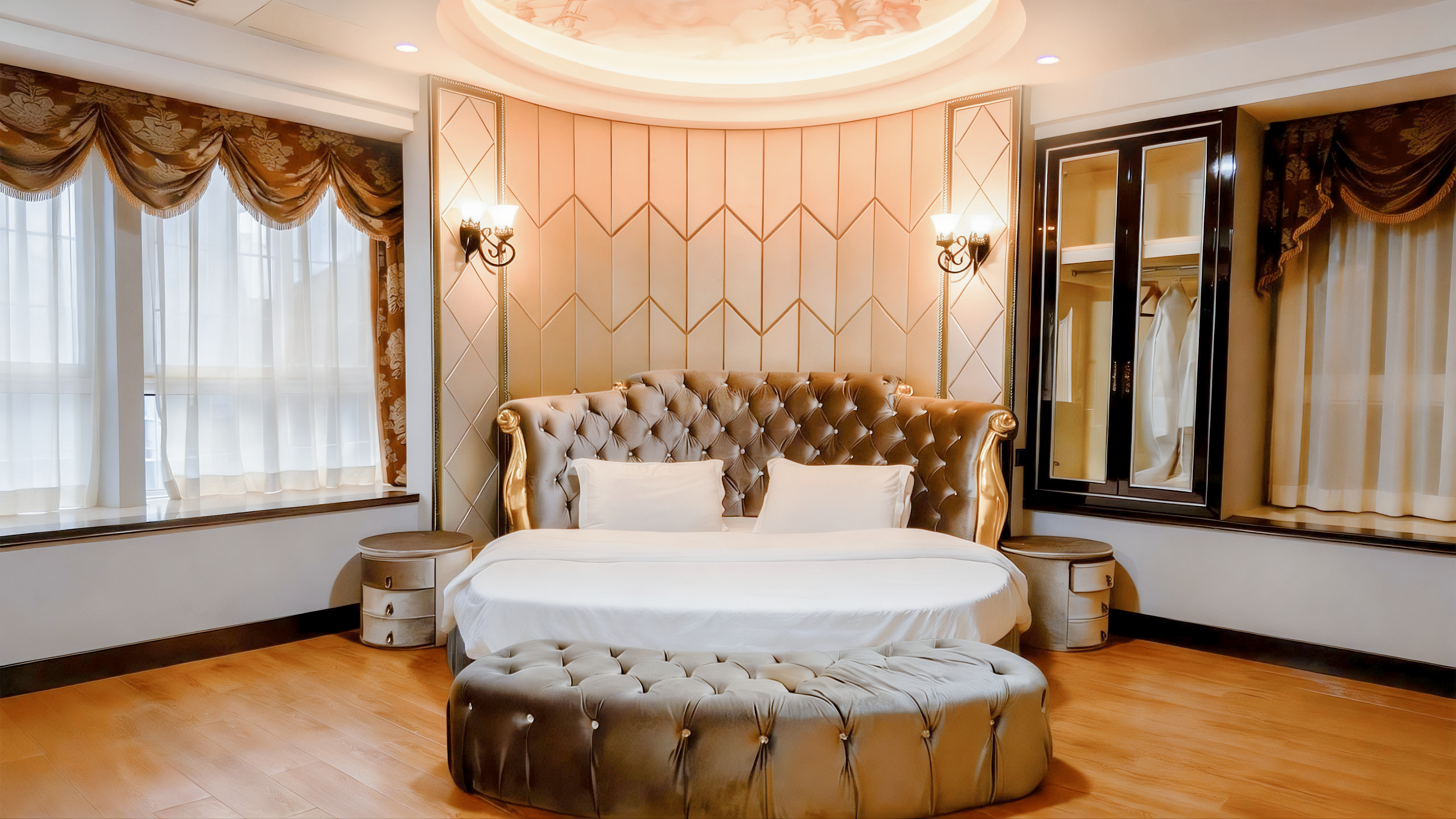 蜜意·臻享圆床房(浪漫氛围+欧式长沙发+云端城景)
