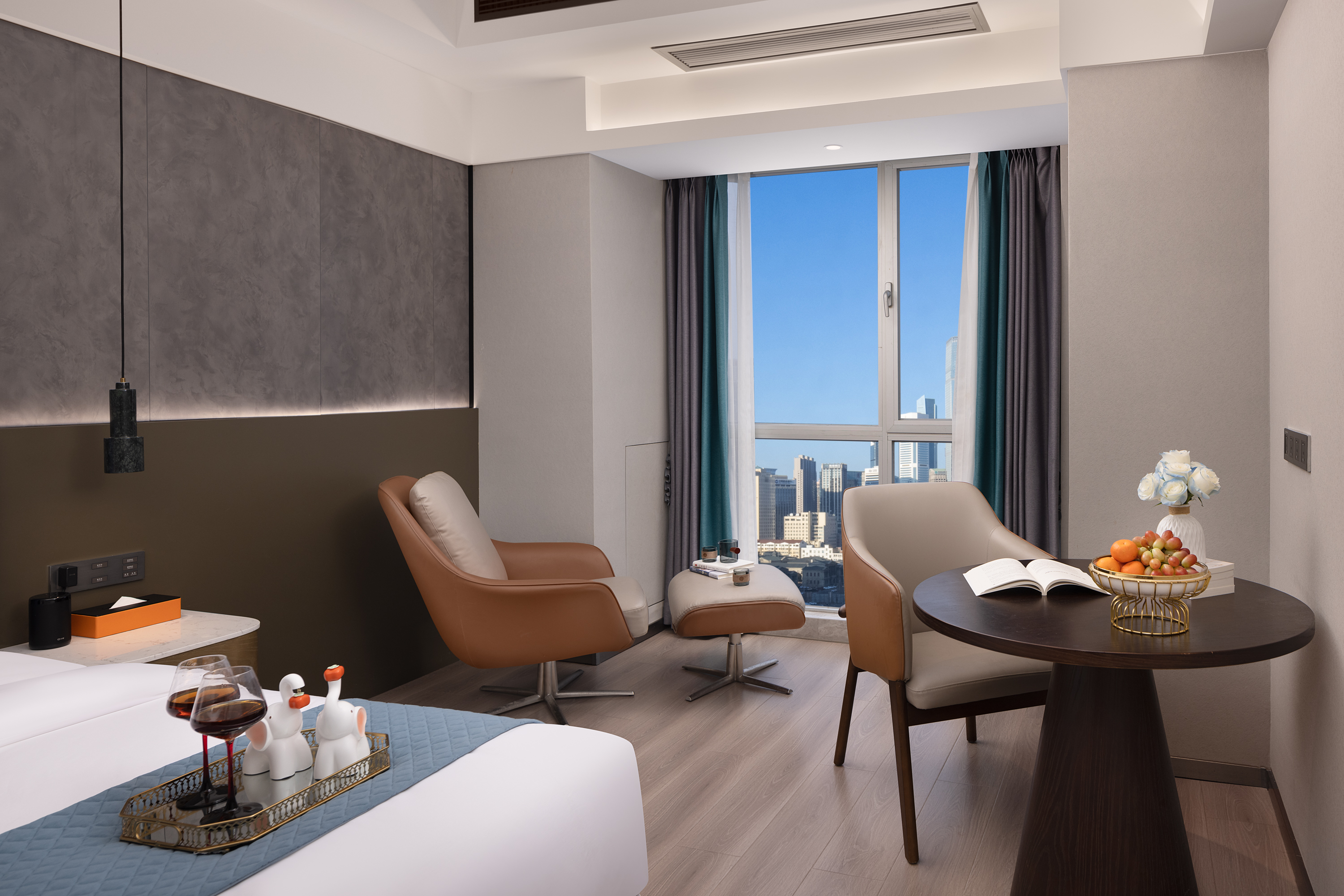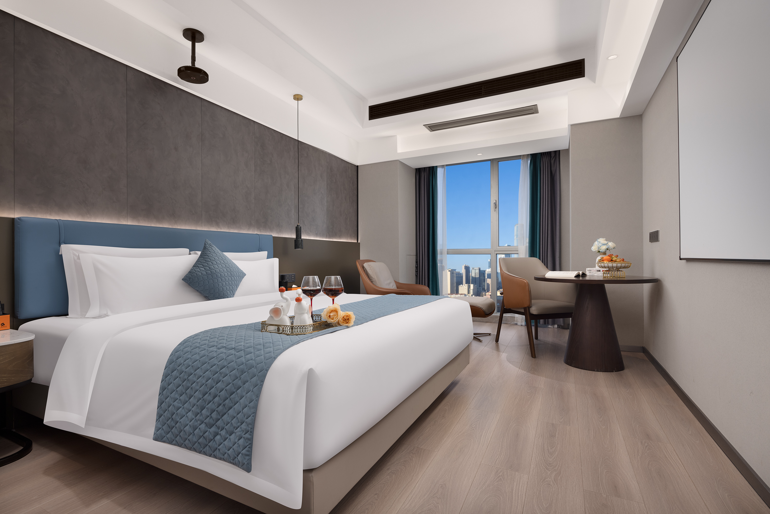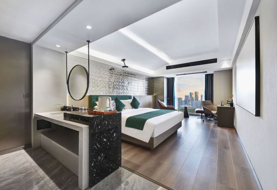 High-altitude full-view view double bed room (whole house smart + latex mattress + high-altitude night view)