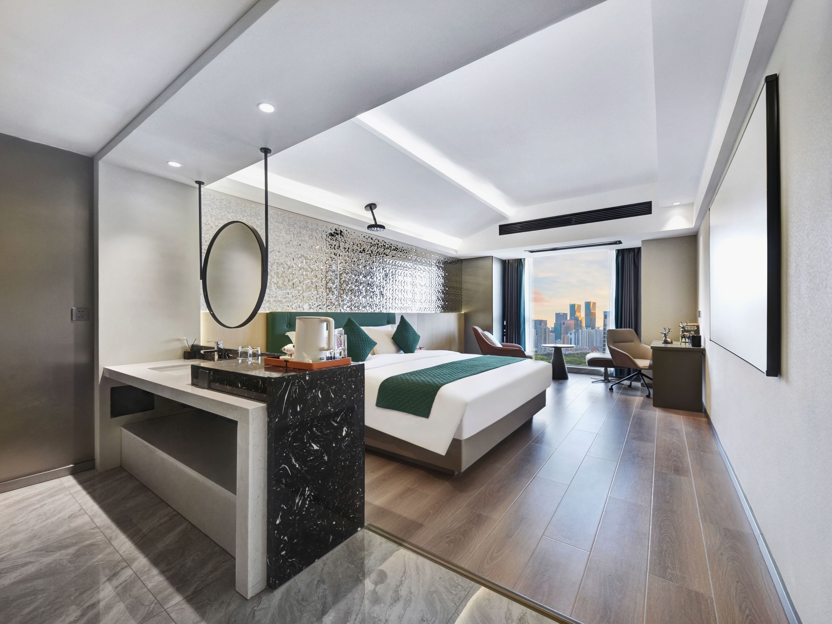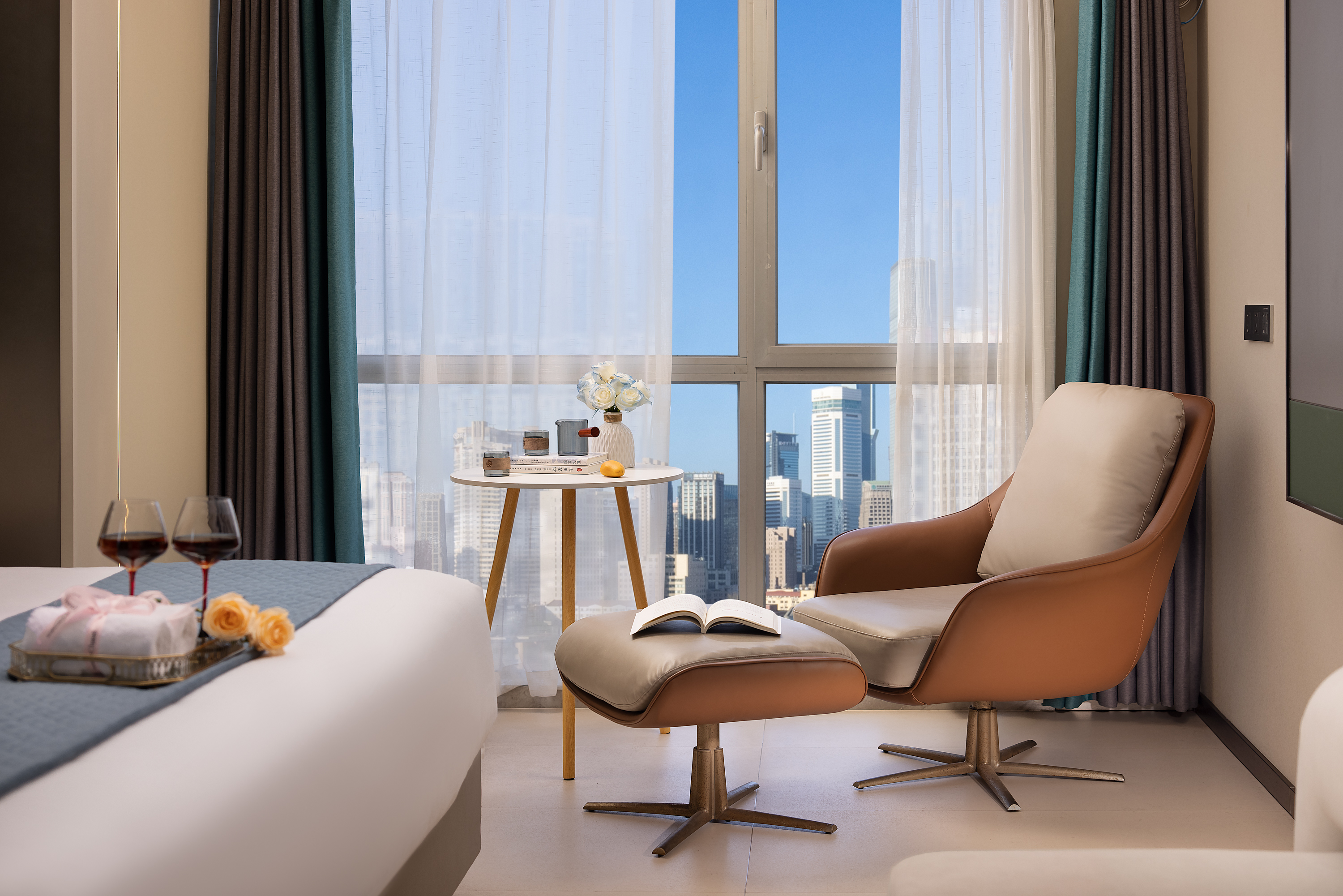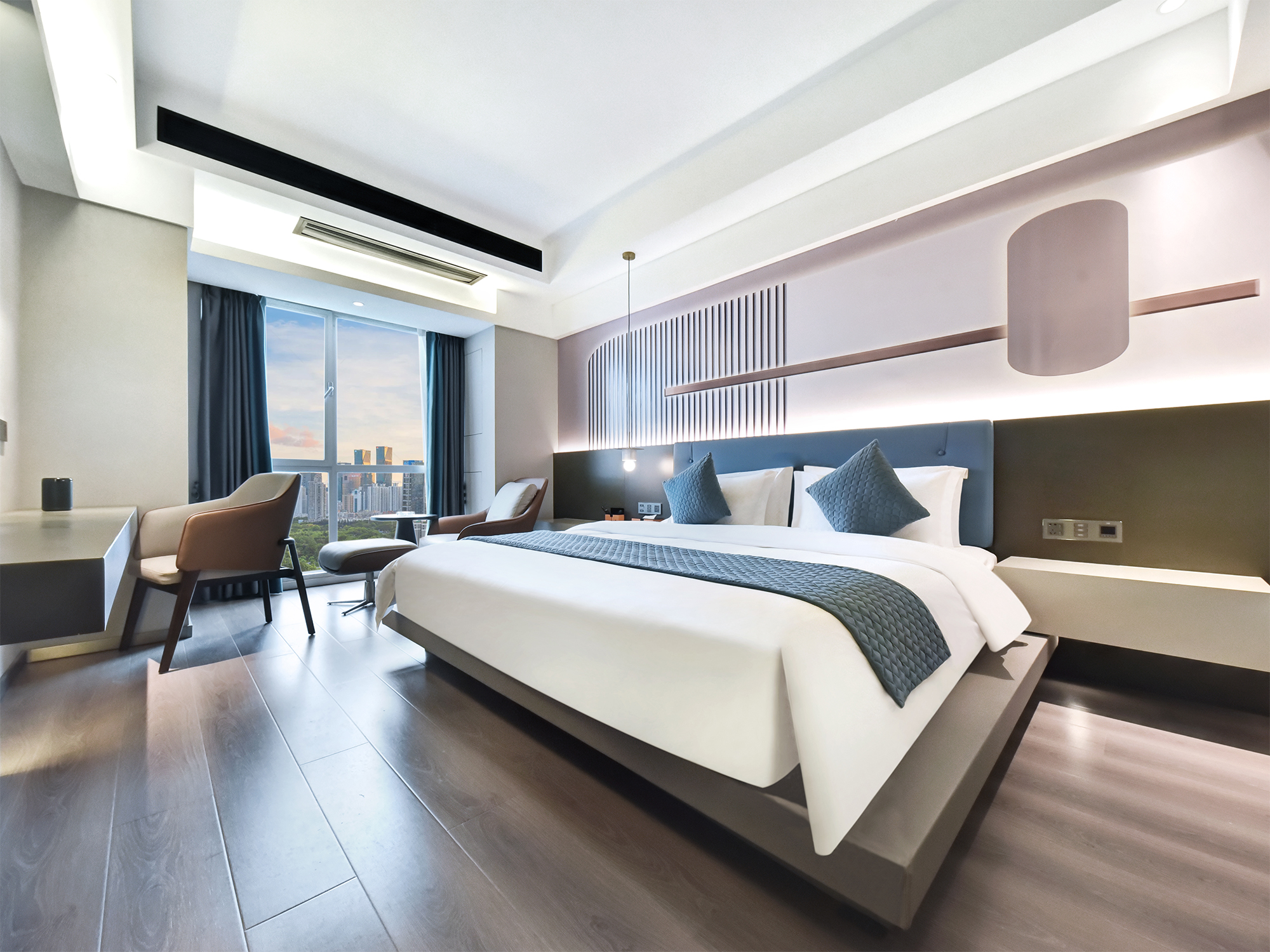 High-altitude full-view view double bed room (whole house smart + latex mattress + high-altitude night view)