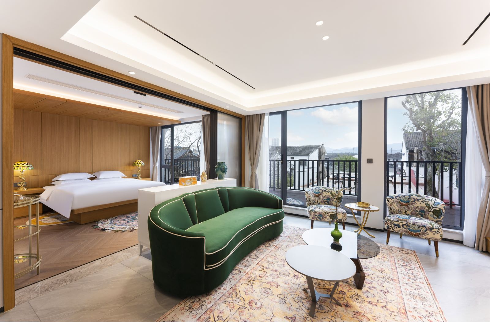 Yuehui 180 ° Courtyard-View Bathtub Terrace French-Style Suite (Private Terrace + Smart Home + Tea Table Set + French Sofa)