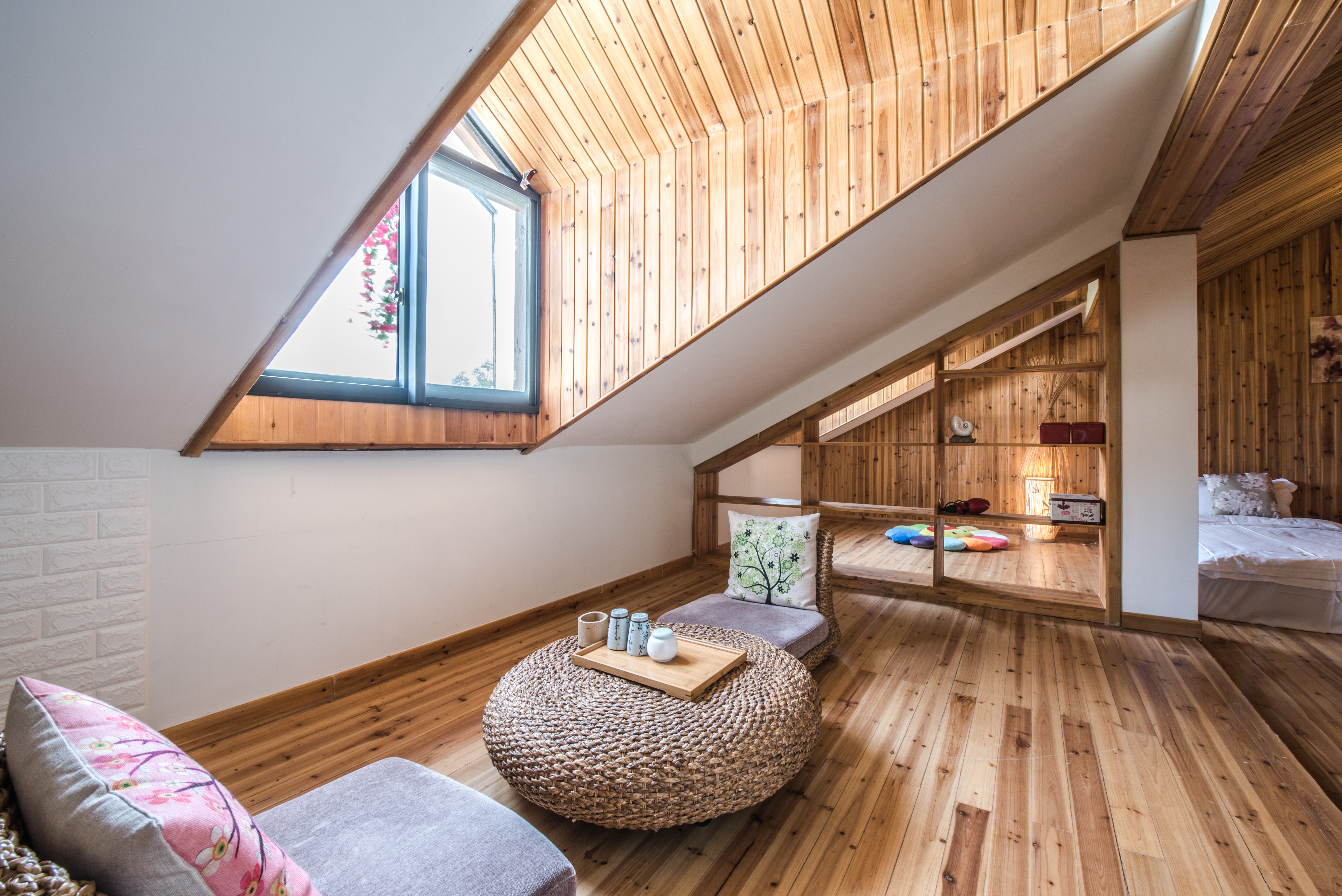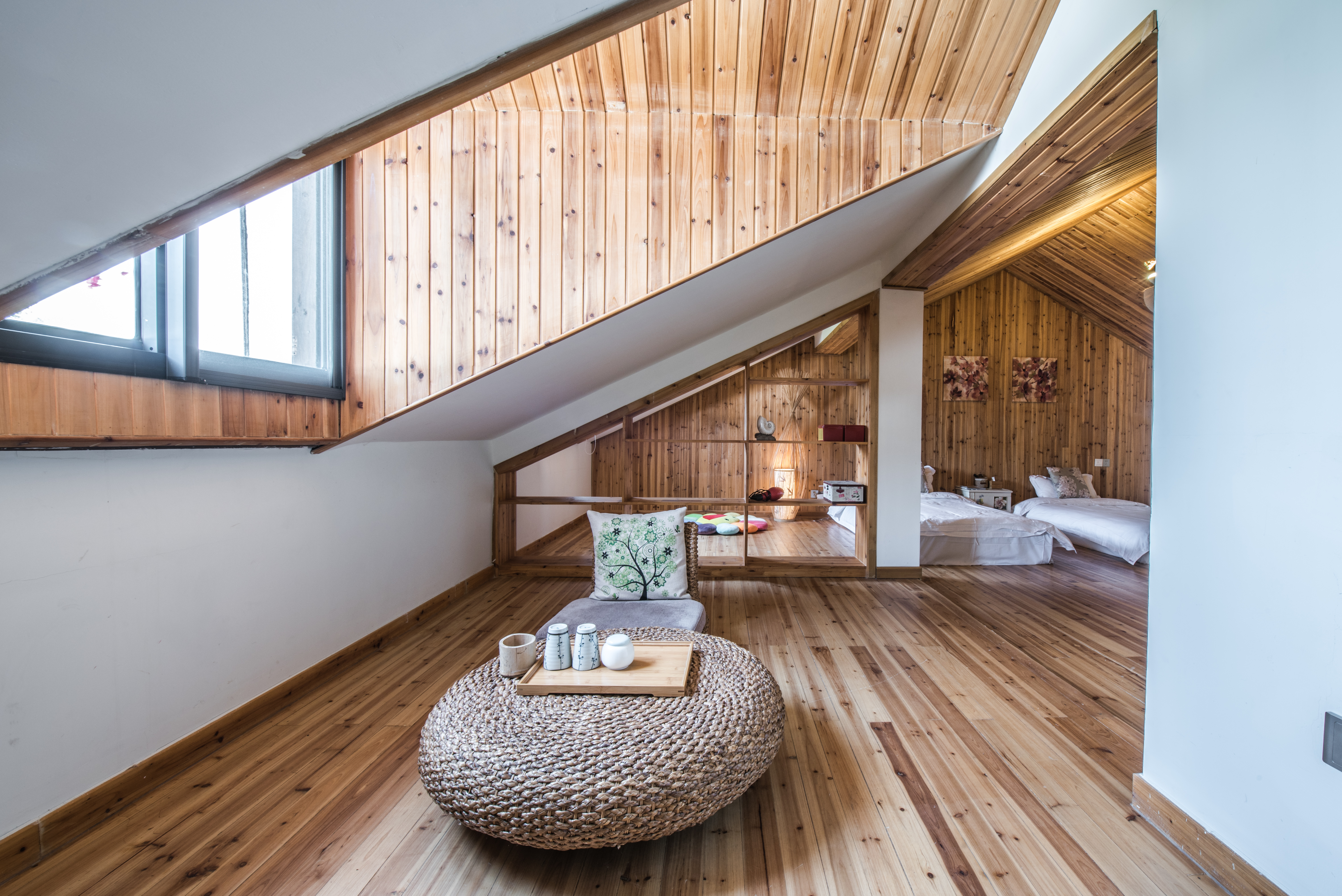 花謝閣|頂樓雙床房【榻榻米床+飄窗榻榻米茶桌+智能電視】