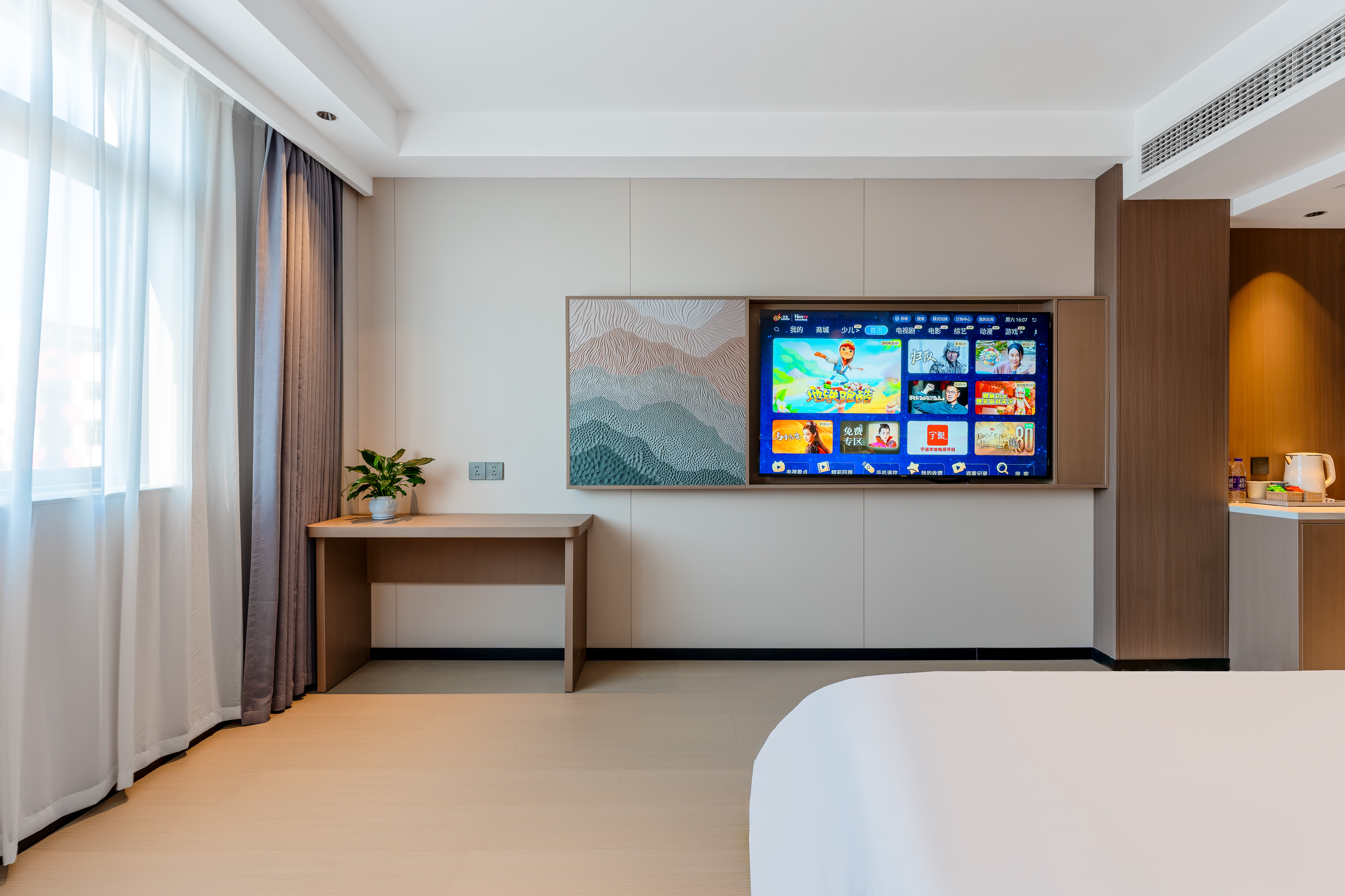 商务大床房「65寸投屏电视+智能客控+深度睡眠乳胶枕」
